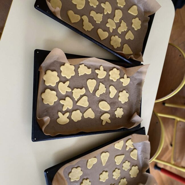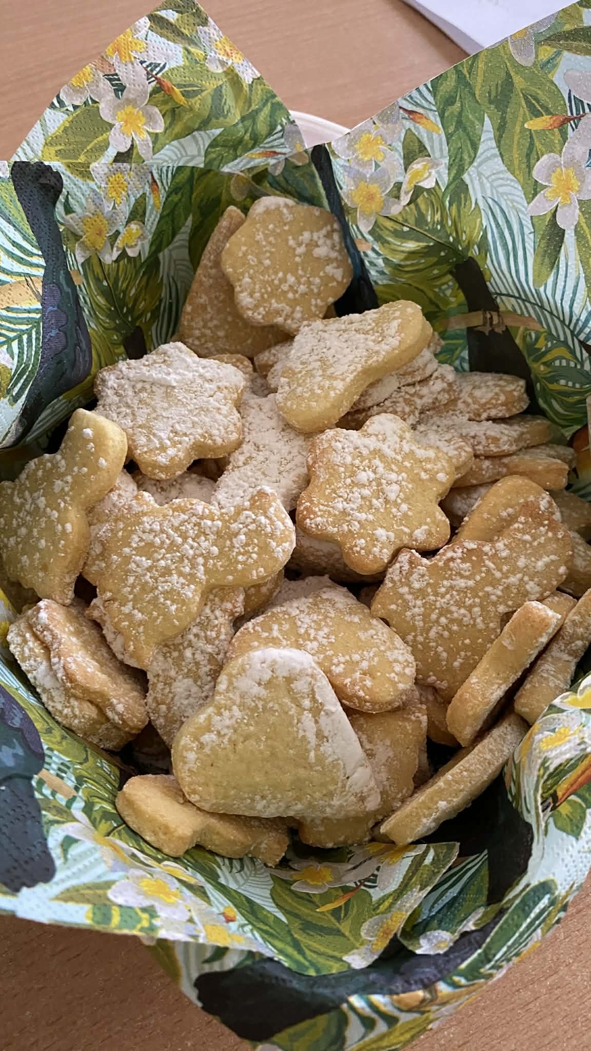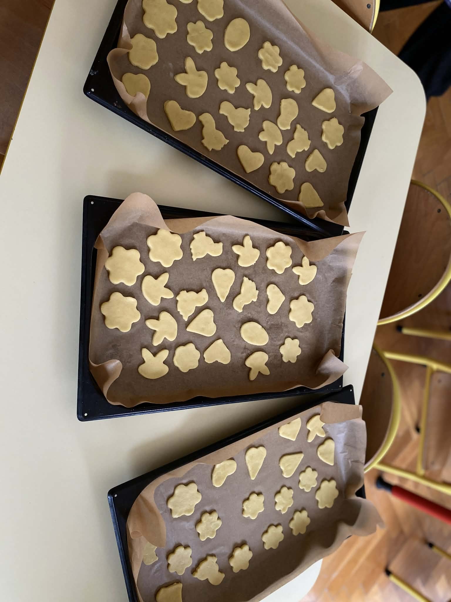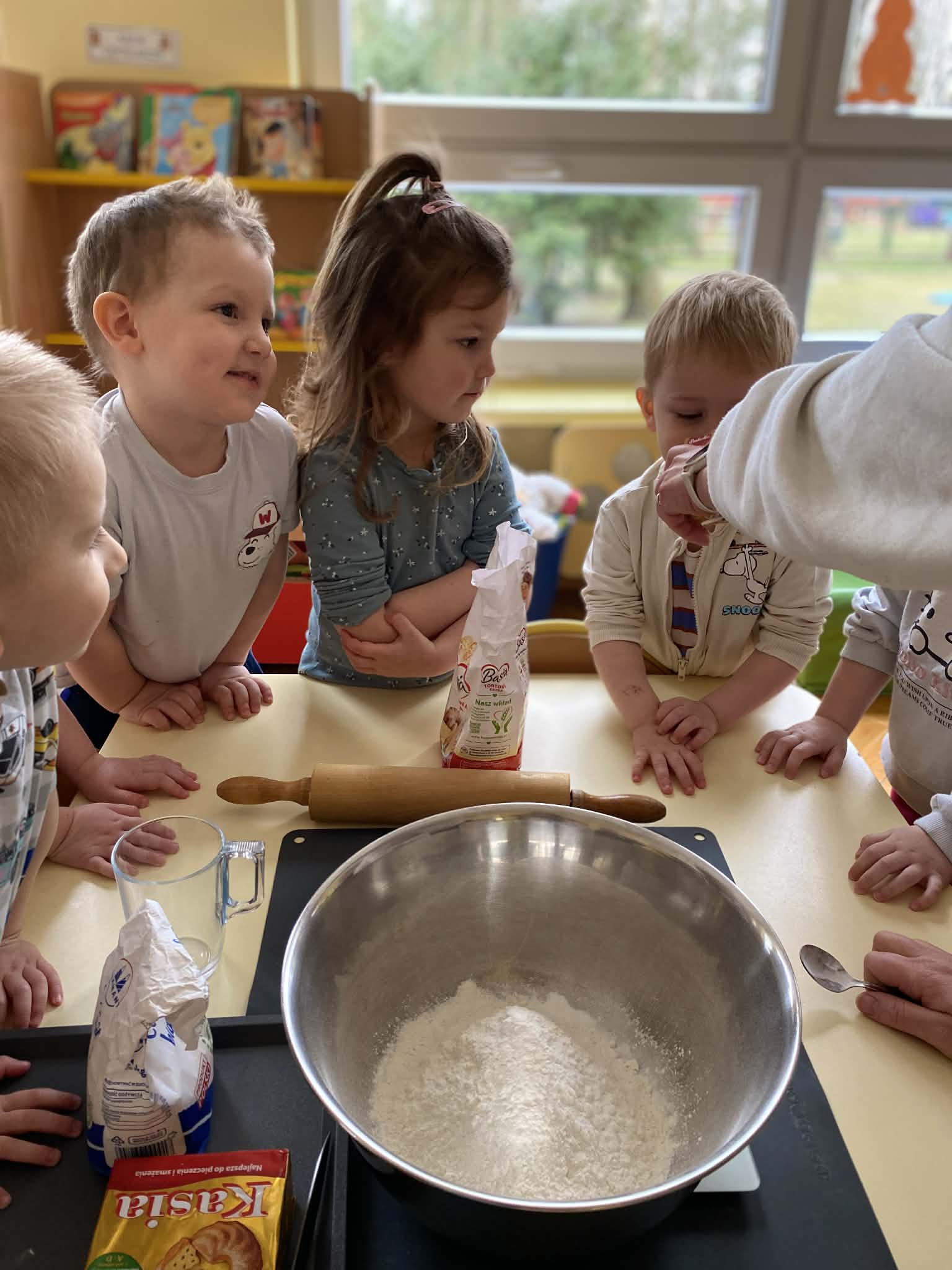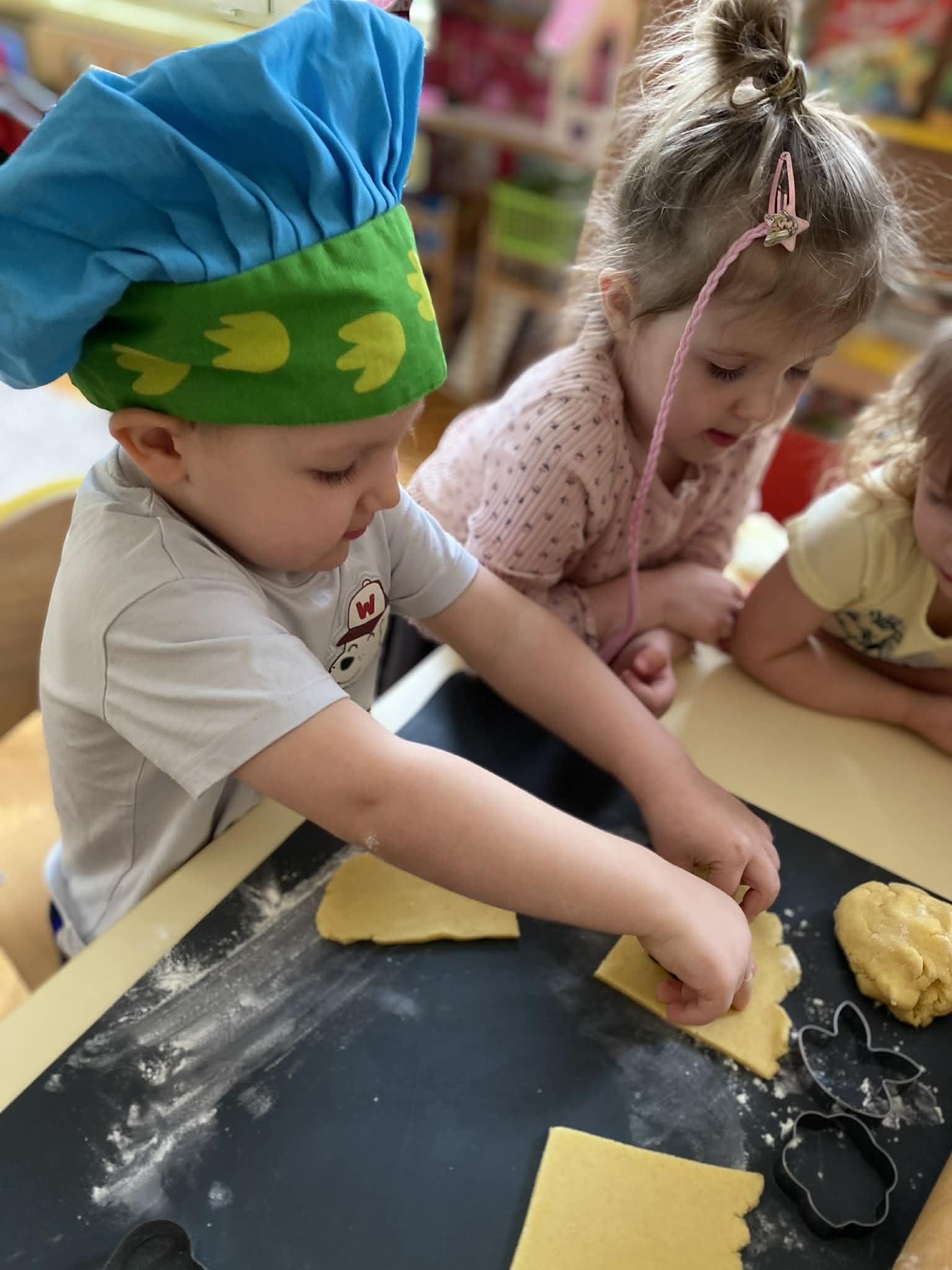 Aby podziękować za gościnę, przedszkolaki wręczyły gospodarzom własnoręcznie upieczone, pyszne ciasteczka.