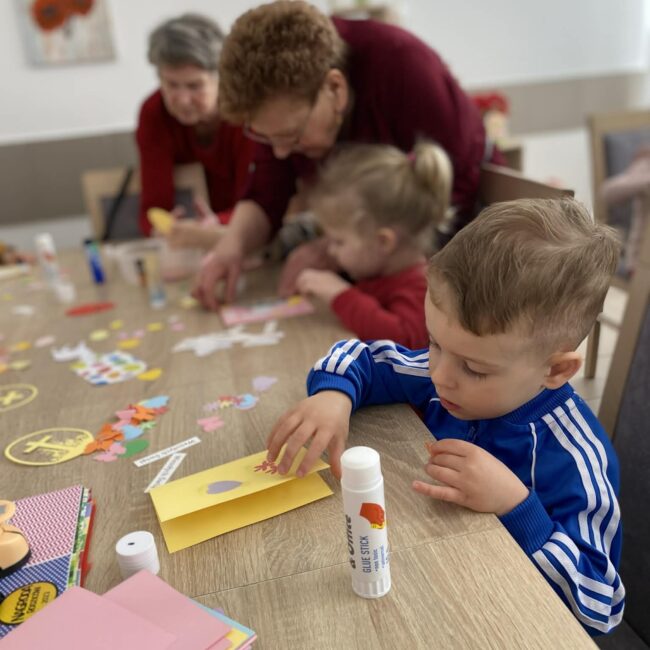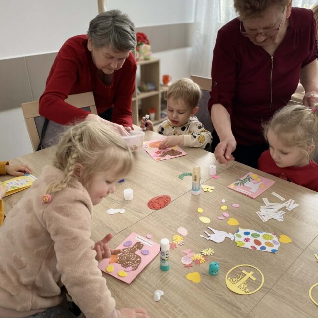 Wielkanoc to czas dzielenia się radością, dlatego dzieci wzięły udział w wyjątkowej akcji. Wspólnie z seniorami przygotowaliśmy kartki świąteczne dla osób chorych, które nadchodzące święta spędzą w szpitalu.
