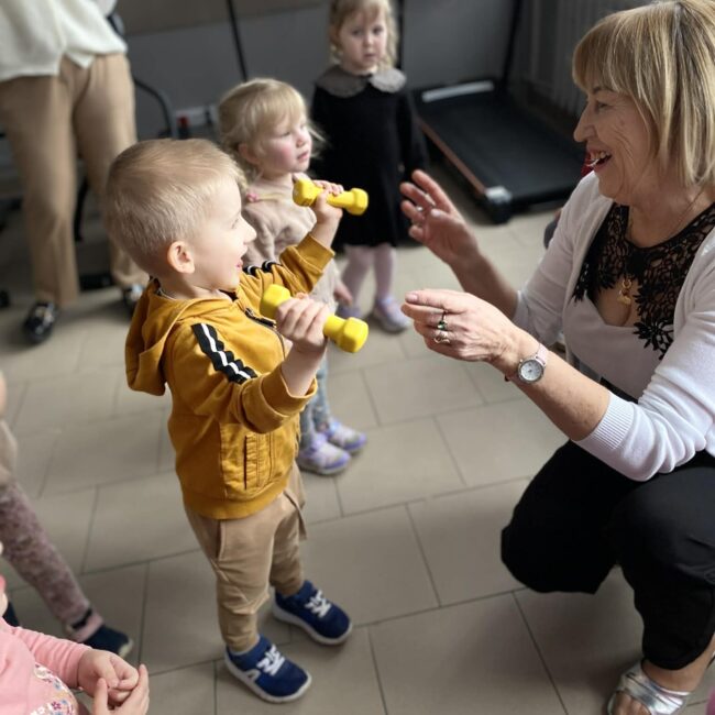 Wizyta była też okazją do integracji i wspólnej zabawy. Dzieci: zwiedziły zakątki Klubu, aktywnie spędziły czas na sali ćwiczeń, wspólnie z seniorami śpiewały radosne piosenki.