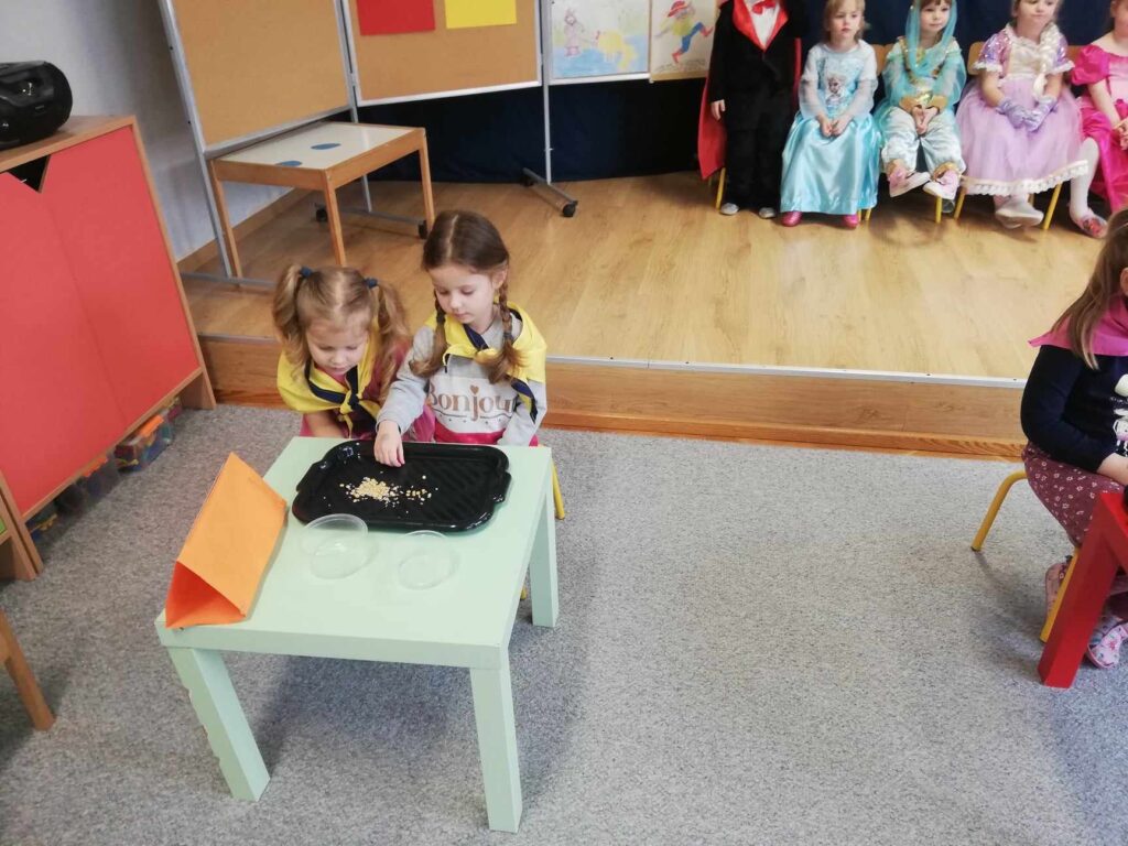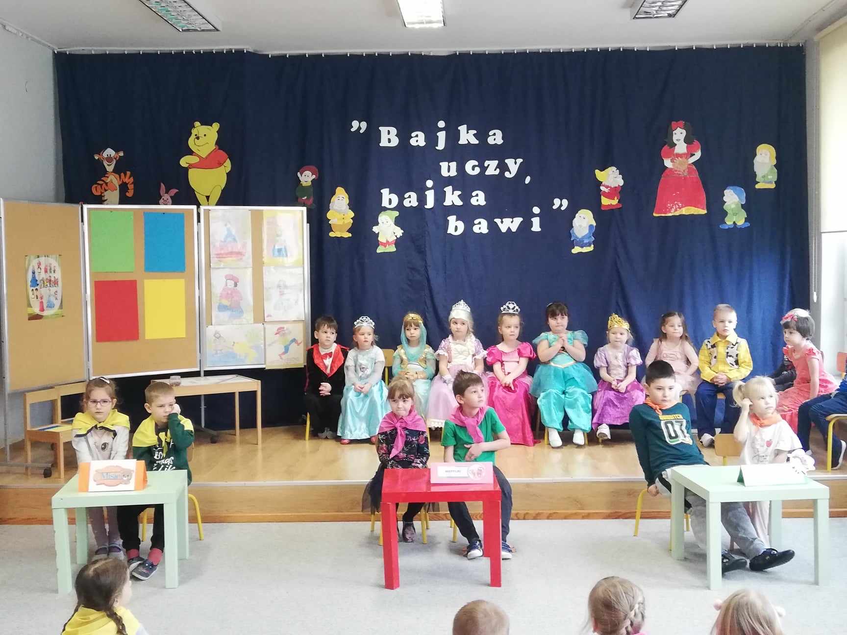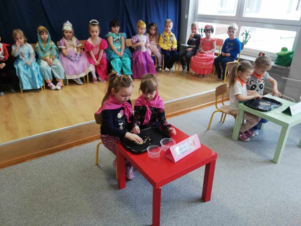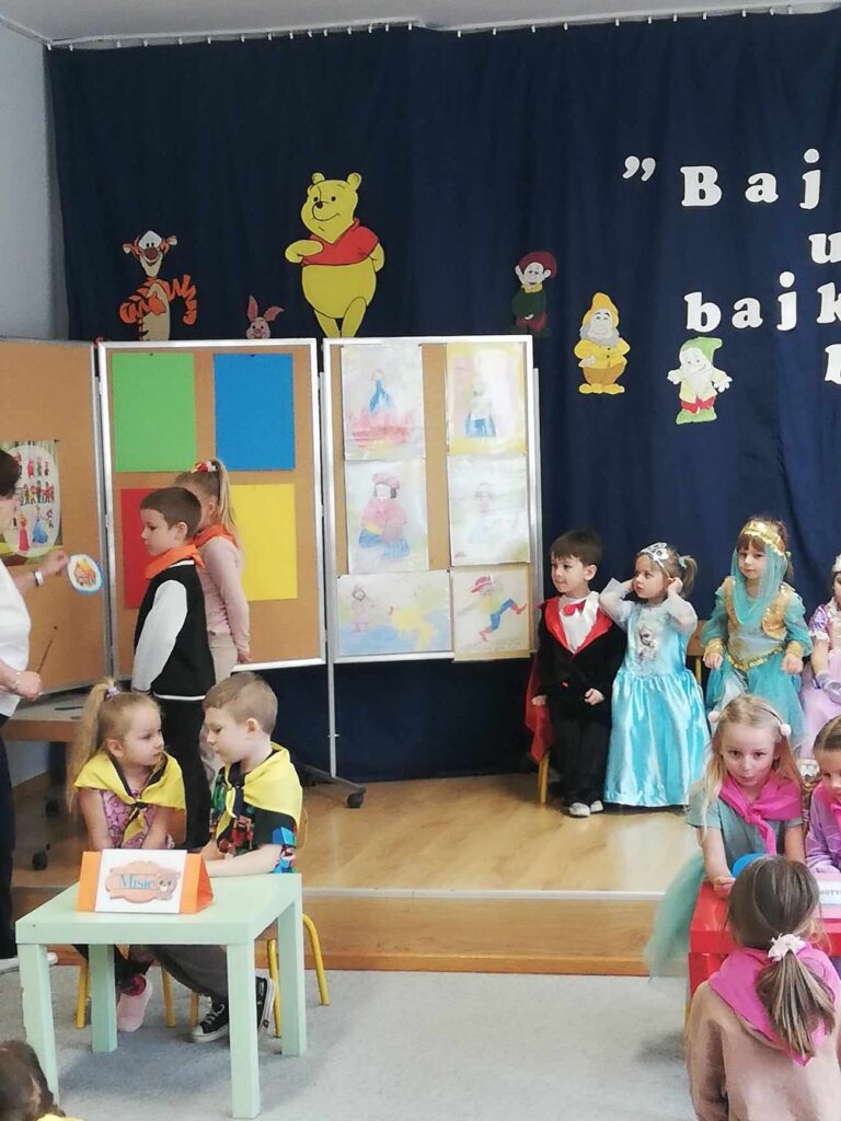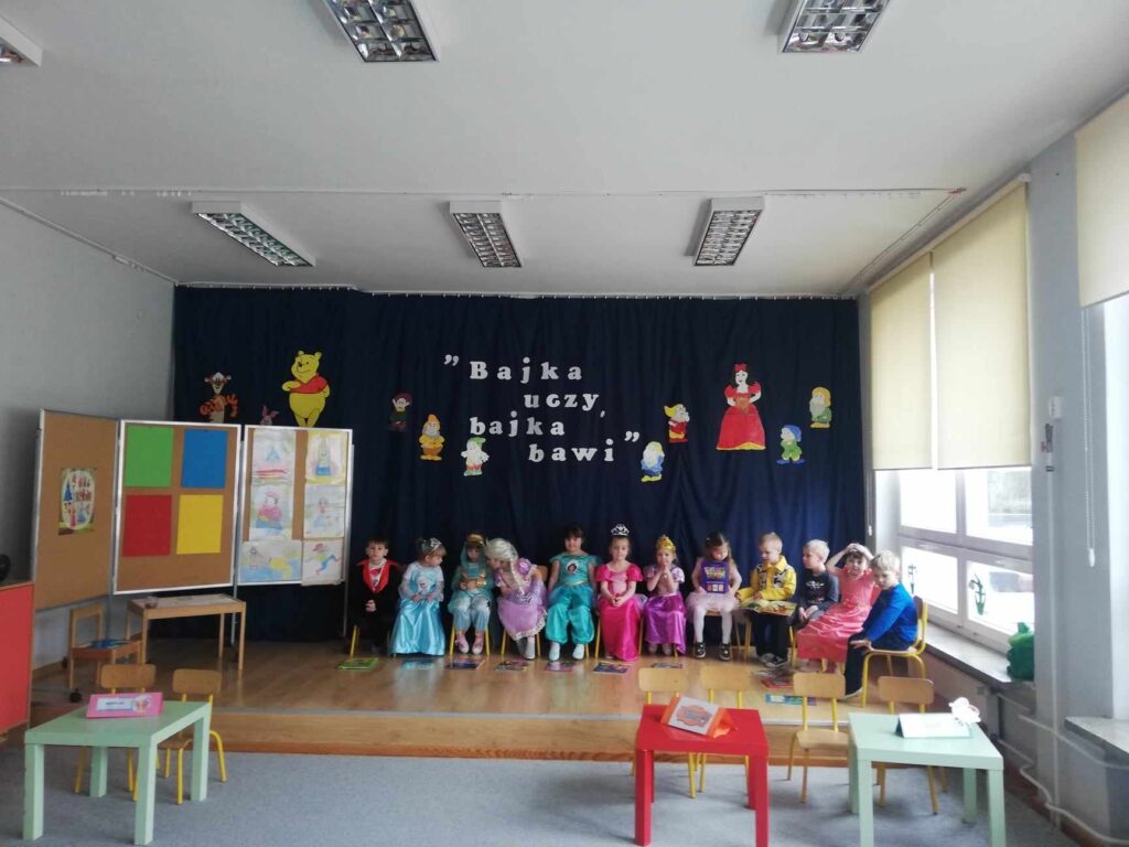 Baśń i bajka w wychowaniu dziecka odgrywa dużą rolę. Treści wzmacniają przekonanie i wiarę w dobroć, sprawiedliwość czyniąc je lepszymi i bogatszymi wewnętrznie. 23.II. 2024r. Grupa „Wiewiórki” zorganizowała dla gr. 5 latków „ Misie”, „ Biedronki”, „Motylki” Quiz z wiedzy o bajkach i baśniach. Przed rozpoczęciem na sali pojawiły się kolorowe postacie – dzieci z gr. „ Wiewiórki” przebrane były za bohaterów z bajek. Przedszkolaki rozpoznawały znane i lubiane bajki i odkrywały mądrość w nich drzemiącą. Podsumowaniem było stwierdzenie, że warto czytać baśnie. Każda z nich bowiem kryje morał , który jest ponadczasową nauką dla każdego człowieka. Uśmiechy na twarzach po zakończonych zajęciach i otrzymane dyplomy były najlepszym dowodem świetnej zabawy.