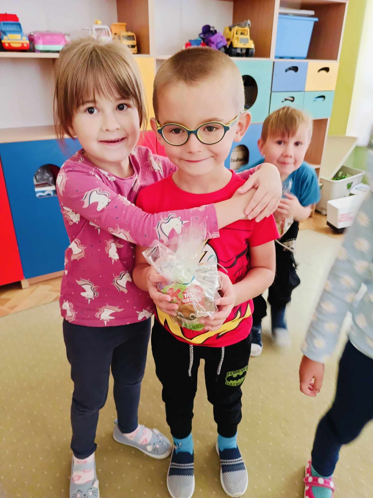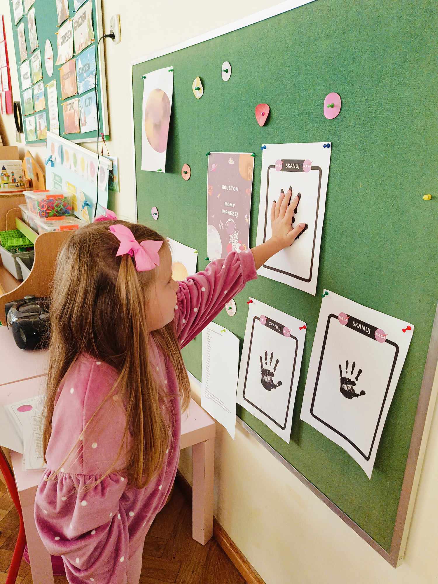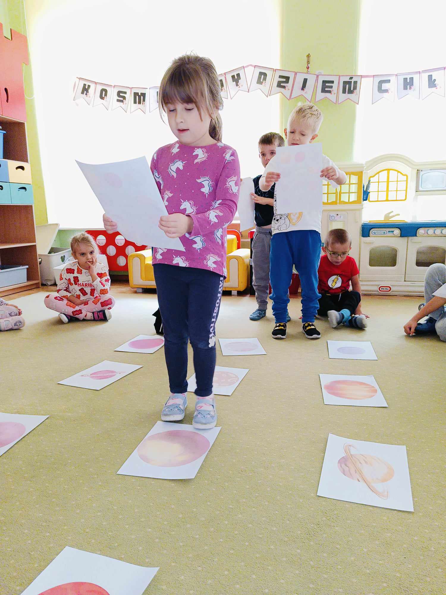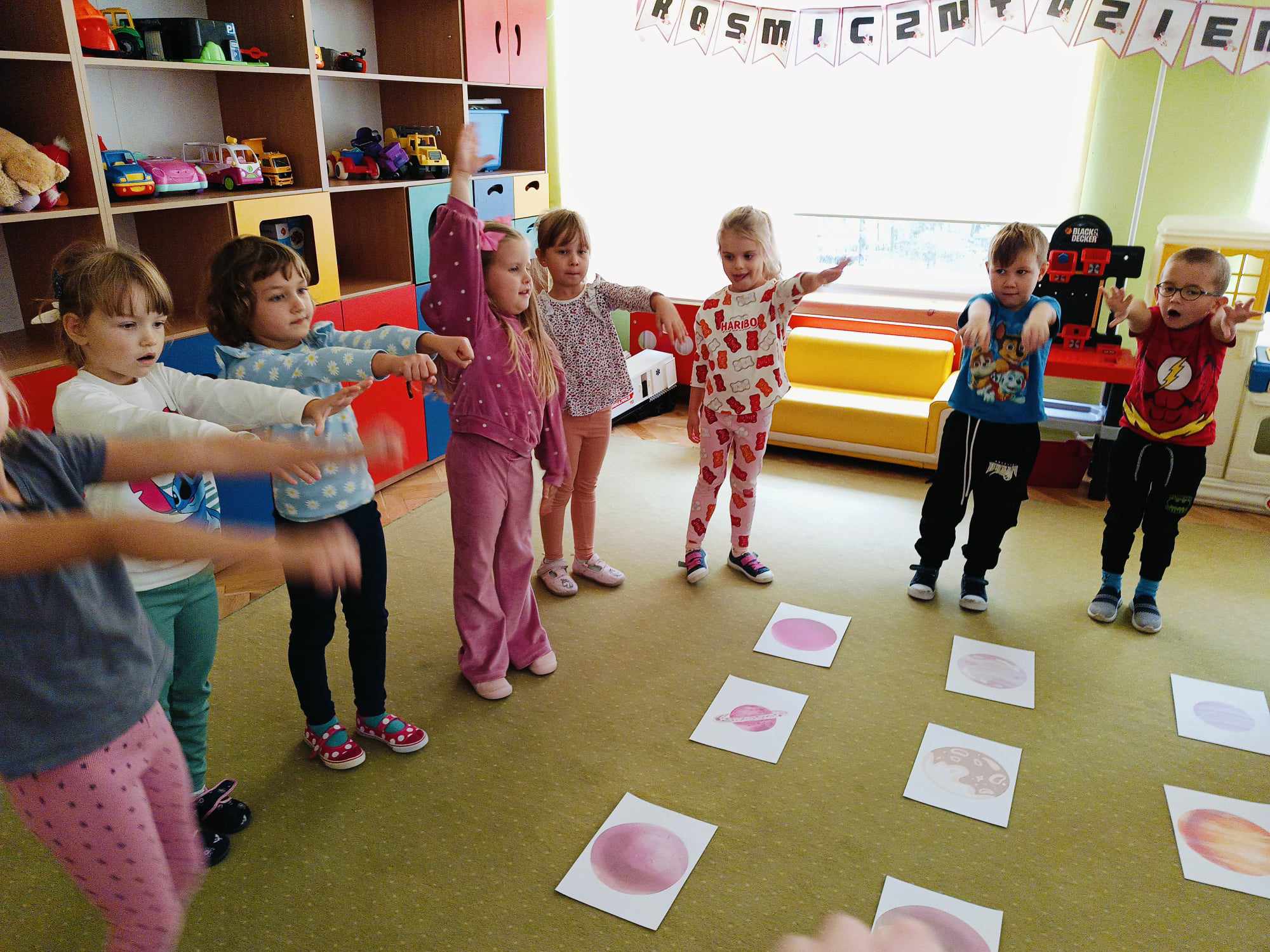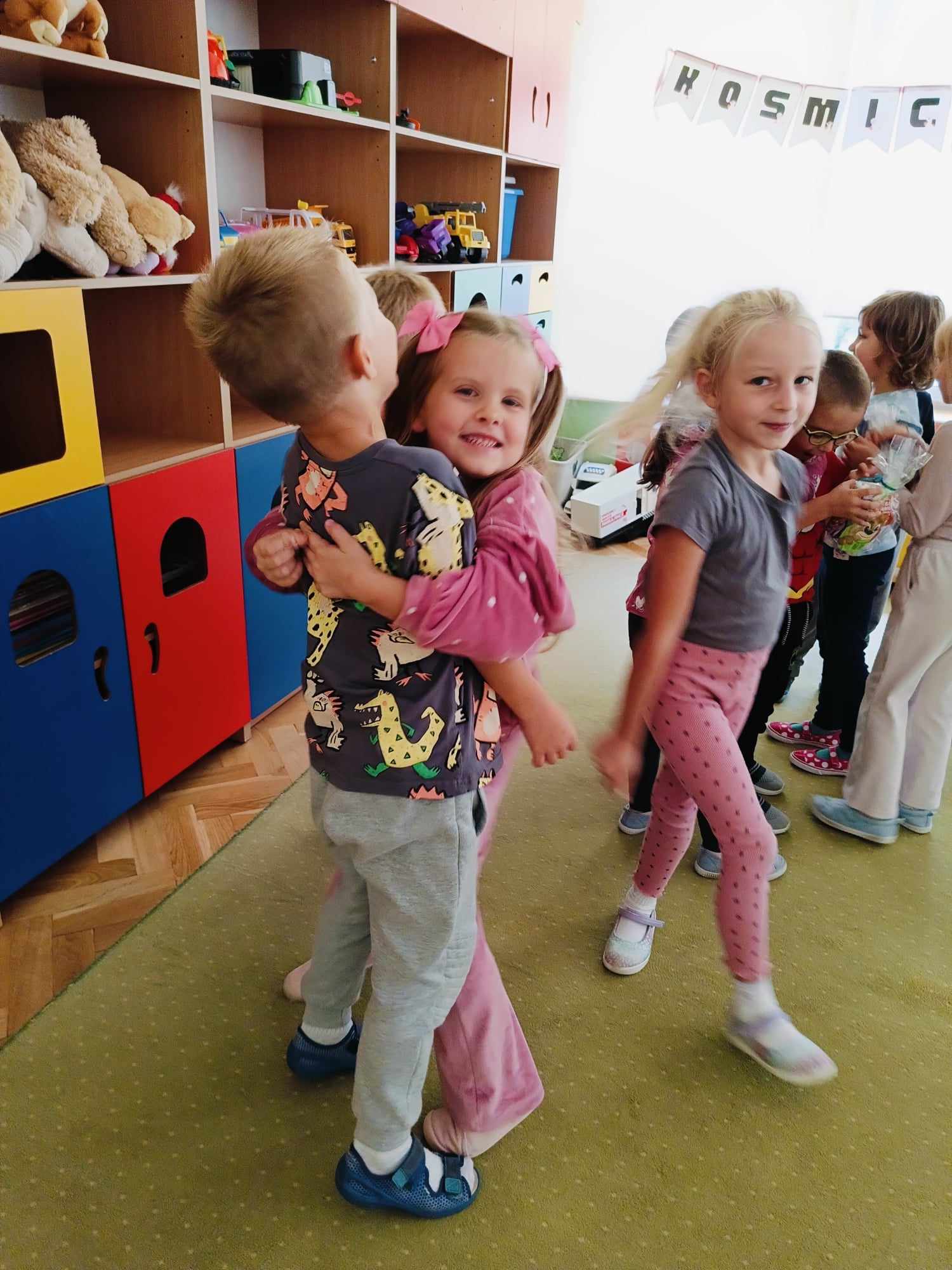 Dziś hucznie świętowaliśmy Dzień Chłopaka! W tym roku tematem przewodnim naszych zabaw był kosmos. Aby przenieść się w tajemniczy świat kosmicznych przygód, każde dziecko zeskanowało swoją dłoń i otrzymało nowe, kosmiczne imię. Mali kosmici podążali zakodowaną trasą, brali udział w zawodach, a na koniec stworzyli własne prace plastyczne – kosmiczne rakiety z ufoludkami na pokładzie. Wszyscy spisali się znakomicie! Nie zabrakło również prezentów, życzeń oraz głośnego „Sto lat!” od dziewczynek.
