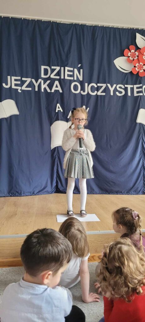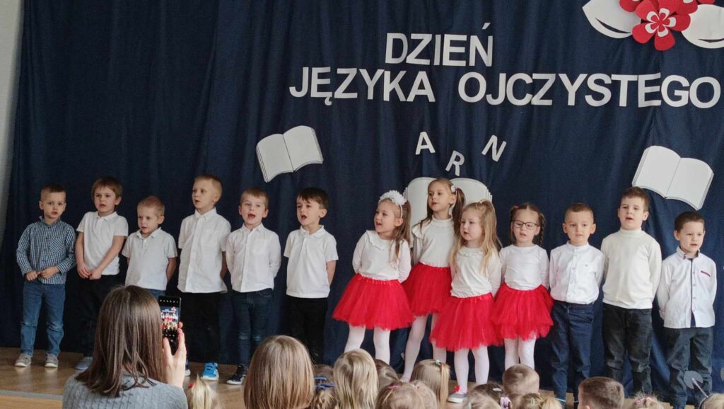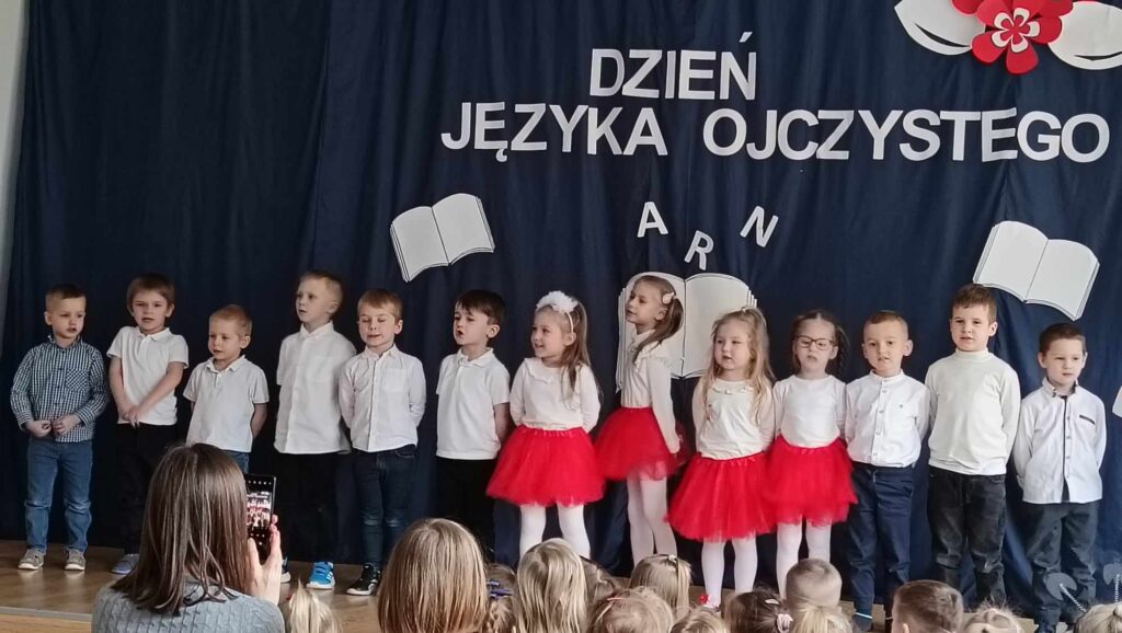 Międzynarodowy Dzień Języka Ojczystego to święto obchodzone 21 lutego. Zostało ustanowione przez UNESCO w 1999 roku, aby wspierać ochronę różnorodności językowej jako dziedzictwa kulturowego. W tym roku w naszym Przedszkolu ten dzień obchodziliśmy również 21 lutego i miał na celu zwrócenie uwagi na potrzebę troski o język ojczysty, dbanie o jego rozwój i trwanie. Głównym celem naszych działań w przedszkolu było kształtowanie świadomości językowej małych Polaków i propagowanie dbałości o poprawność polszczyzny. Dzieci z grupy „Kotki” zaśpiewały piosenkę pt. „Mowa ojczysta” następnie przedszkolaki miały możliwość pogimnastykowania swojego języka poprzez recytację tzw. „łamańców językowych”. Pani wicedyrektor przeczytała wiersz „Chrząszcz” J. Brzechwy, a dzieci z każdej grupy recytowały wiersze znanych polskich autorów, otrzymując za swoje występy dyplomy.