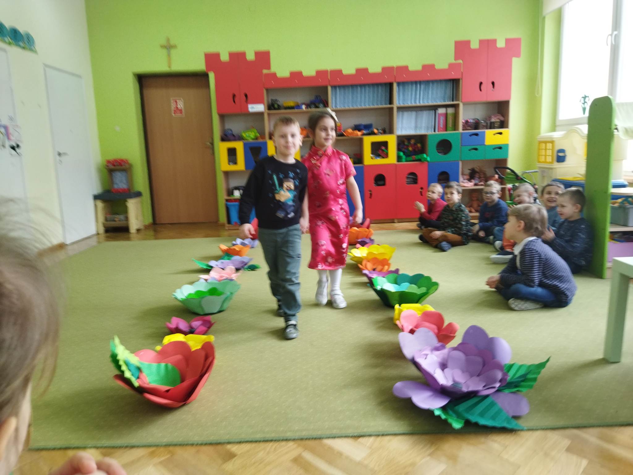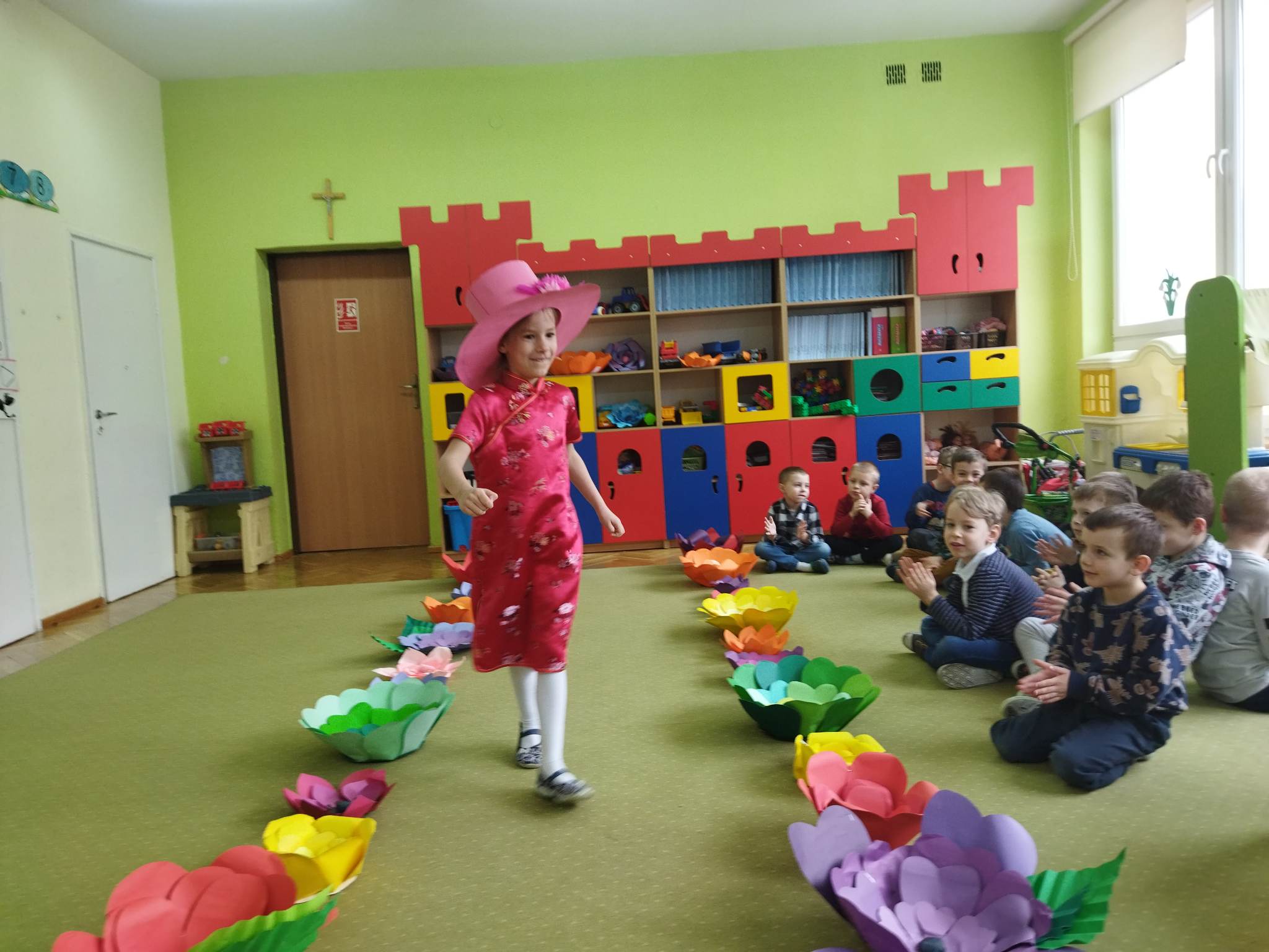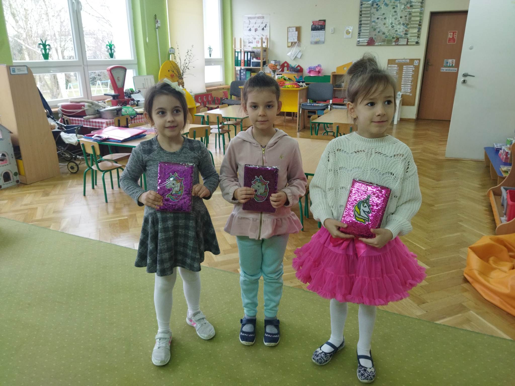 Biedronki to grupa, w której najmniejszą liczbę stanowią dziewczynki. Jest ich 9. W tym dniu przyszły tylko 3. Mogły więc czuć się wyjątkowo docenione. Nie wszystkie też miały śmiałość zaprezentować się na pokazie mody przed liczną widownią „panów”, bo każdy z nich chciał być wybrany. Małe kobietki miały więc duży wybór podczas wspólnych konkursów i zabaw. Dziewczynki otrzymały tez upominki od rodziców, a wszyscy coś słodkiego na poprawę humoru.
