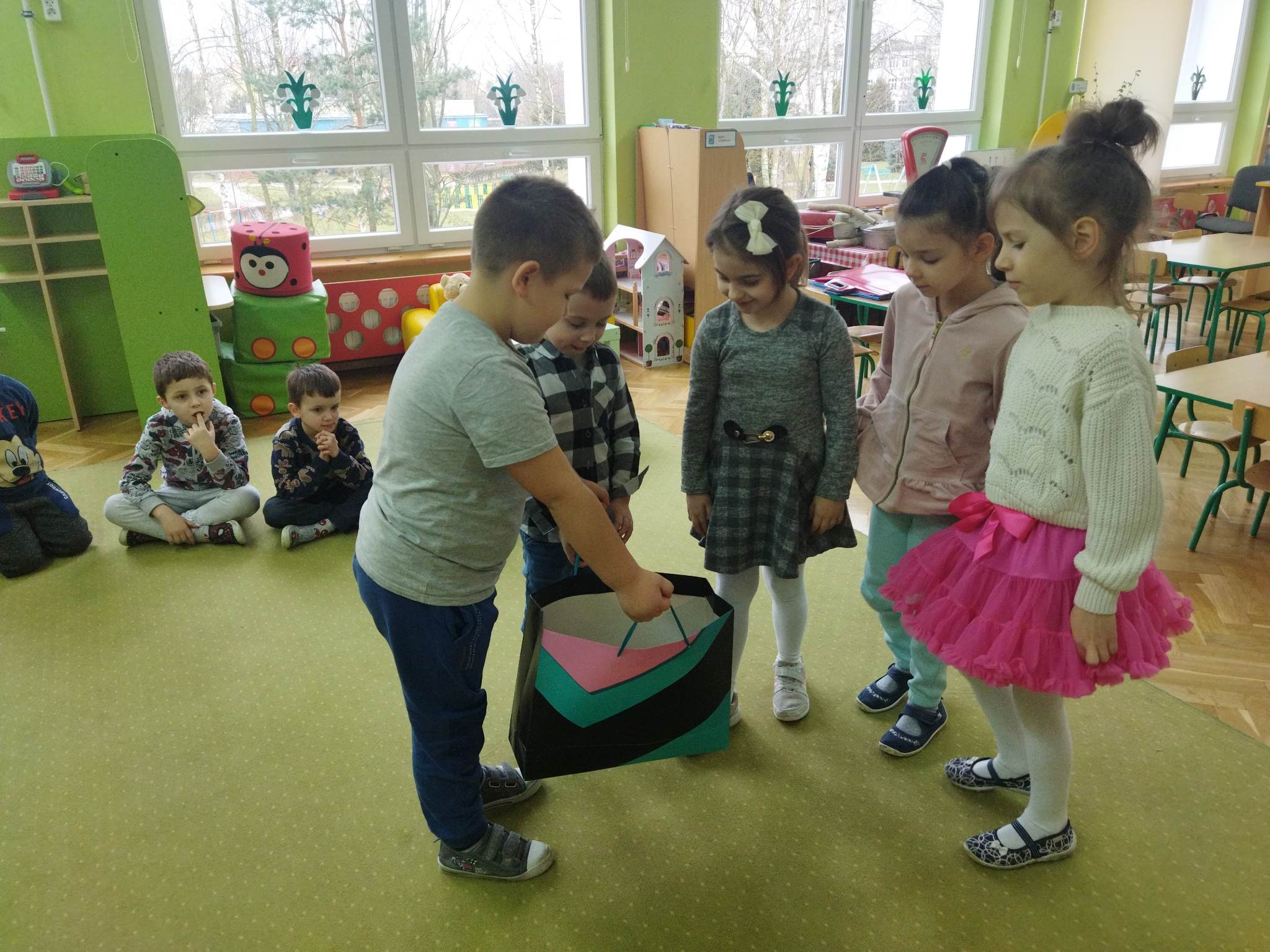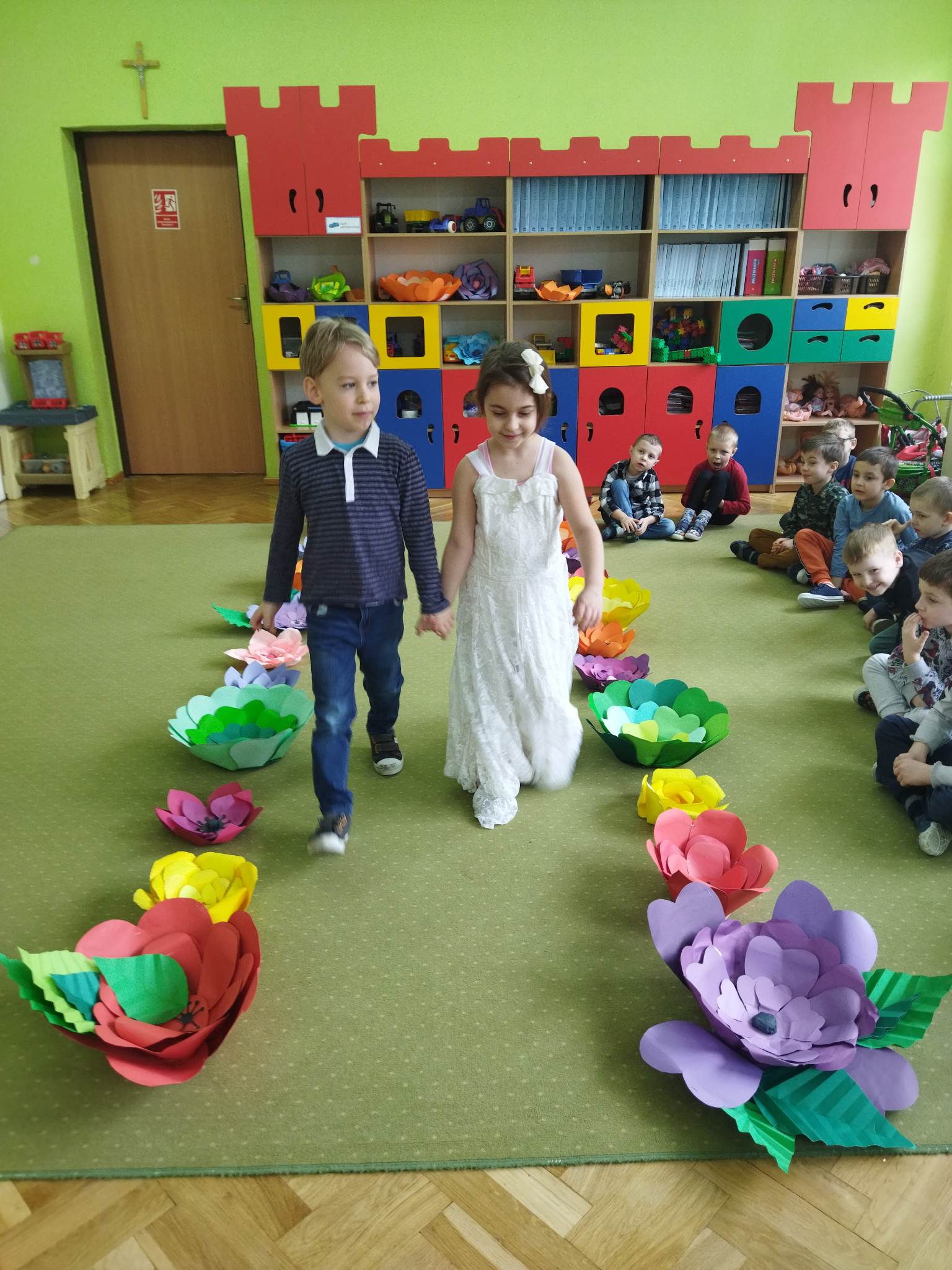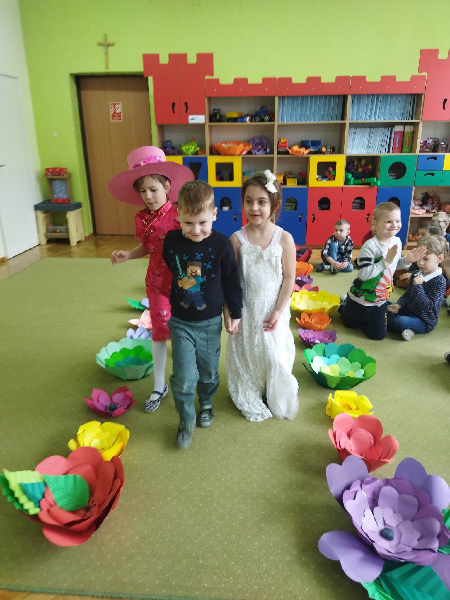 Biedronki to grupa, w której najmniejszą liczbę stanowią dziewczynki. Jest ich 9. W tym dniu przyszły tylko 3. Mogły więc czuć się wyjątkowo docenione. Nie wszystkie też miały śmiałość zaprezentować się na pokazie mody przed liczną widownią „panów”, bo każdy z nich chciał być wybrany. Małe kobietki miały więc duży wybór podczas wspólnych konkursów i zabaw. Dziewczynki otrzymały tez upominki od rodziców, a wszyscy coś słodkiego na poprawę humoru.