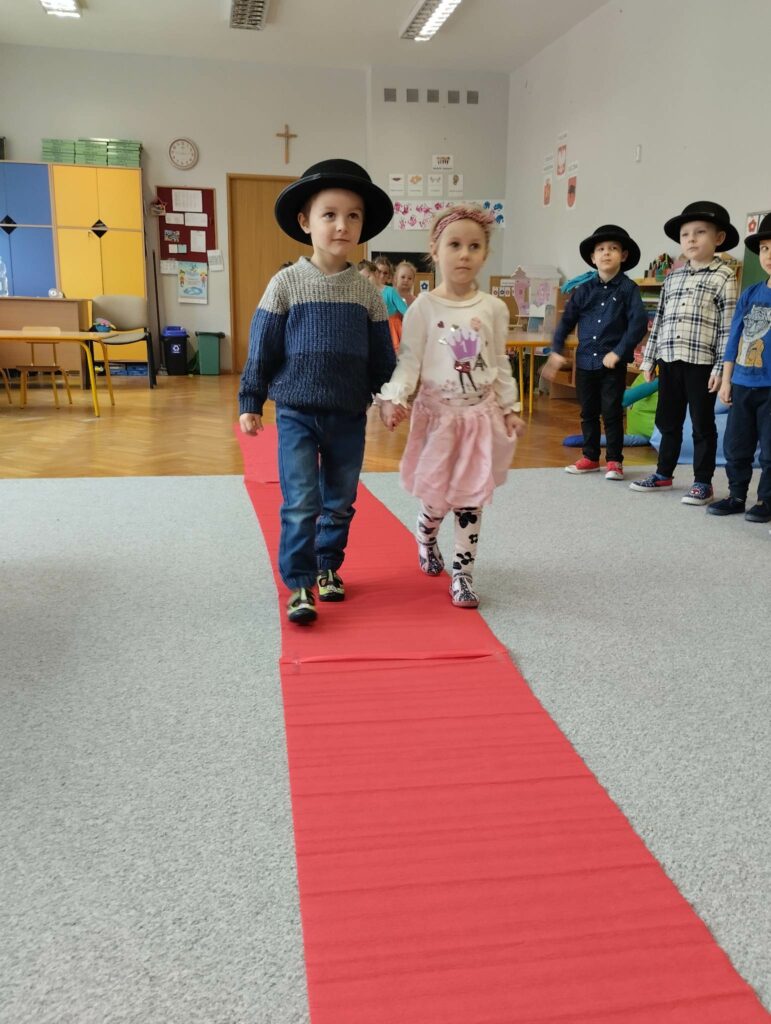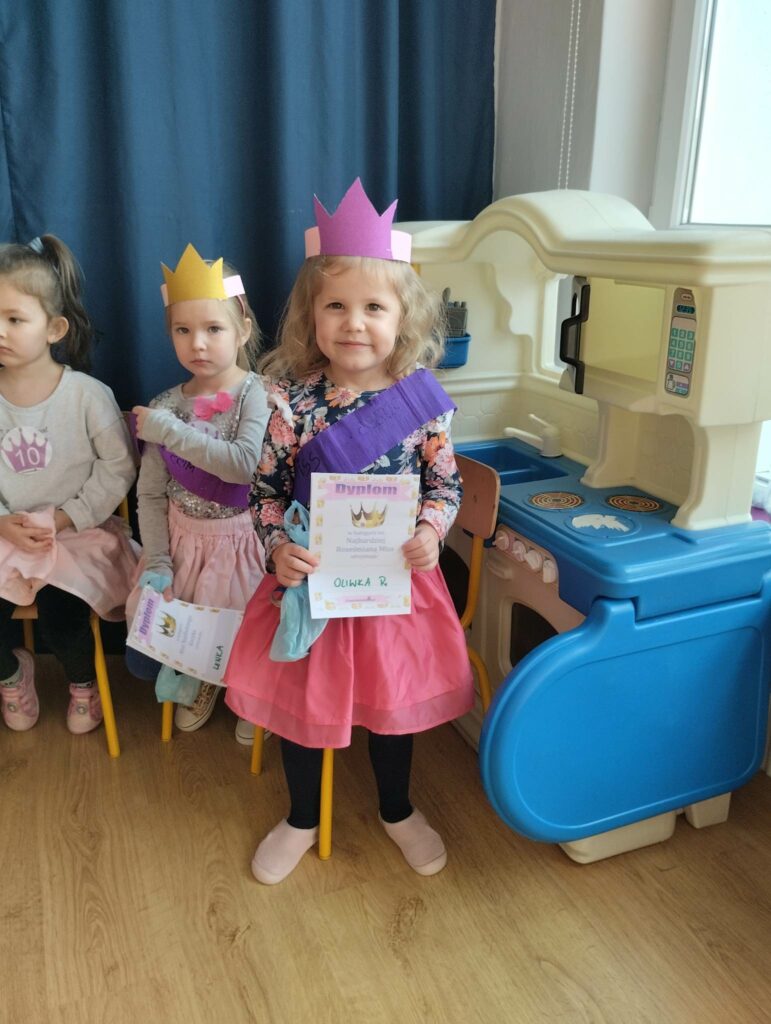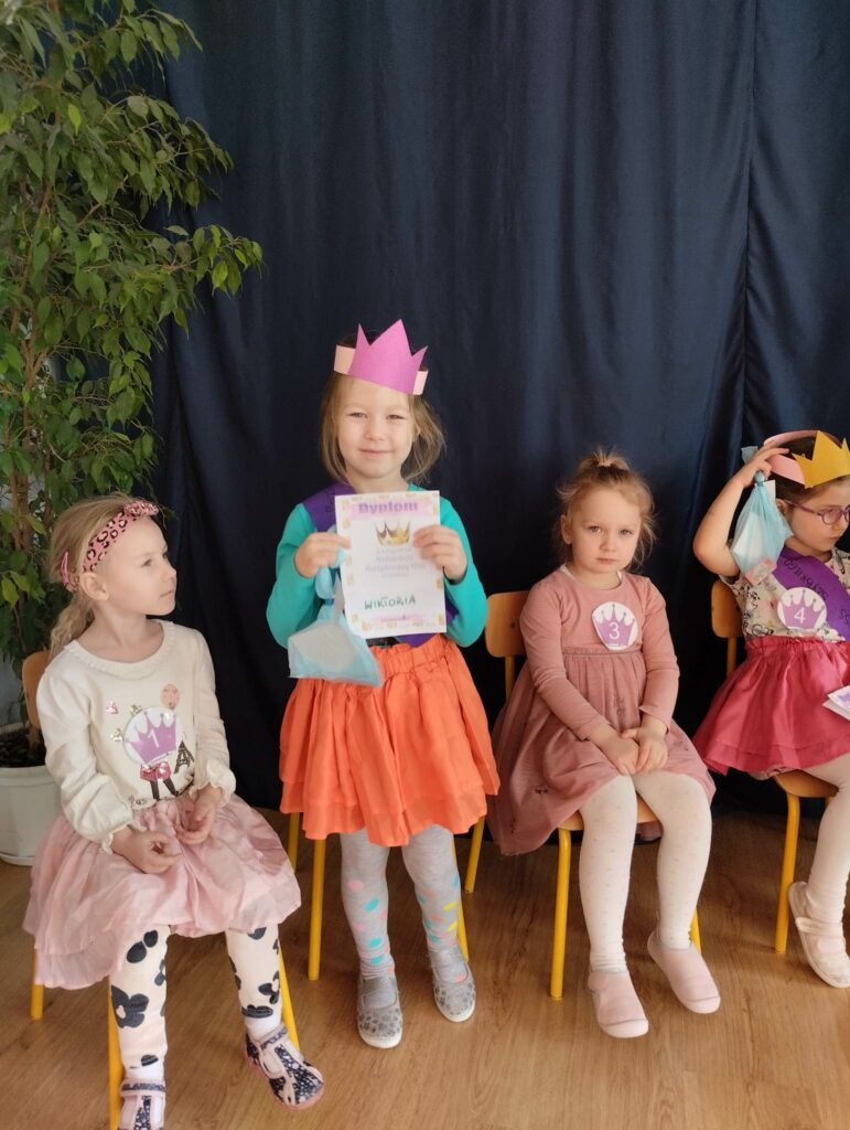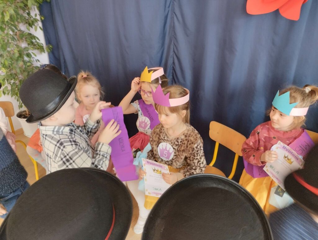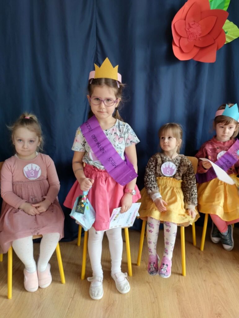 8 marca w naszej grupie był bardzo uroczysty. W Sali pojawił się czerwony dywan po którym z gracją w towarzystwie naszych małych mężczyzn, kroczyły młode damy. Dziewczynki prezentowały swoje wszechstronne umiejętności taneczne, wokalne, matematyczne, zręcznościowe . Chłopcy wraz z Panią Mariolką zasiedli w jury. Każda dziewczynka otrzymała koronę, szarfę i drobny upominek w dziedzinie w której wykazywała się największym zaangażowaniem. Chłopcy mieli trudne zadanie i musieli wykazać się dużą spostrzegawczością za co również zostali wynagrodzeni. Dziękujemy Rodzicom za organizację upominków.