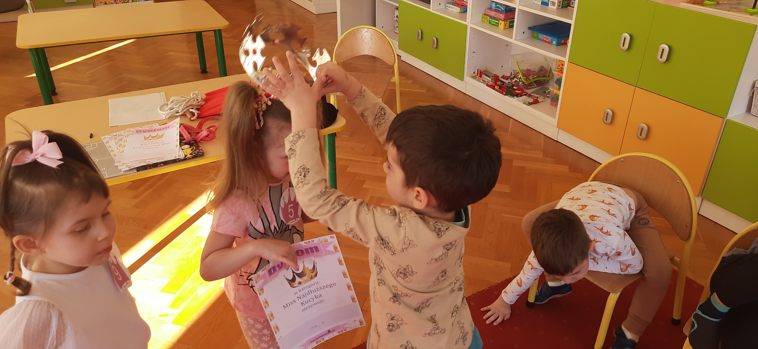 8 MARCA to wyjątkowy dzień w roku. Wtedy swoje święto obchodzą wszystkie kobiety, zarówno te duże, jak i te małe. W tym dniu w grupie „Kotki” odbyły się wybory MISS dziewczynek. Jury w skład którego wchodzili wszyscy chłopcy z grupy dokonali wyboru Miss uśmiechu, Miss równowagi, Miss zagadek, Miss podskoku, Miss najdłuższego kucyka, Miss szybkości i Miss najszybszego liczenia. Na koniec uroczystości chłopcy zaśpiewali głośne 100 lat oraz wręczyli koleżankom upominki.