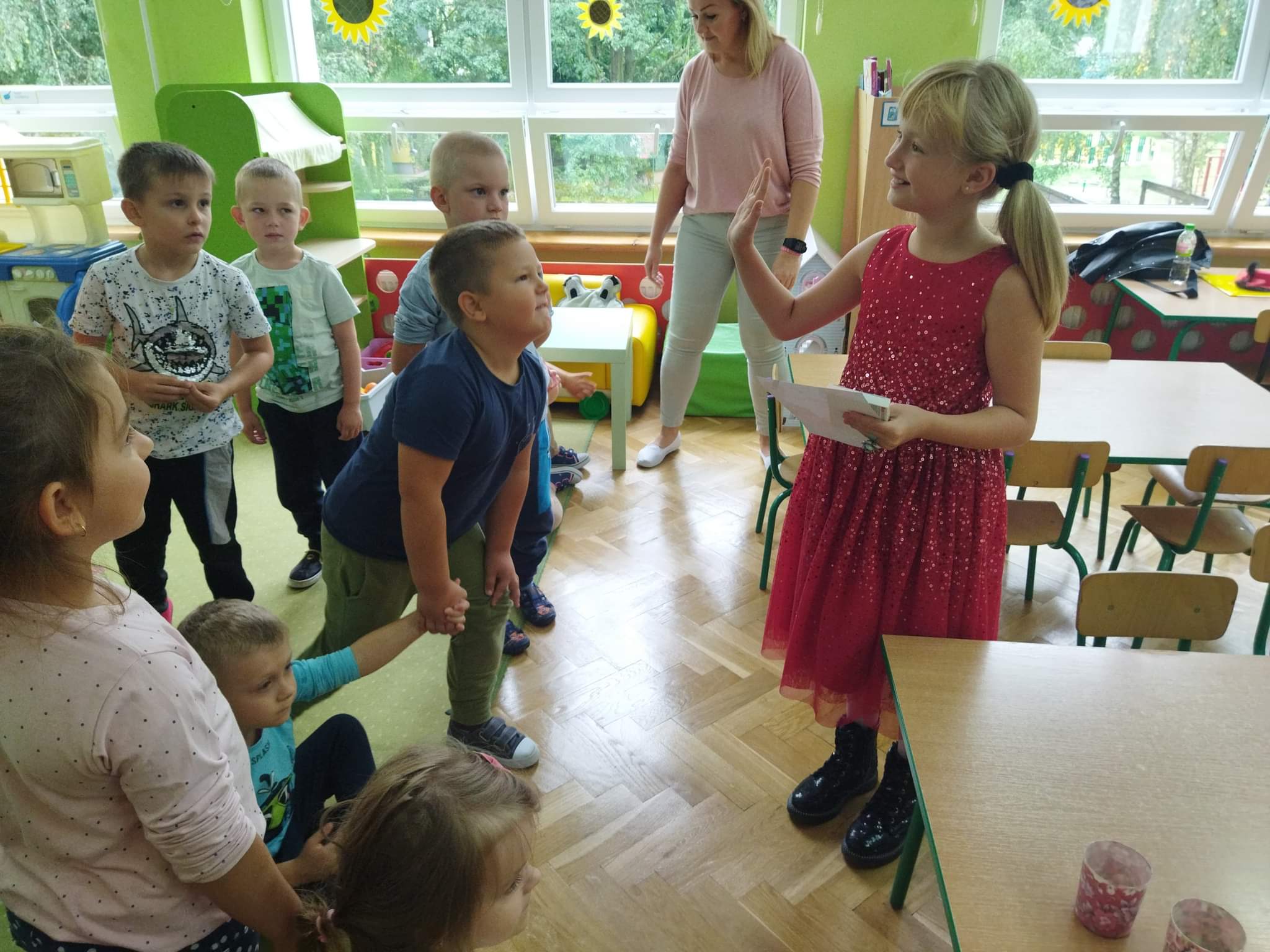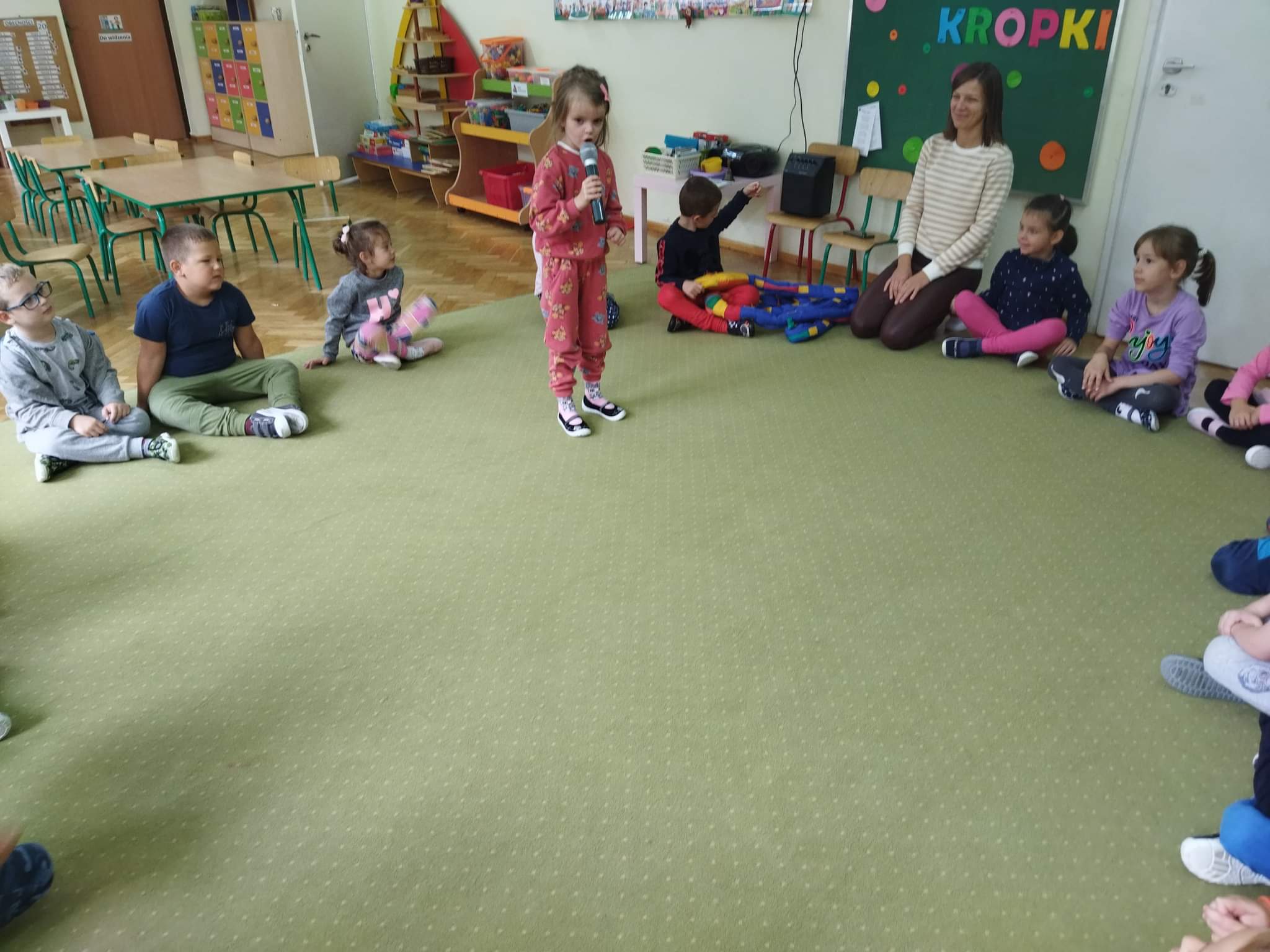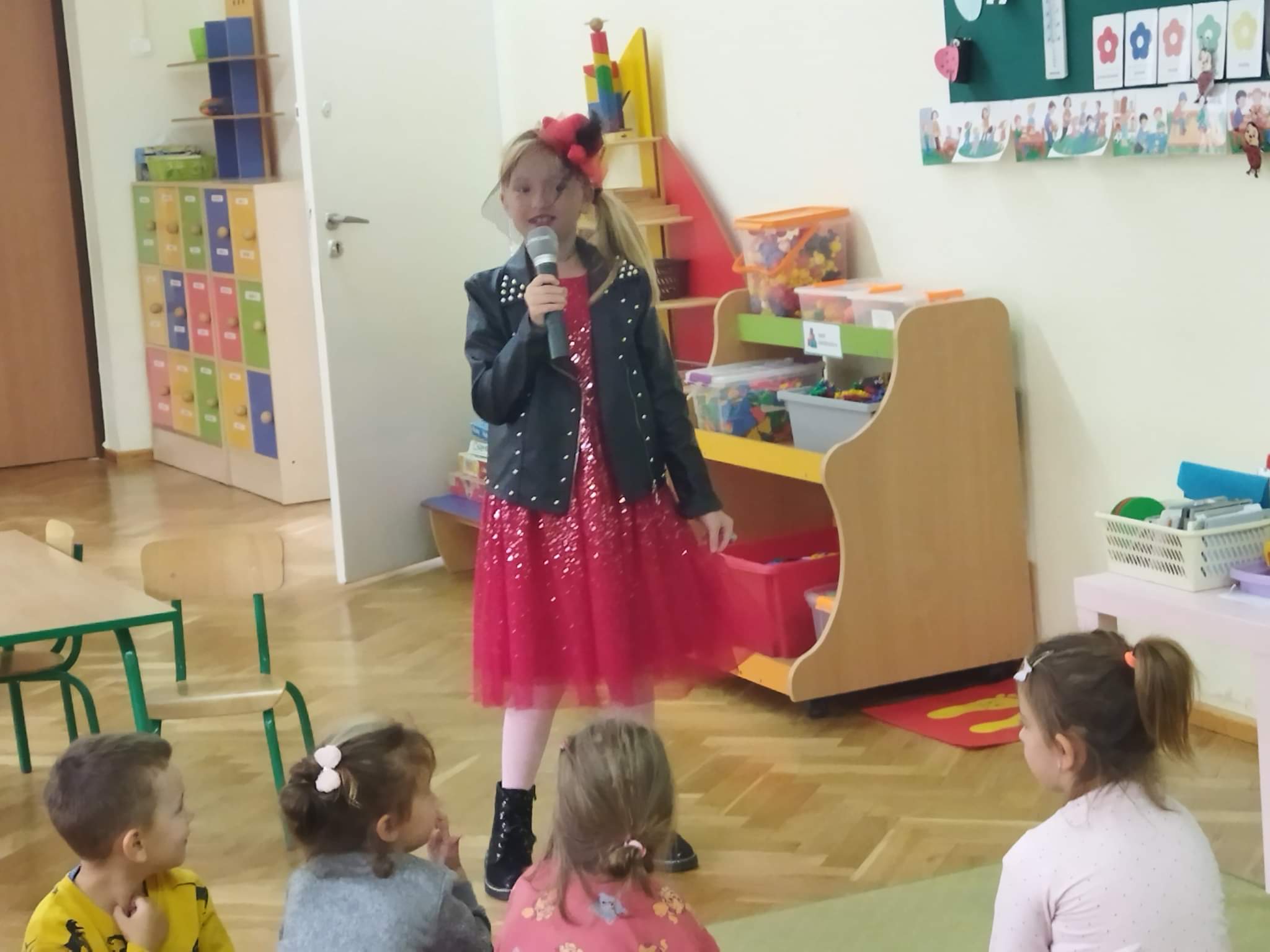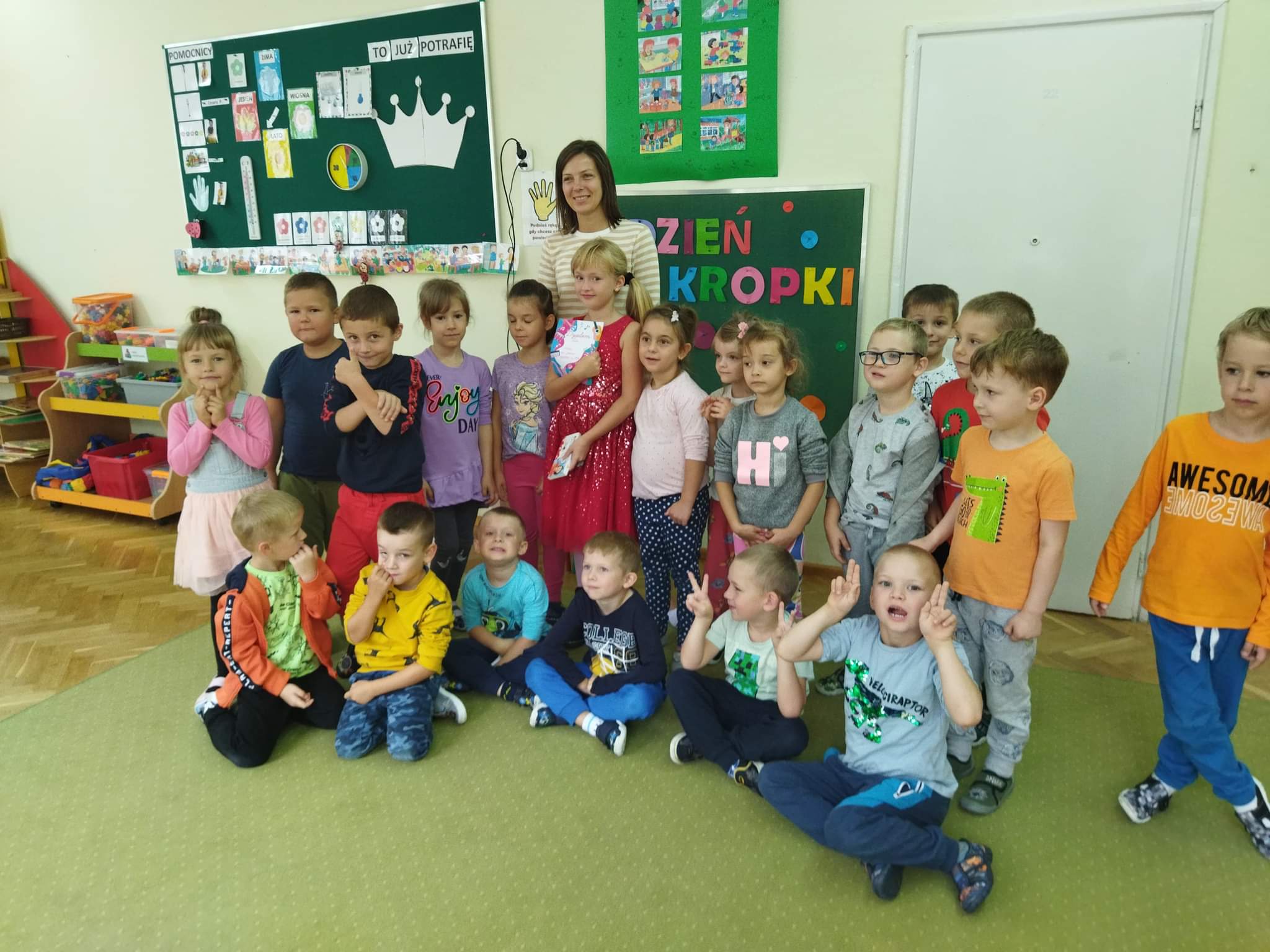 Biedronki świętowały dzień kropki. Dzień ten ma zachęcać do odkrywania swoich talentów oraz dodawać odwagi w pokazywaniu ich światu. W ten dzień odwiedziła nas absolwentka naszego przedszkola – Hania Kukuszka. Hania opowiedziała nam i zaprezentowała swoje talenty. W wywiadzie z Hanią, który przeprowadziły nasze przedszkolaki, można było się dowiedzieć, że oprócz śpiewania, Hania uwielbia tańczyć i rysować (piosenki Hani można obejrzeć w internecie). Nasz gość zainspirował Biedroneczki i dodał im odwagi w zaprezentowaniu swoich talentów. Każdy przedszkolak mógł opowiedzieć i zaprezentować swój talent. Dziękujemy Hani i jej Tacie za poświęcony nam czas.
