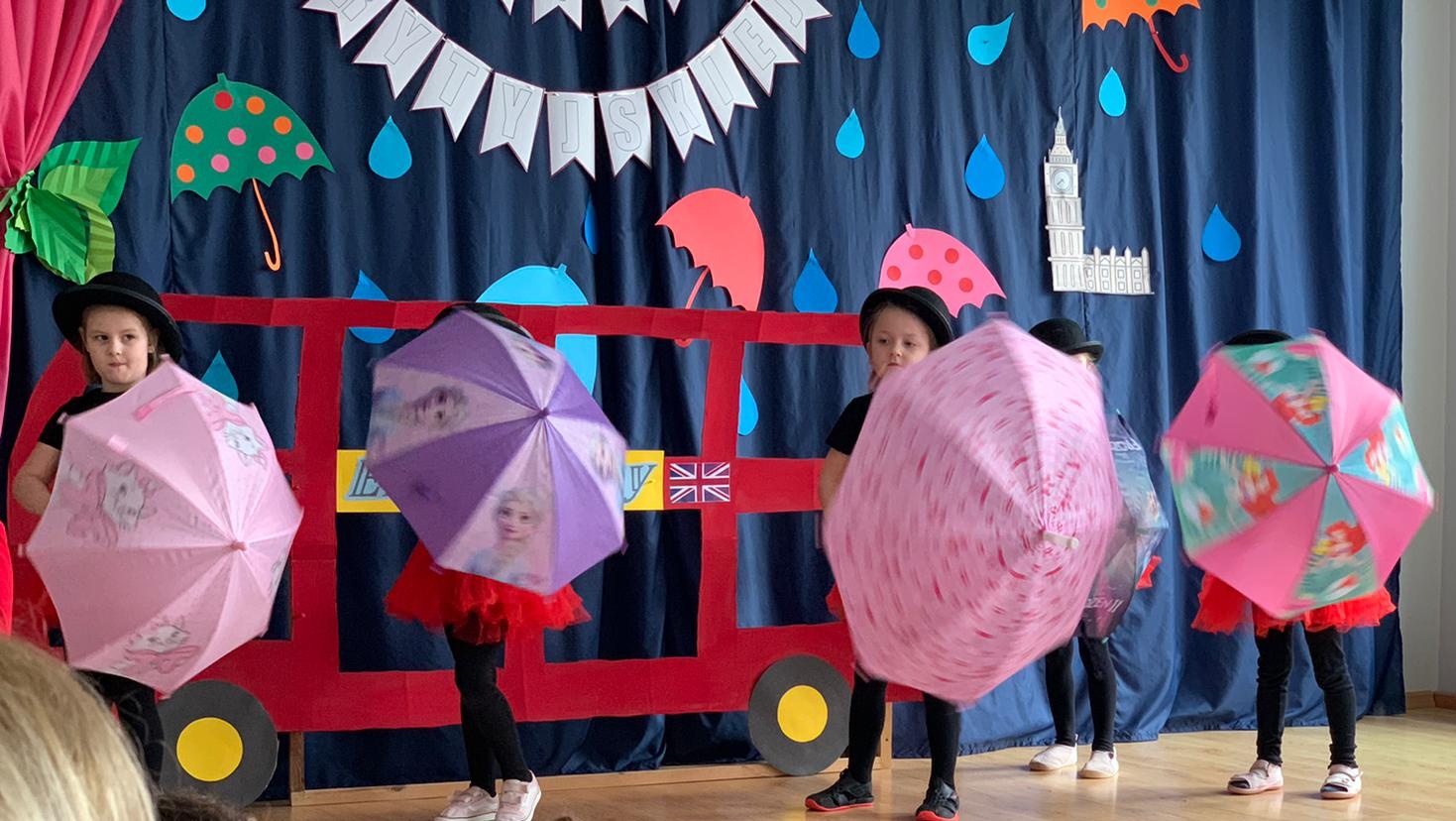 Imponującym wydarzeniem były obchody „Dnia Kultury Brytyjskiej” w naszym przedszkolu. Z tej racji licznie zgromadzone dzieci obejrzały niezwykle ciekawy występ wokalno- taneczny w wykonaniu swych utalentowanych rówieśników z grupy „Misie”, który został nagrodzony gromkimi brawami.