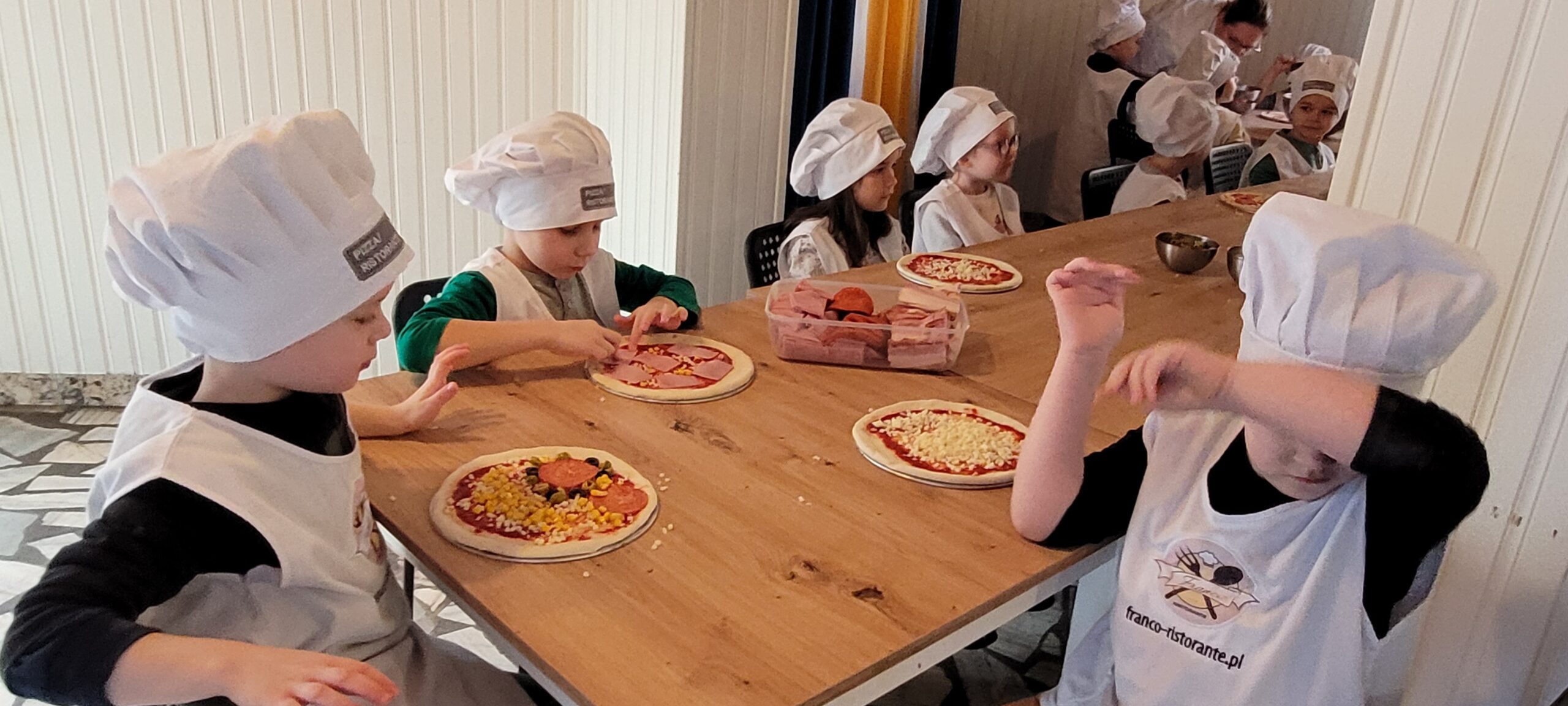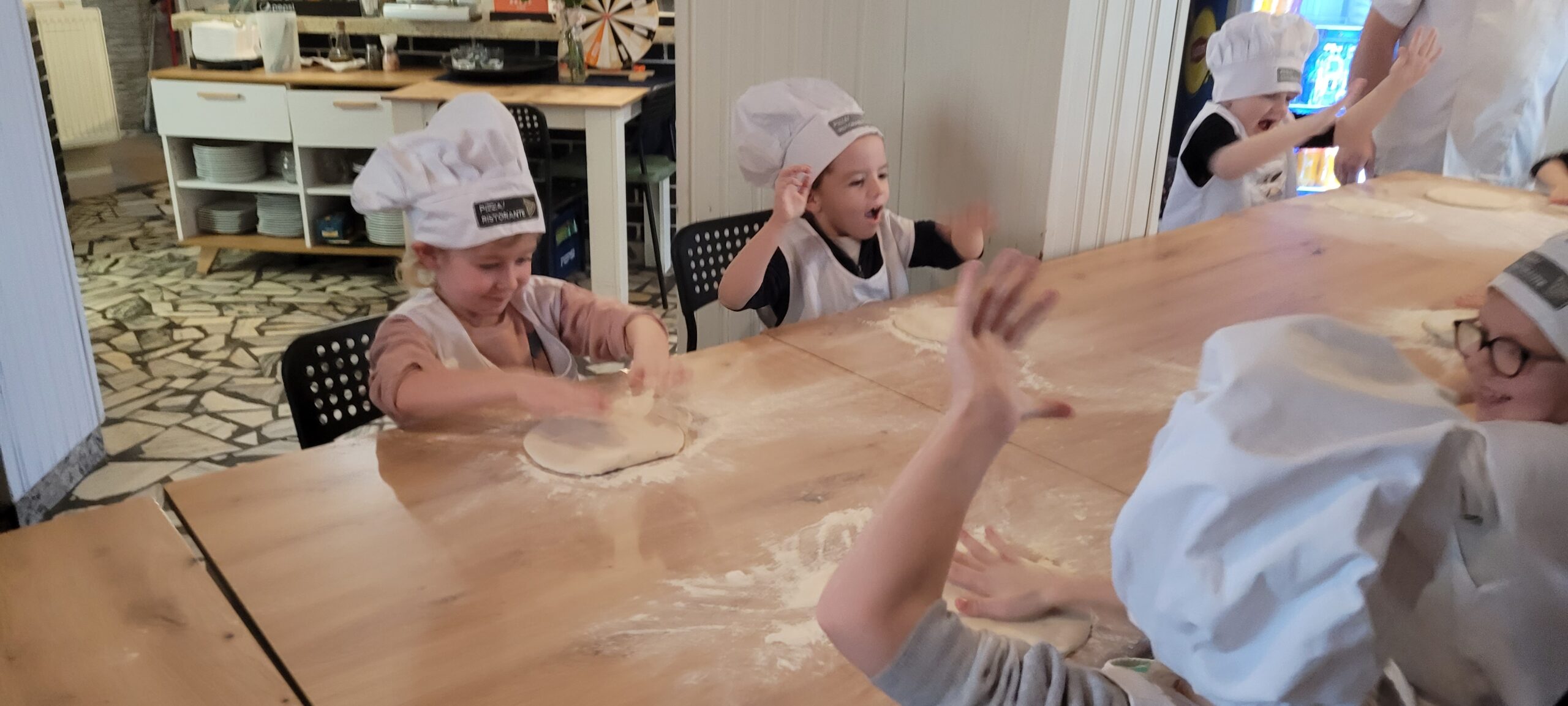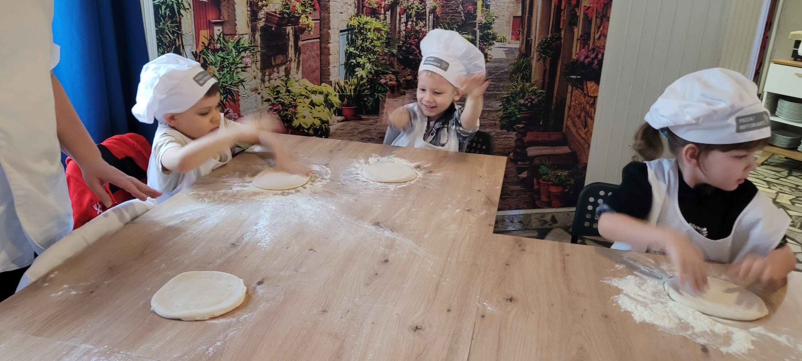 Z okazji obchodzonego 9 lutego ,, Dnia Pizzy’’ grupa Żabki wybrała się do pobliskiej pizzerni ,,Franco’’ na warsztaty kulinarne. Przedszkolaki poznały historię pizzy, z jakiego kraju pochodzi i czego potrzebujemy aby ją wykonać. Następnie samodzielnie przystąpiły do przygotowania ciasta a później doboru składników według własnego uznania. Wszyscy nie mogli doczekać się efektu końcowego naszej pracy czyli upieczonej pizzy. Przedszkolaki z apetytem zjadali swoje samodzielnie wykonane pizze jednocześnie pamiętając o właściwym zachowaniu przy jedzeniu i w miejscu publicznym.