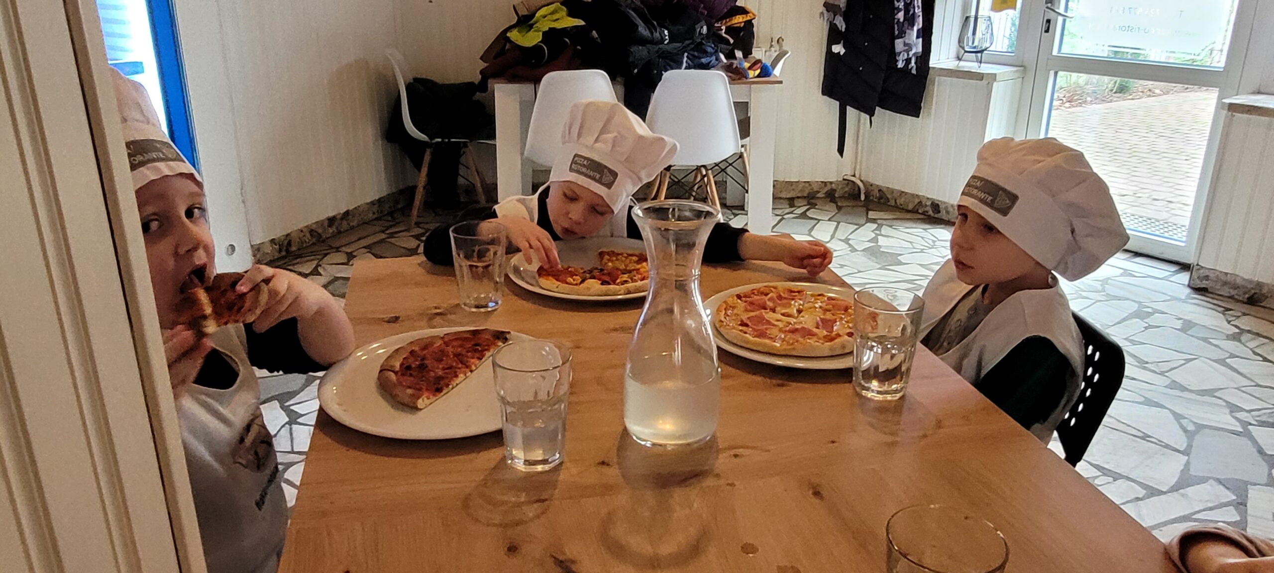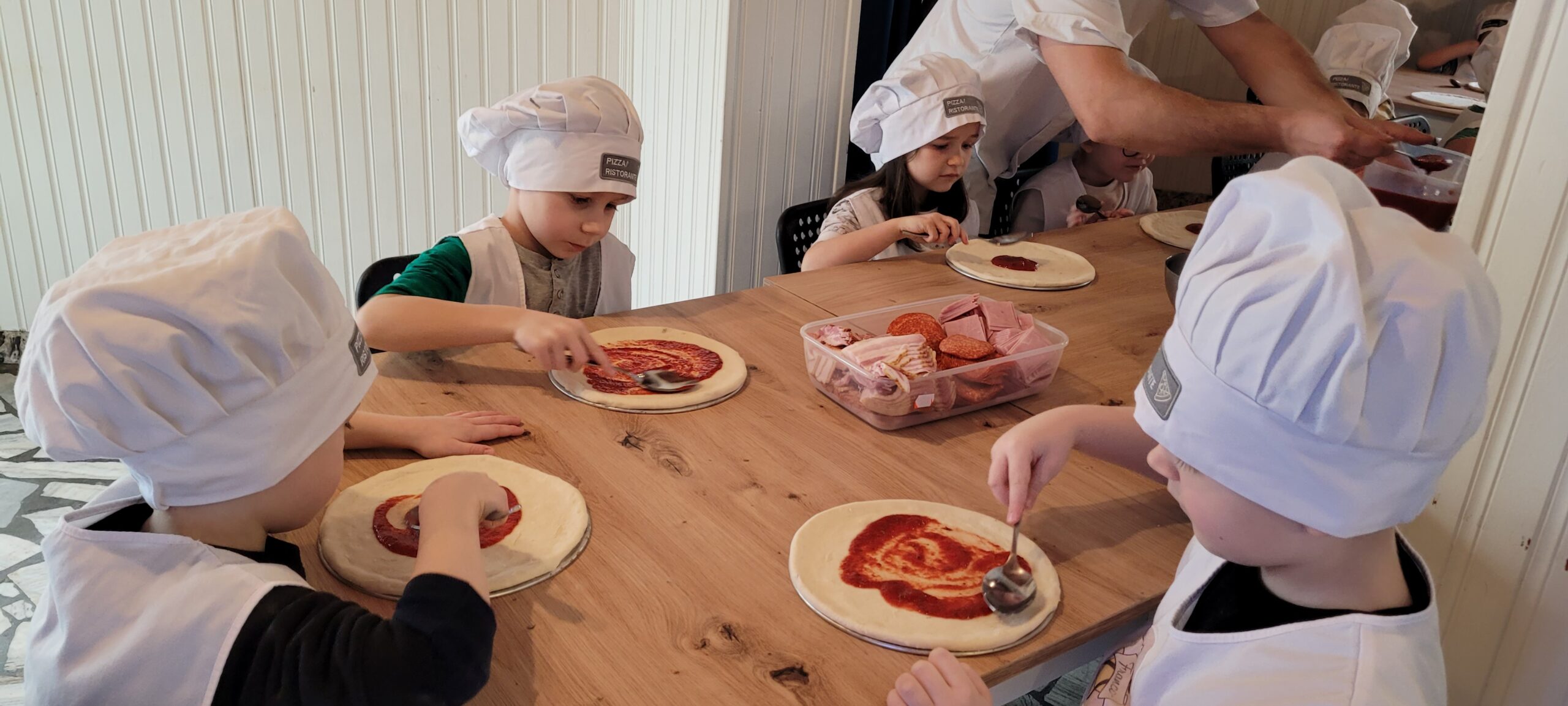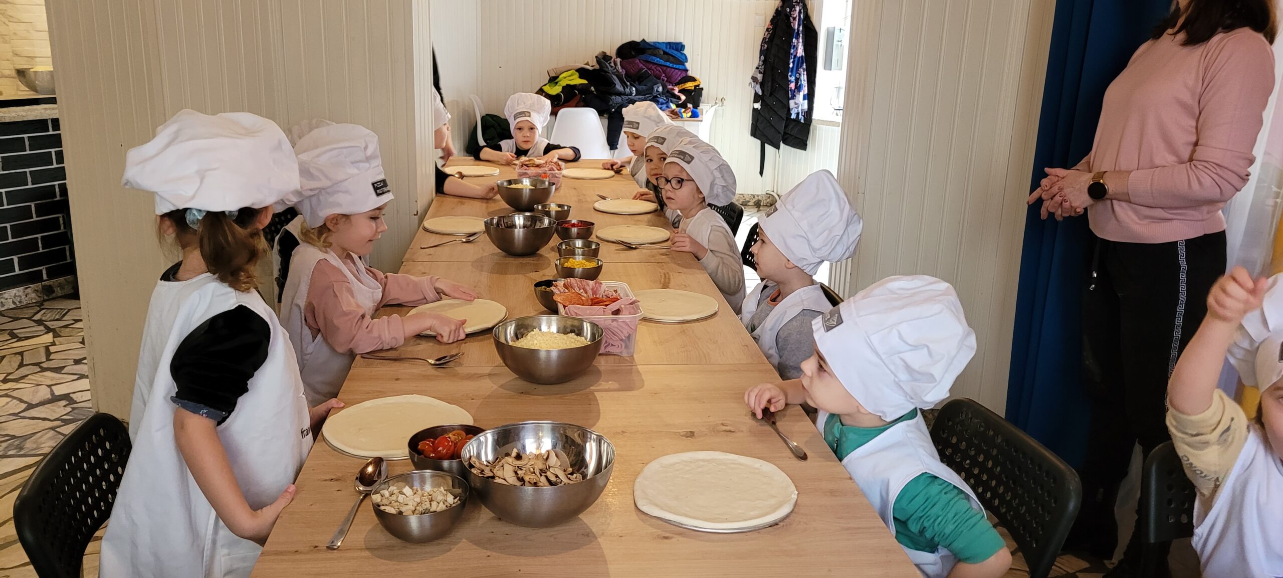 Z okazji obchodzonego 9 lutego ,, Dnia Pizzy’’ grupa Żabki wybrała się do pobliskiej pizzerni ,,Franco’’ na warsztaty kulinarne. Przedszkolaki poznały historię pizzy, z jakiego kraju pochodzi i czego potrzebujemy aby ją wykonać. Następnie samodzielnie przystąpiły do przygotowania ciasta a później doboru składników według własnego uznania. Wszyscy nie mogli doczekać się efektu końcowego naszej pracy czyli upieczonej pizzy. Przedszkolaki z apetytem zjadali swoje samodzielnie wykonane pizze jednocześnie pamiętając o właściwym zachowaniu przy jedzeniu i w miejscu publicznym.