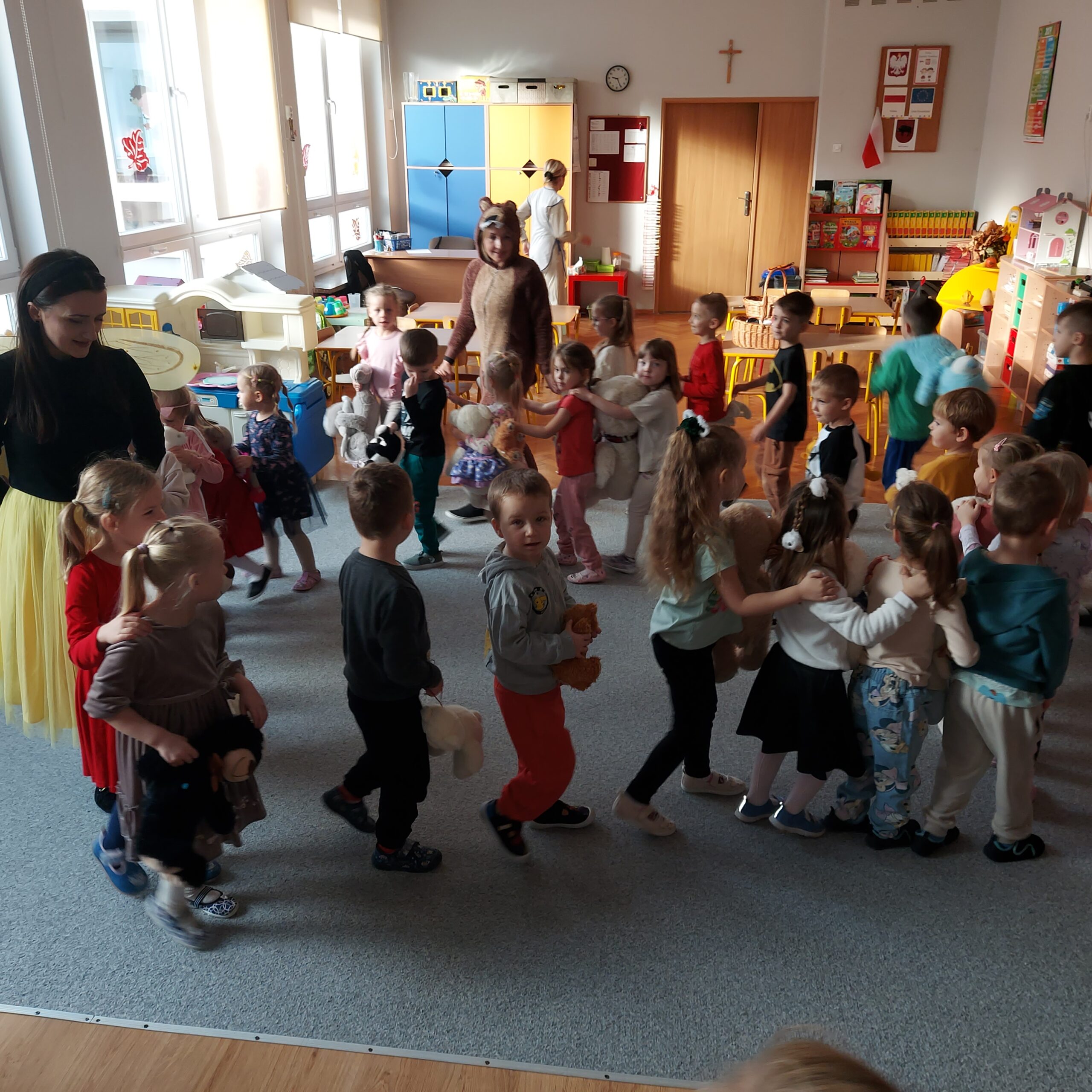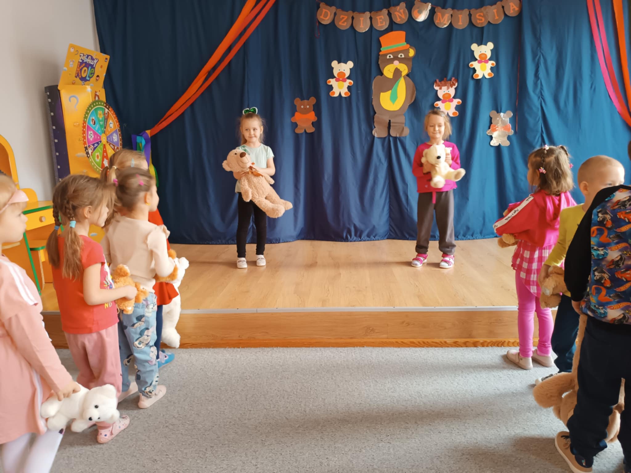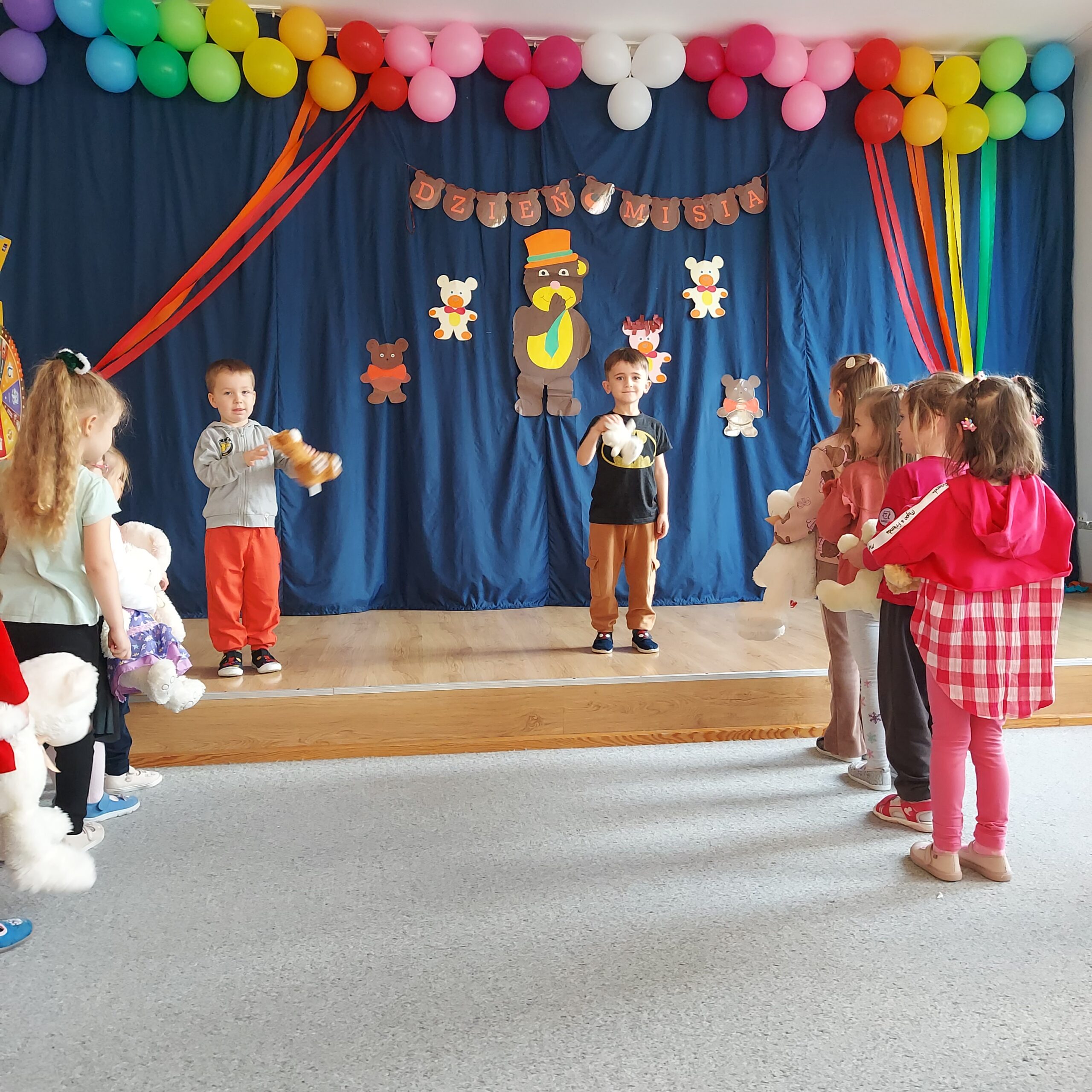 Na dzieci czekało mnóstwo atrakcji: zabawy ruchowe, zagadki, tańce oraz wspólne śpiewanie kołysanki dla misiów. Największą niespodzianką była wizyta Pszczółki i Niedźwiadka, którzy odwiedzili przedszkolaki. Na zakończenie dzieci zostały obdarowane słodkim, naturalnym miodem.