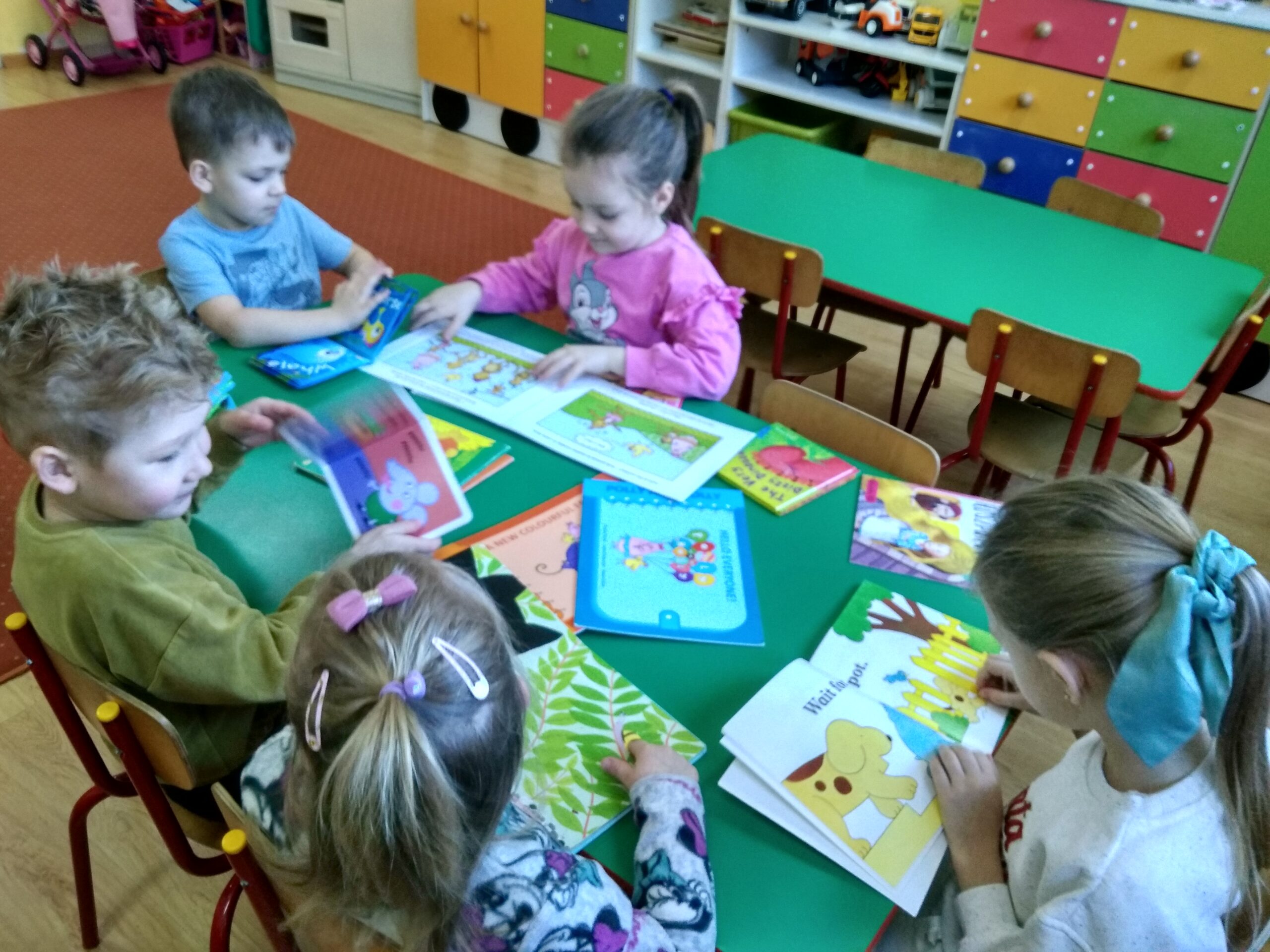 Dzieci z zainteresowaniem oglądały anglojęzyczną literaturę dziecięcą, z którą miały okazję spotkać się dzięki utworzonemu w ramach projektu Angielski jest fun- tastyczny kącikowi English Book Corner. Przedszkolaki dowiedziały z czego składa się książka oraz do czego służy oraz jak należy o nią dbać.
