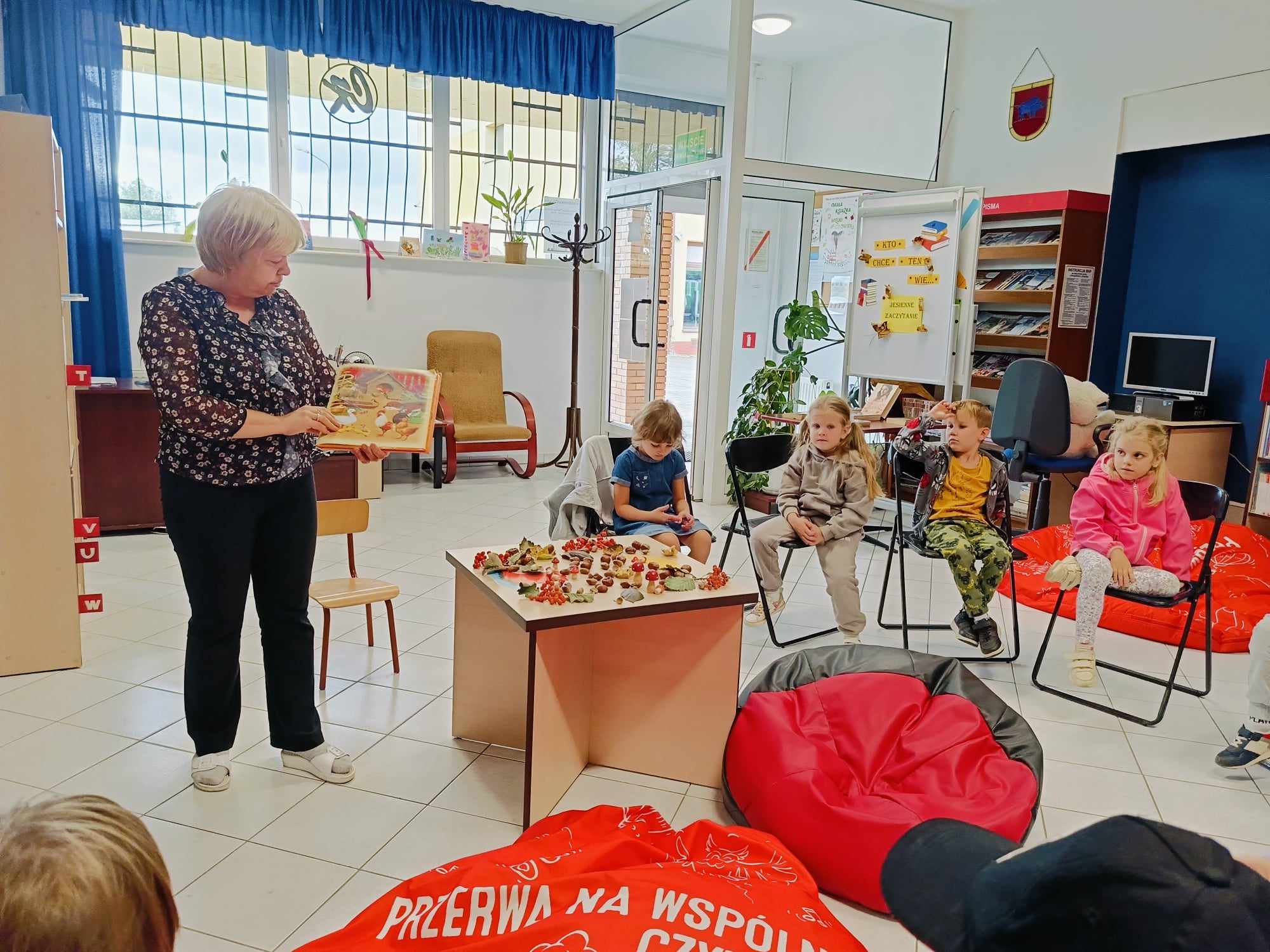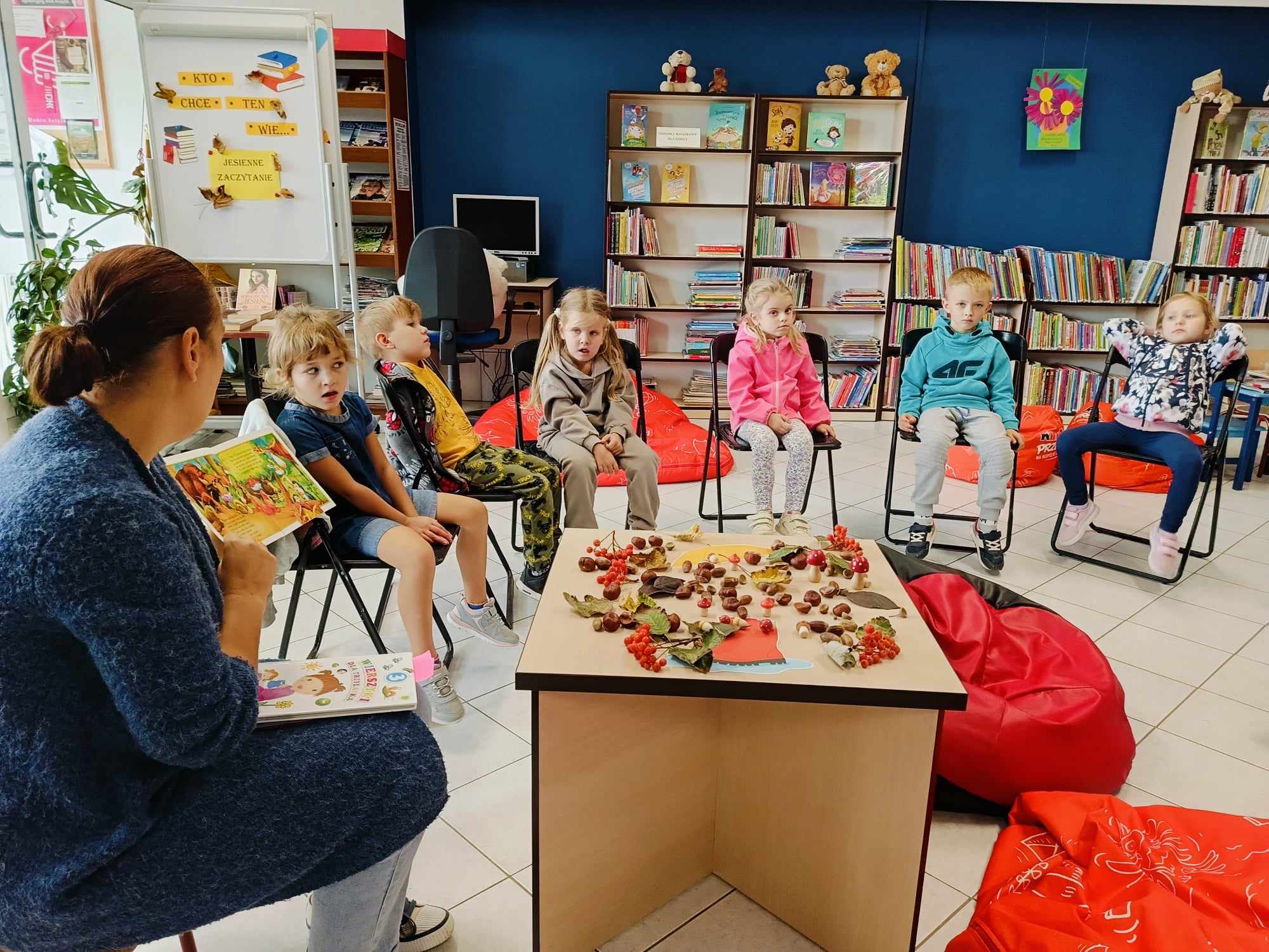W piątek nasza grupa wybrała się do pobliskiej biblioteki, gdzie odbyło się głośne czytanie pt. „Jesień w bibliotece”.