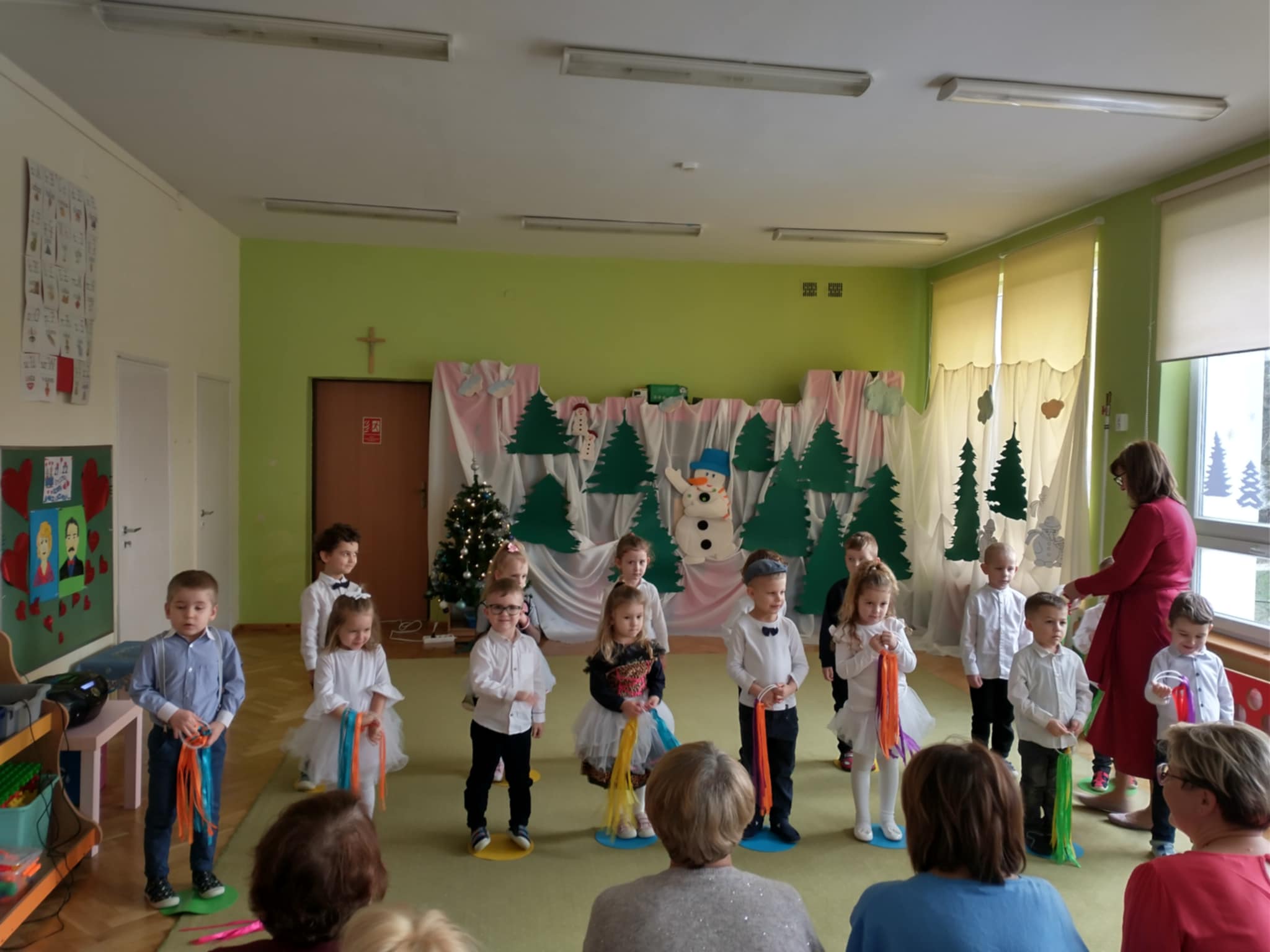 23 stycznia dzieci z grupy Sowy zaprosiły do przedszkola Babcie i Dziadków, aby w szczególny sposób okazać swoim bliskim szacunek i wdzięczność za Ich miłość, cierpliwość i czas, jaki poświęcają wnukom. W pięknie udekorowanej sali i odświętnych strojach przedszkolaki zaprezentowały wiersze, piosenki, skecz ” Obiad” oraz taniec przygotowany z okazji tego wyjątkowego święta. Następnie zaprosiły Babcie i Dziadków do wspólnej zabawy przy muzyce i słodki poczęstunek. Wyjątkowa atmosfera tego spotkania i wspólnie spędzony czas zapewne długo pozostaną w pamięci wszystkich uczestników tego spotkania.