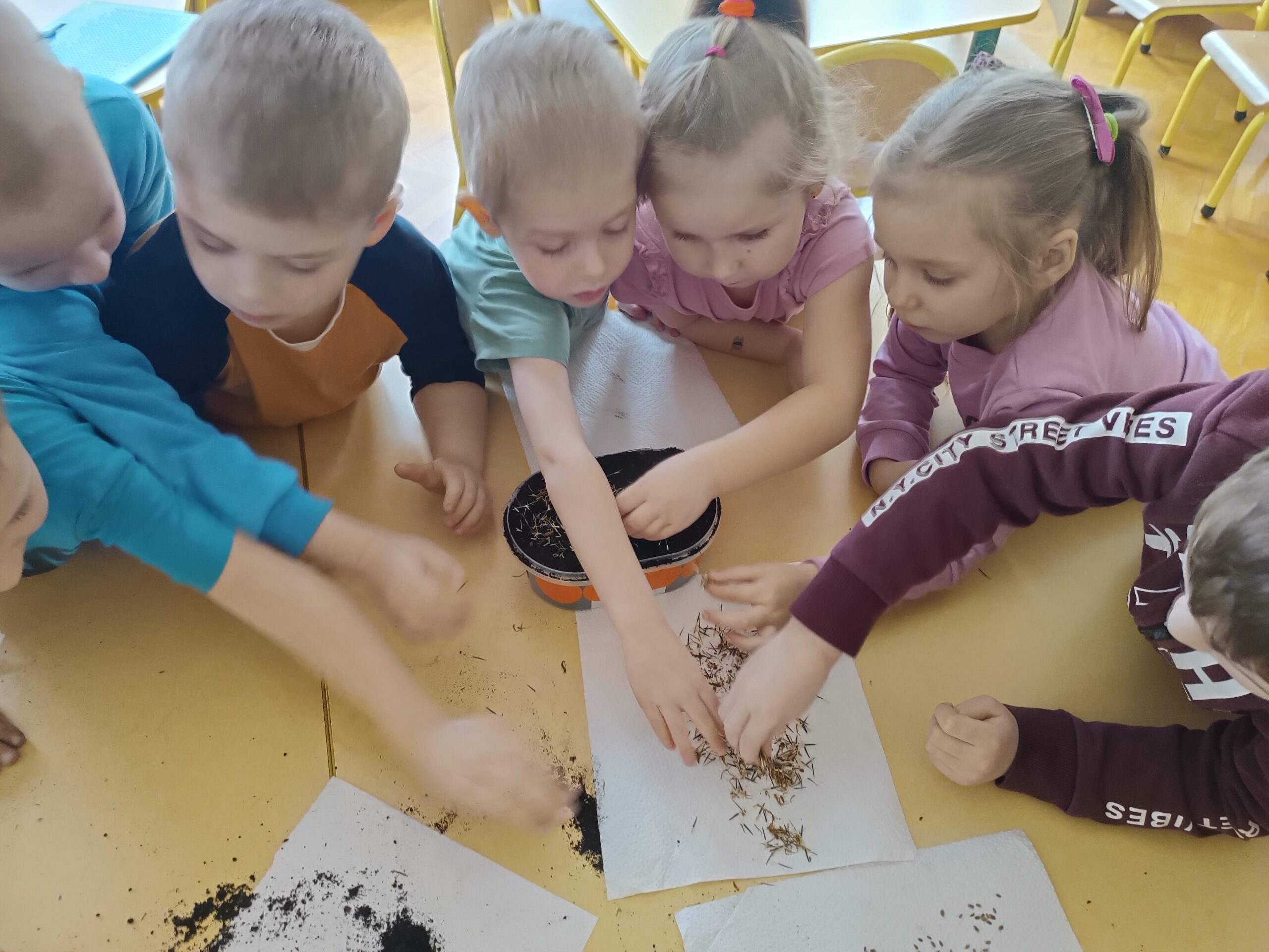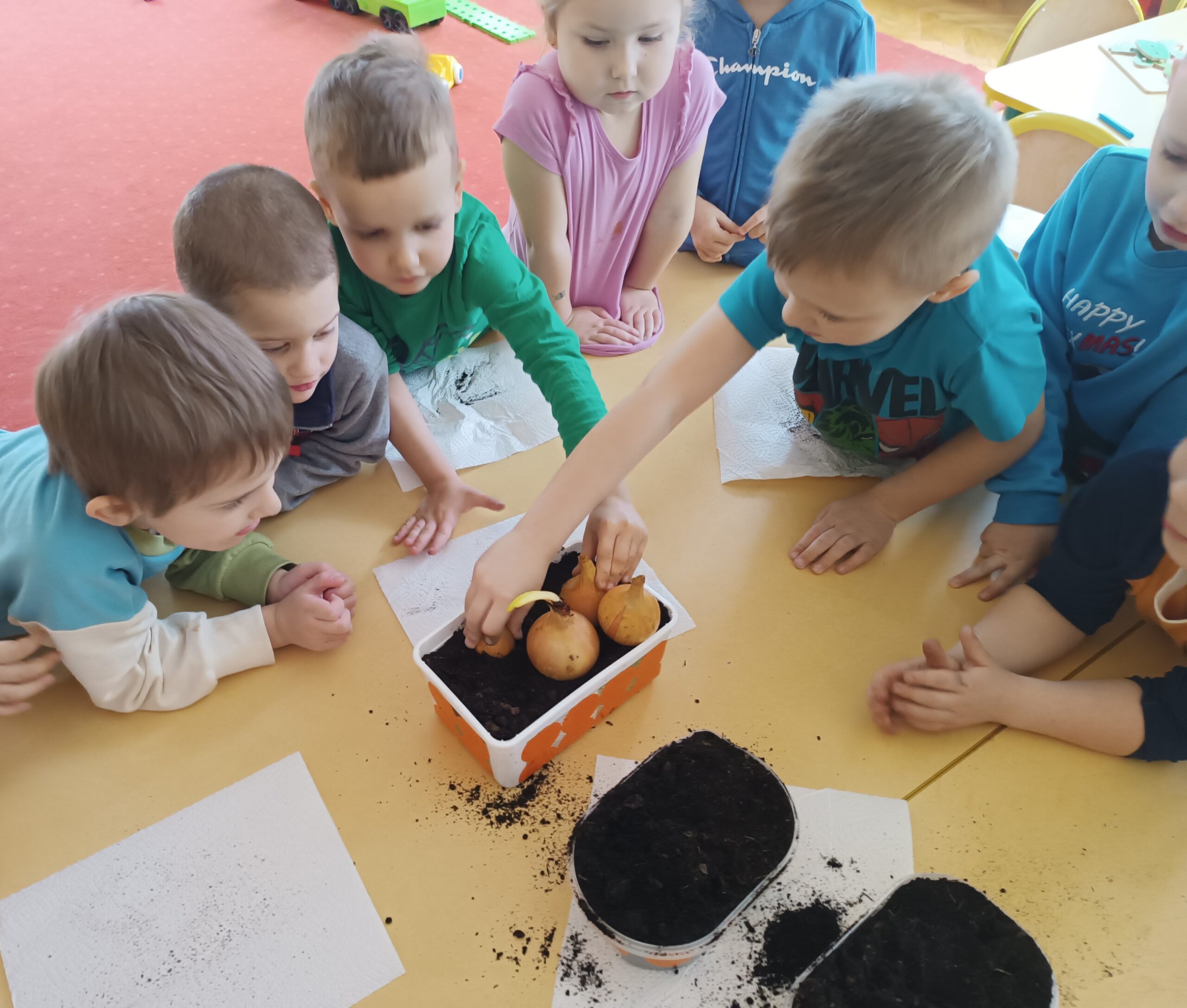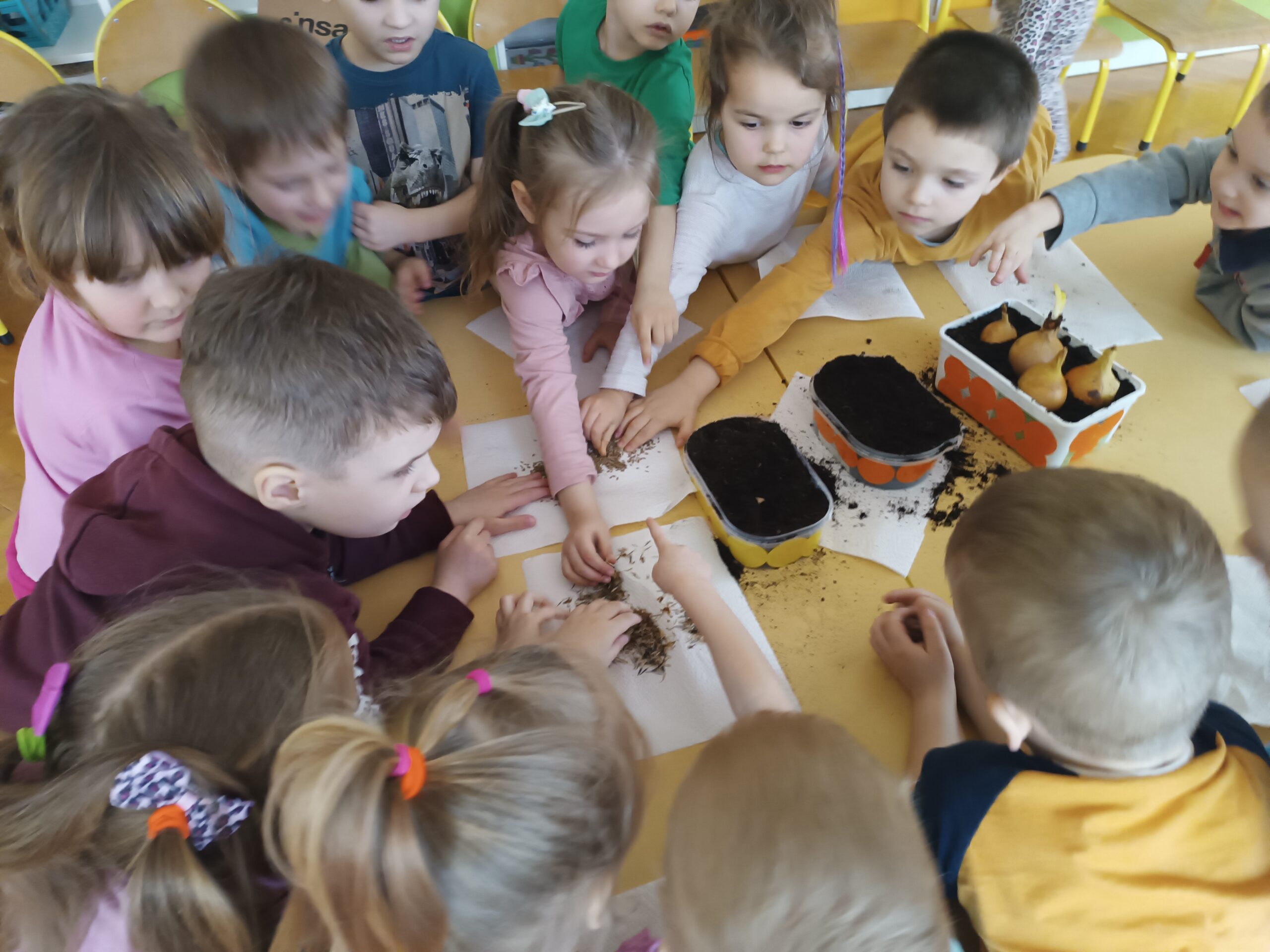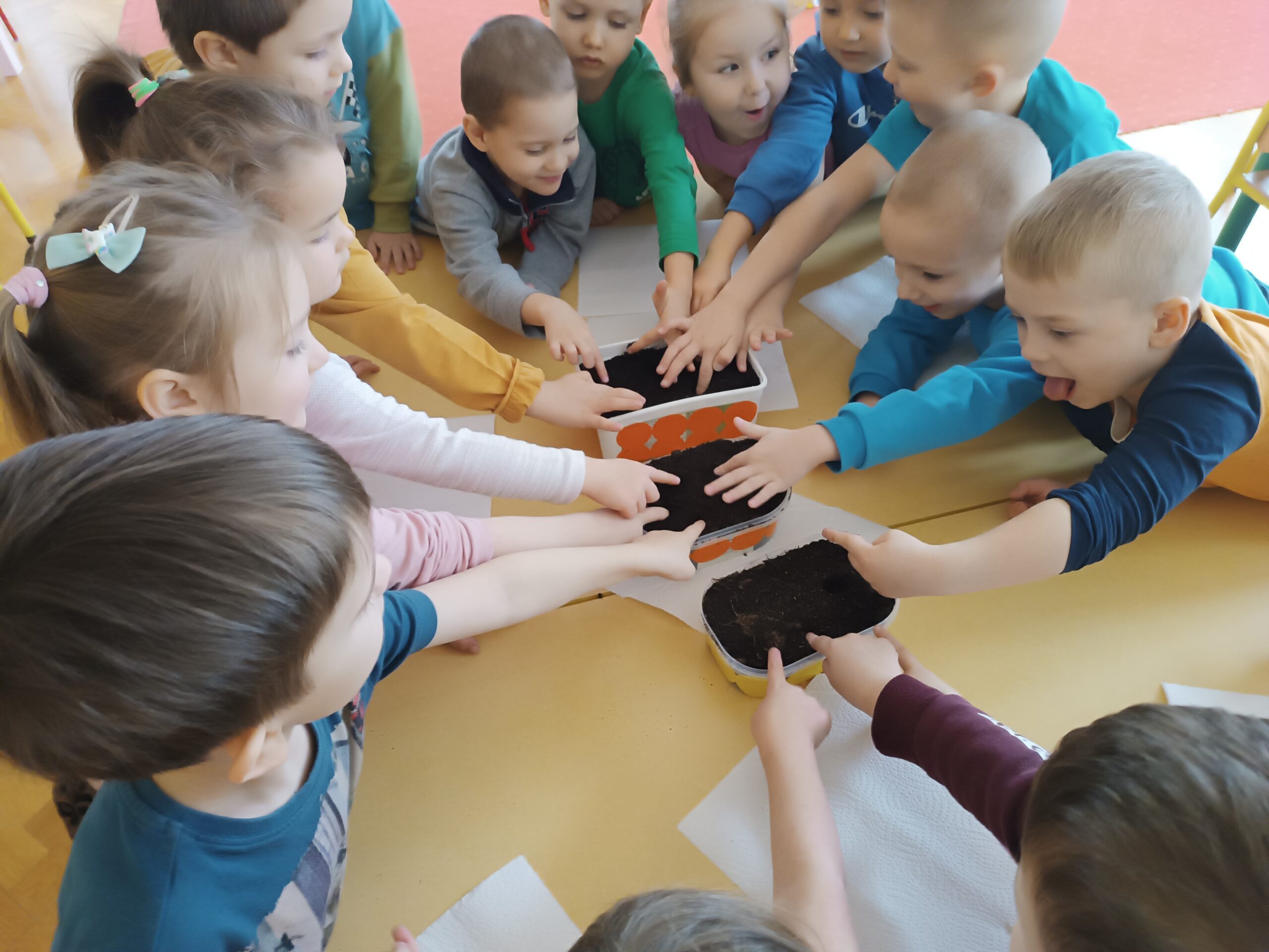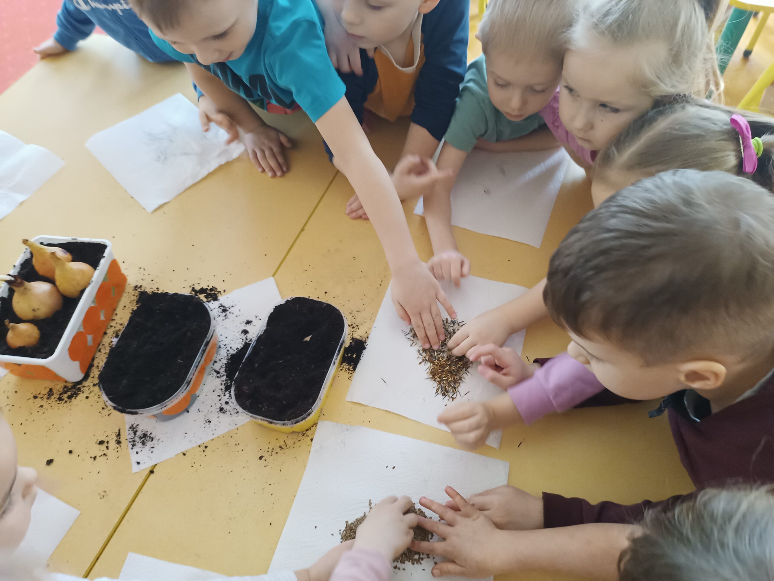 Chcąc przyspieszyć przyjście wiosny ,,Kotki” postanowiły założyć zielony ogródek. Zgromadziły potrzebne przybory, ziemię, sadzonki i nasionka. Przed przystąpieniem do pracy poznały warunki potrzebne roślinom do wzrostu. Po posadzeniu, zasianiu i podlaniu rośliny zostały umieszczone w kąciku przyrody, a dzieci muszą pamiętać o ich podlewaniu oraz obserwować ich wzrost.
