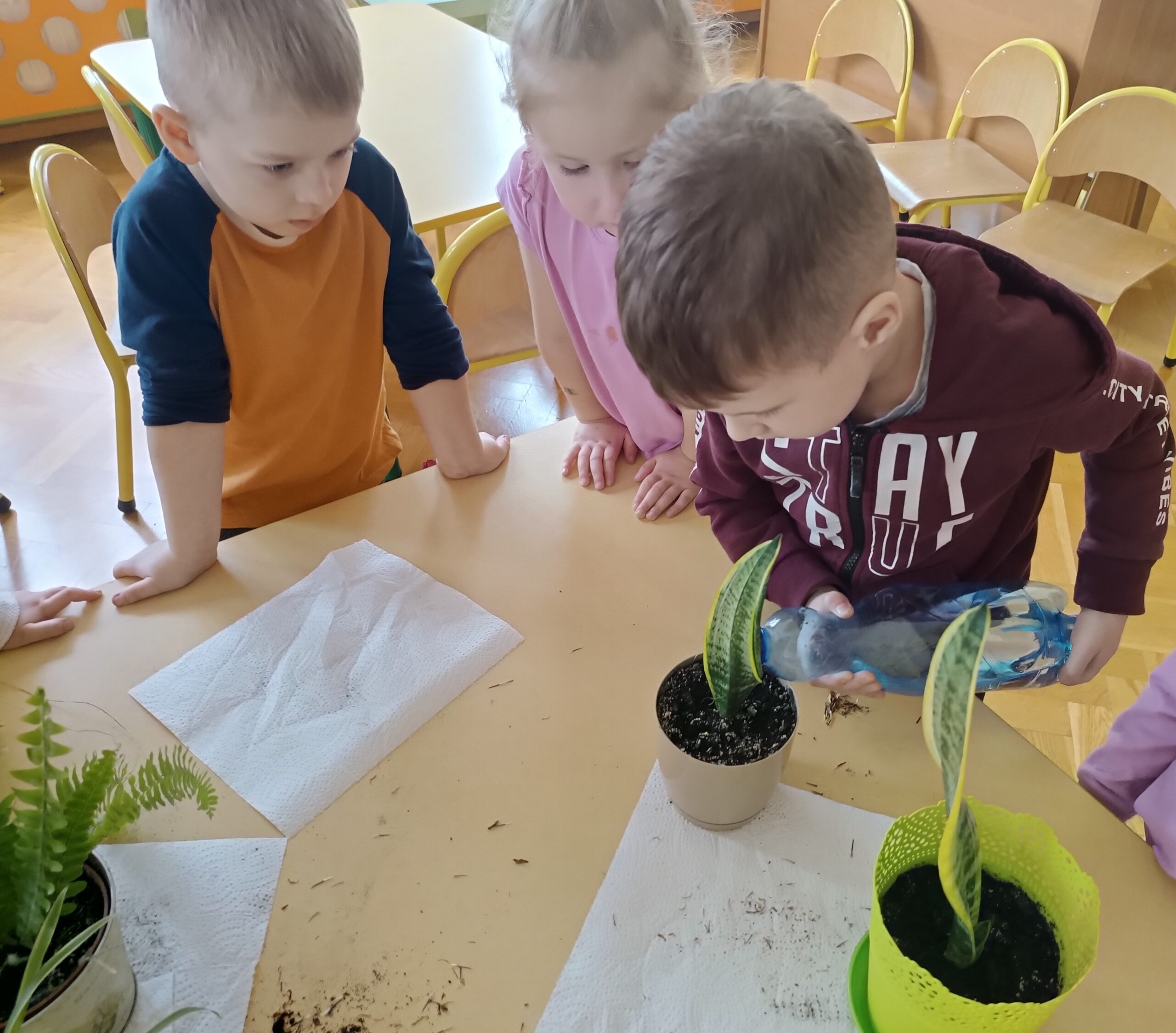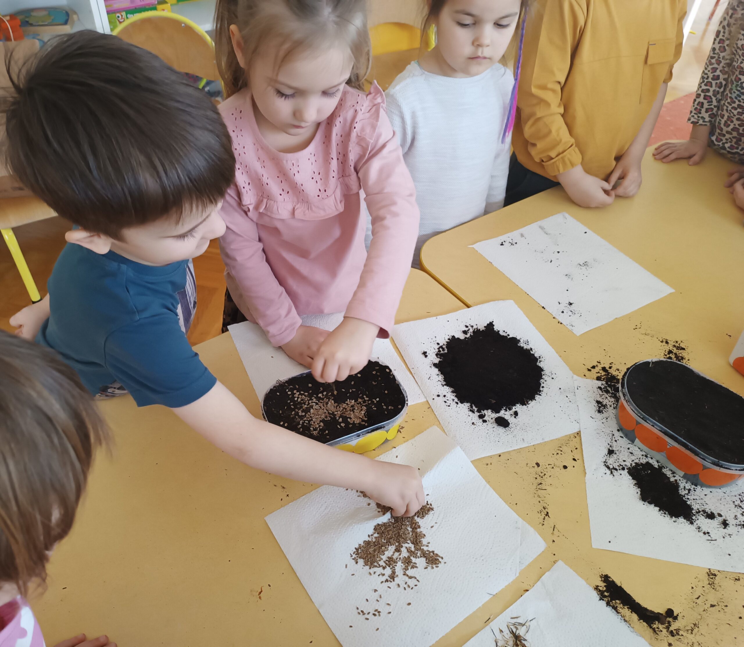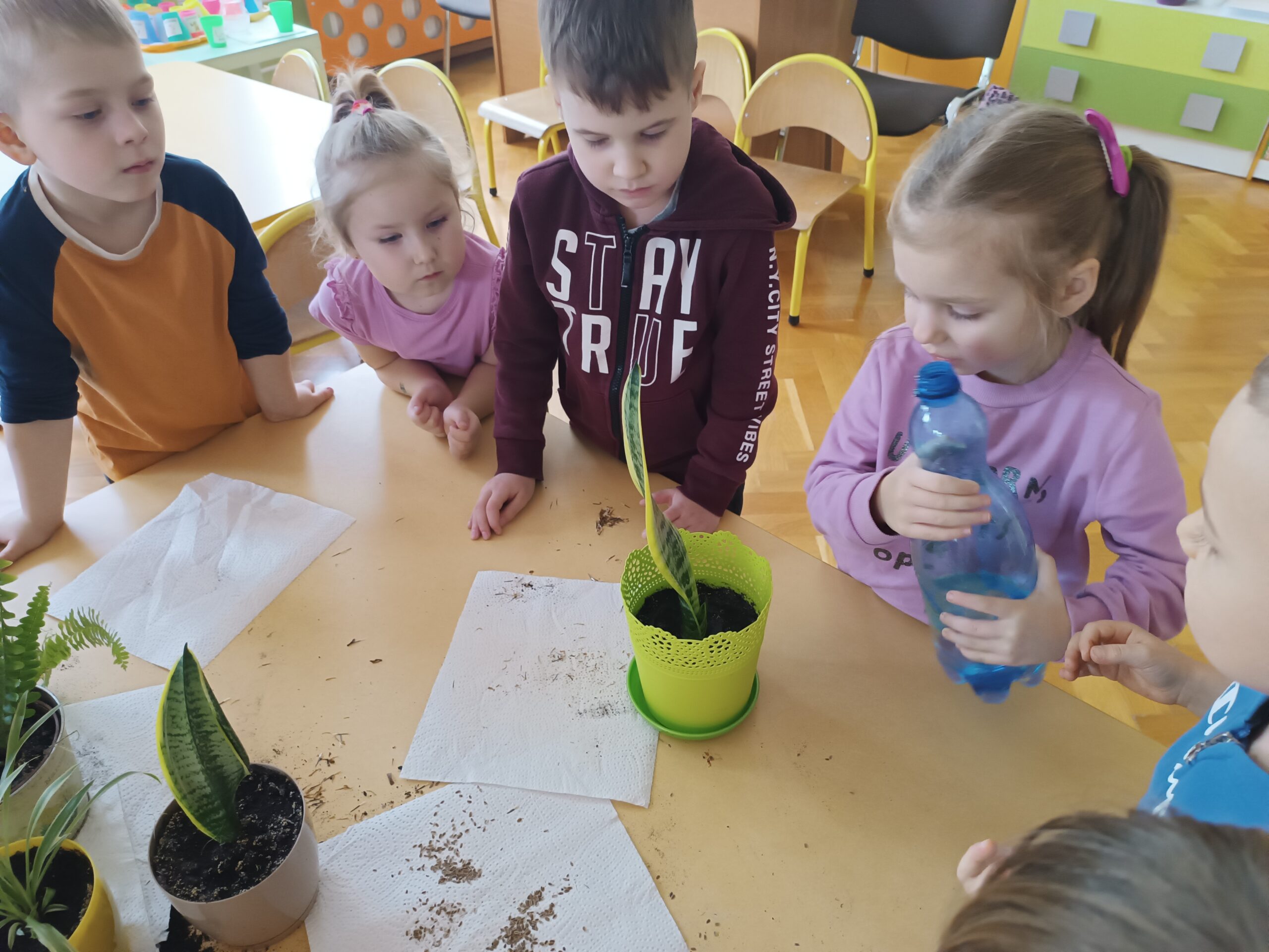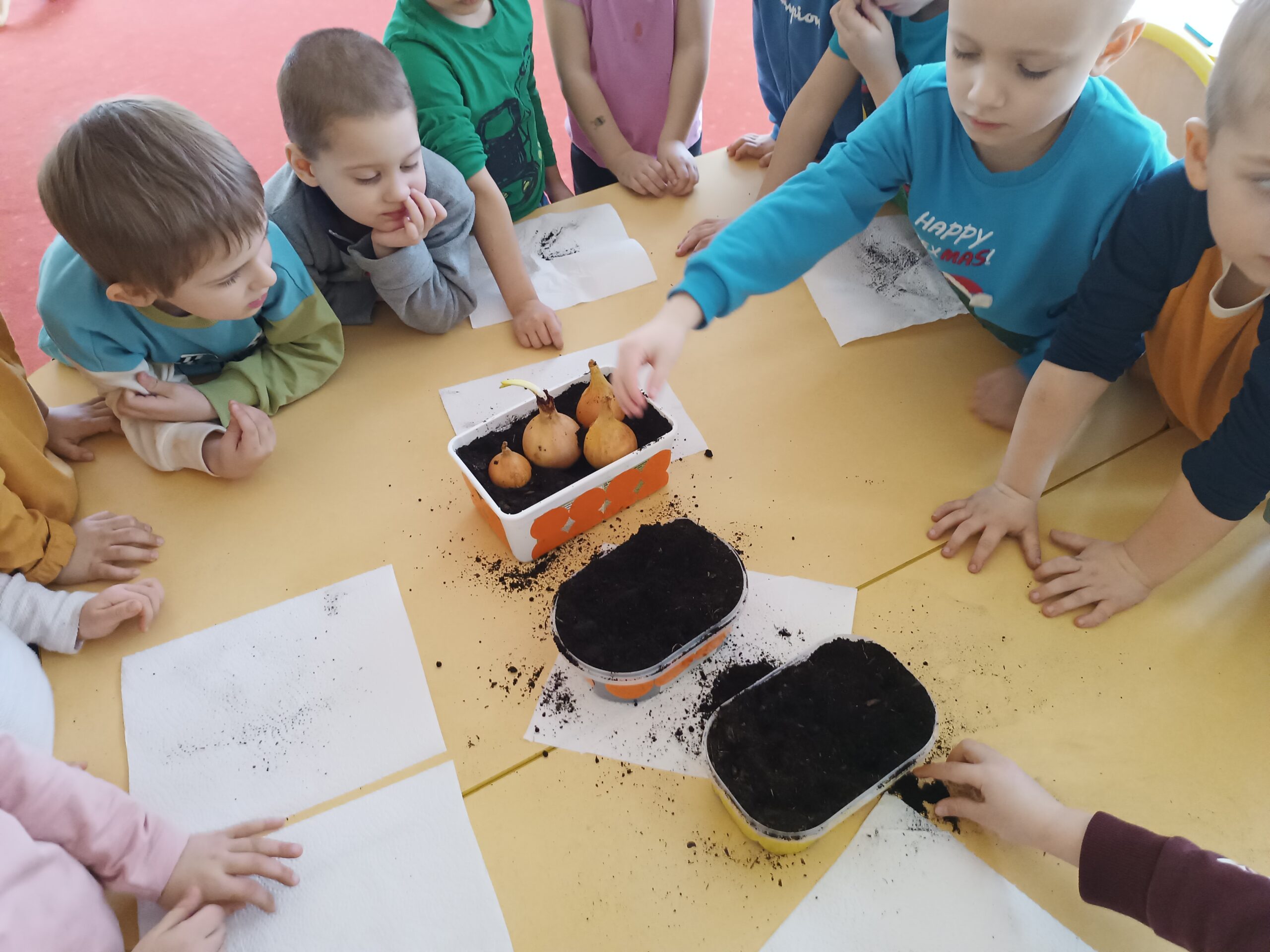 Chcąc przyspieszyć przyjście wiosny ,,Kotki” postanowiły założyć zielony ogródek. Zgromadziły potrzebne przybory, ziemię, sadzonki i nasionka. Przed przystąpieniem do pracy poznały warunki potrzebne roślinom do wzrostu. Po posadzeniu, zasianiu i podlaniu rośliny zostały umieszczone w kąciku przyrody, a dzieci muszą pamiętać o ich podlewaniu oraz obserwować ich wzrost.