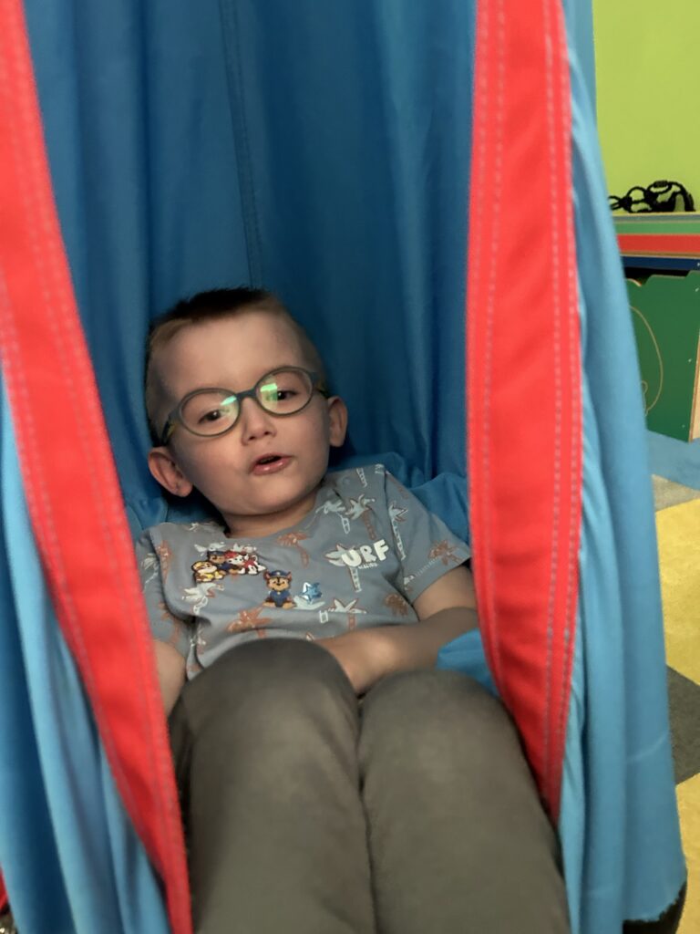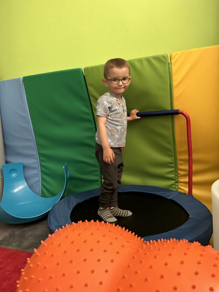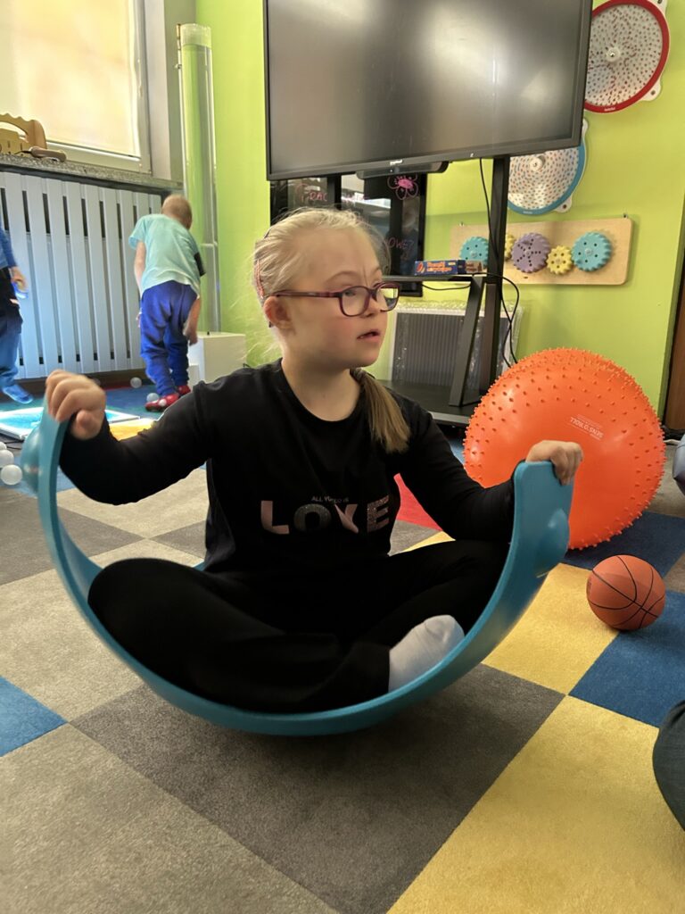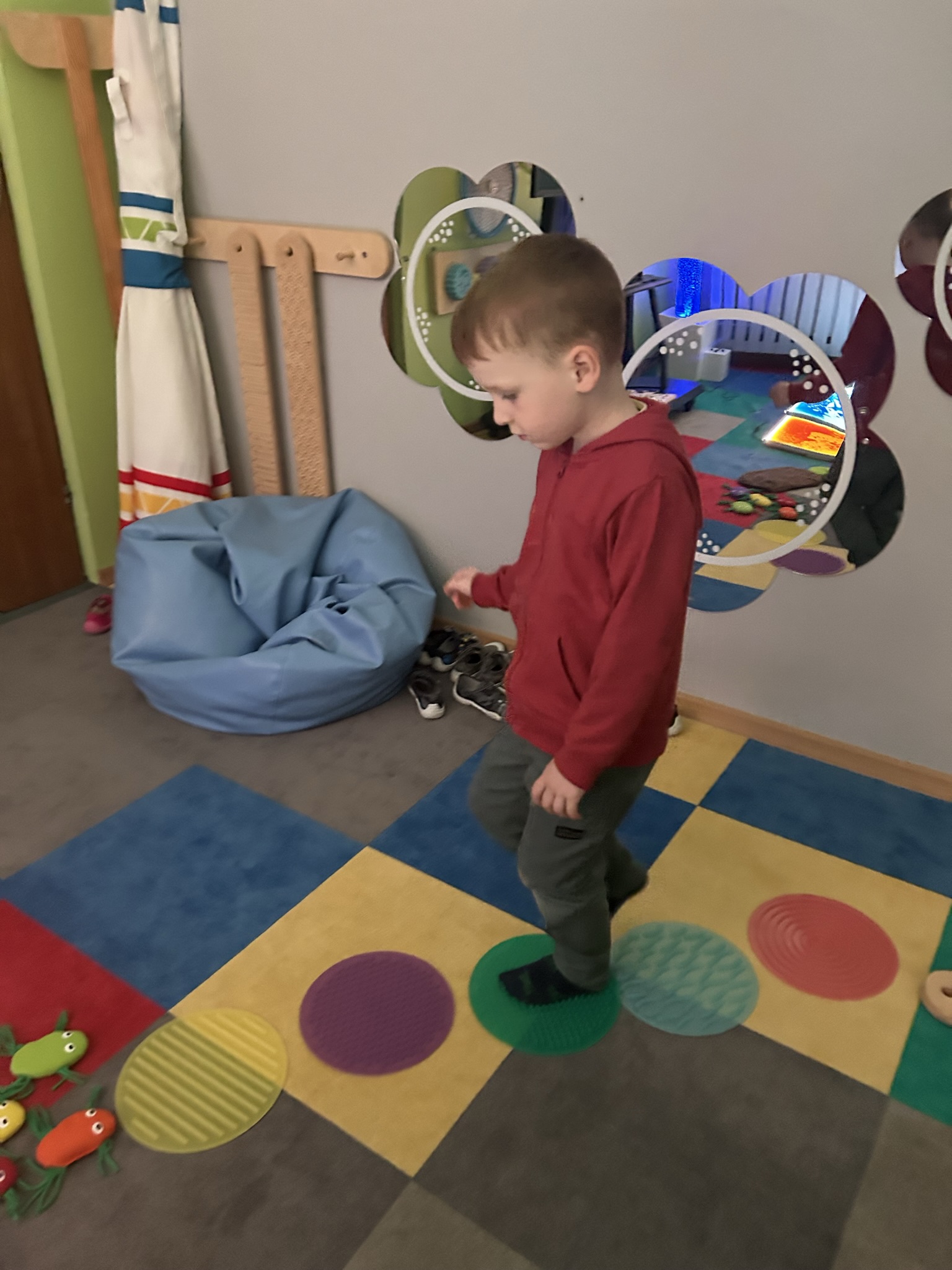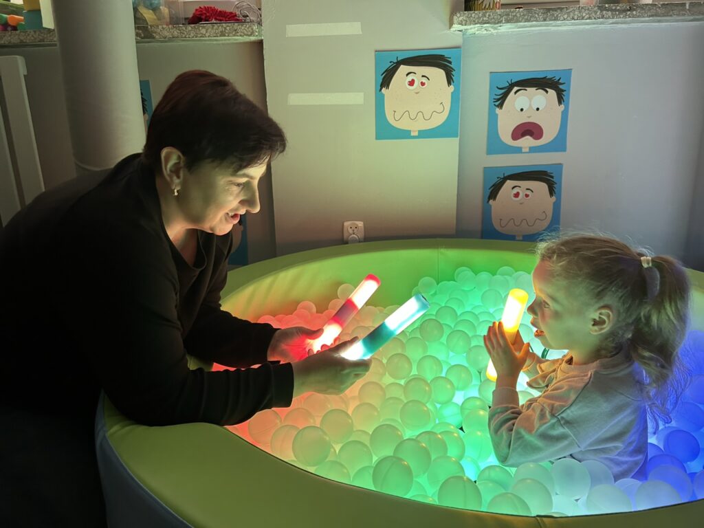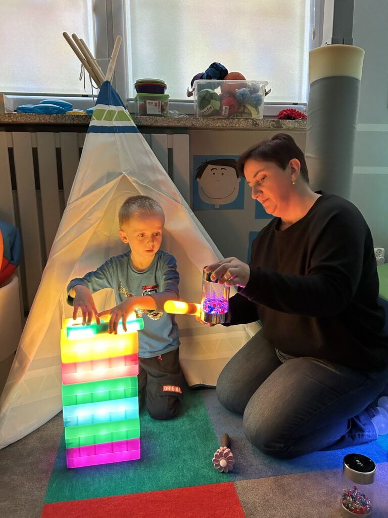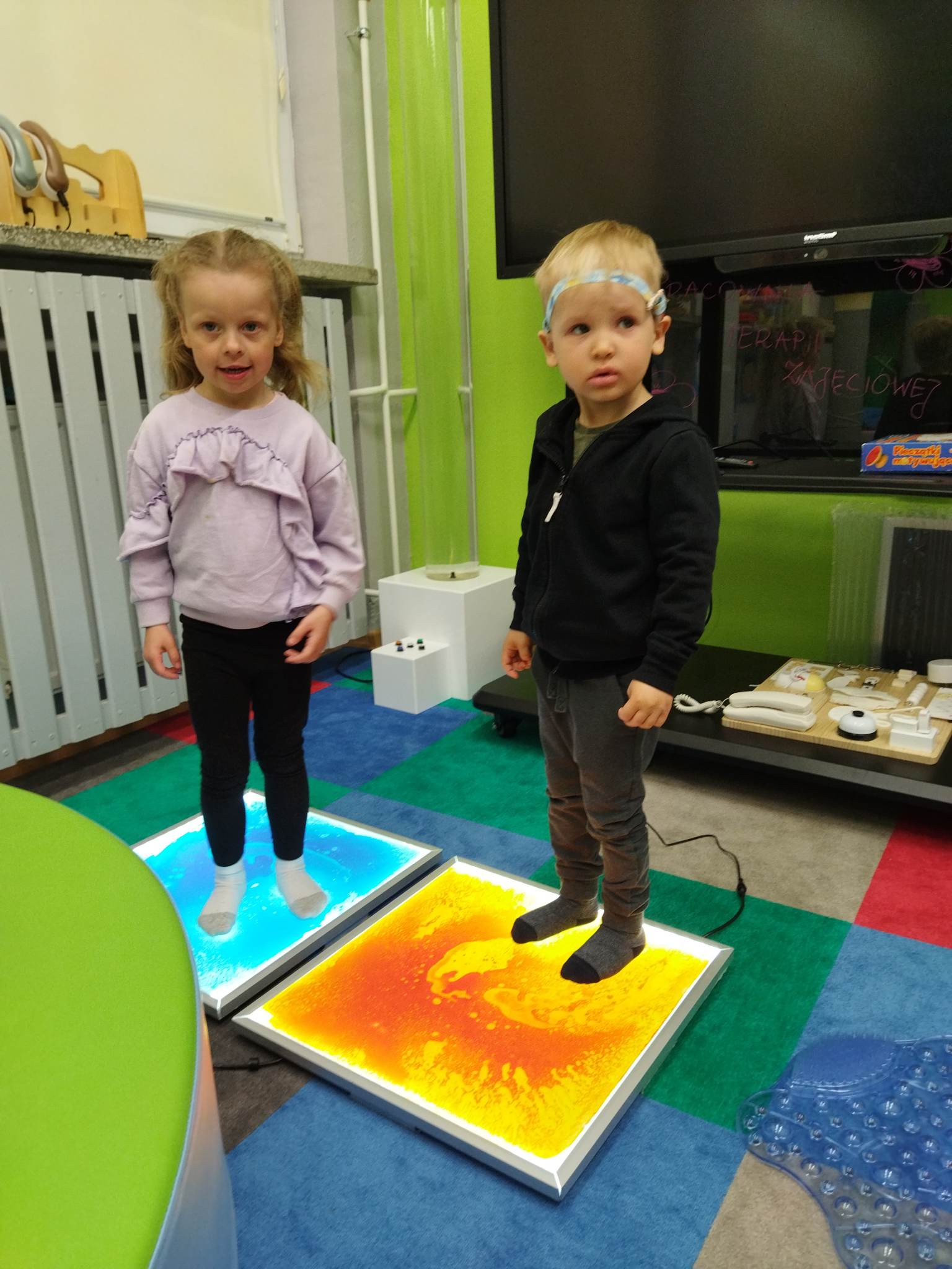 Ścieżka sensoryczna, masażyki, dyski do balansowania, huśtawki podwieszane, terapia światłem- to tylko niektóre elementy wykorzystane podczas zajęć rozwijających i usprawniających sferę społeczną i emocjonalną naszych milusińskich. Dzisiejsze spotkanie było pełne niespodzianek dla dzieci. Wszystkie wykonane ćwiczenia przyczyniły się do zredukowania napięcia, nie tylko mięśniowego, ale również emocjonalnego.