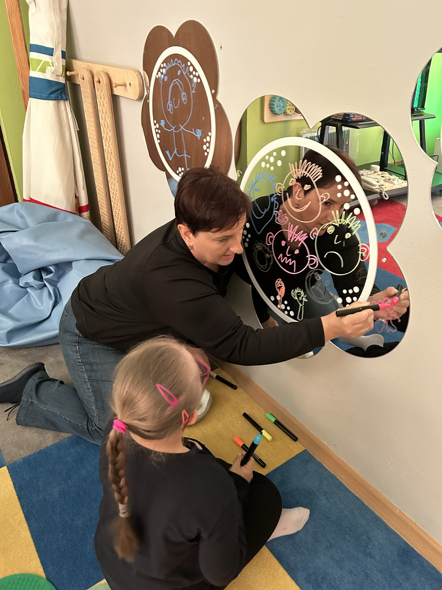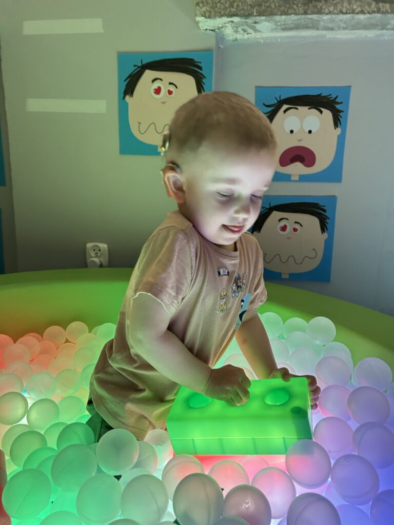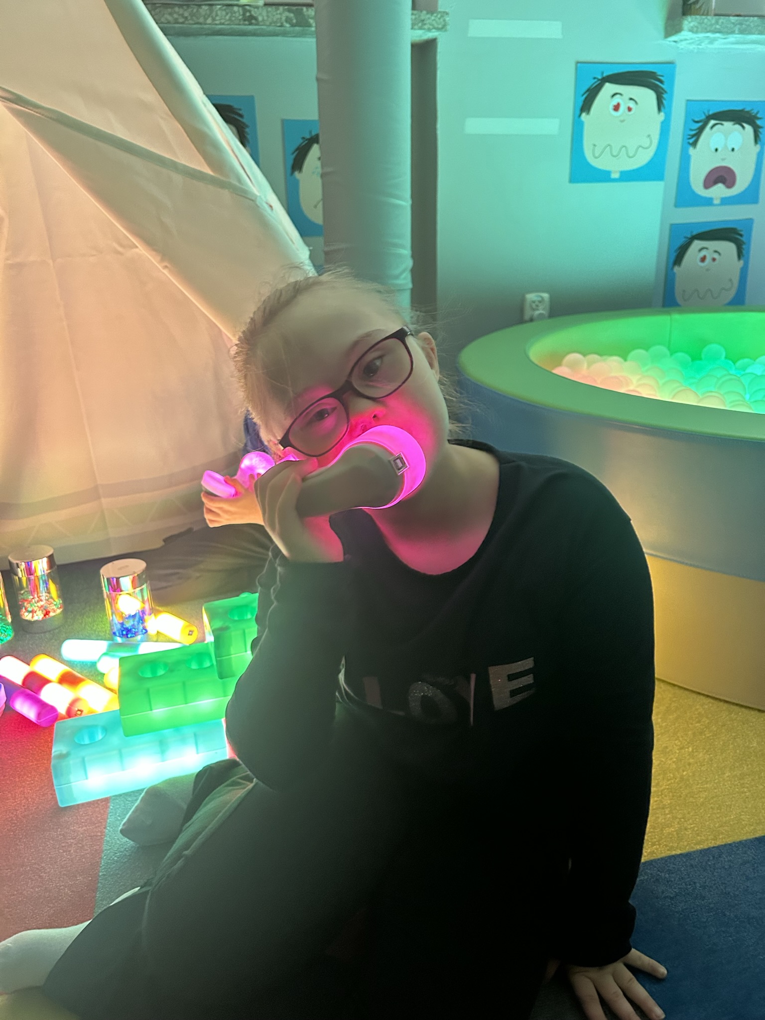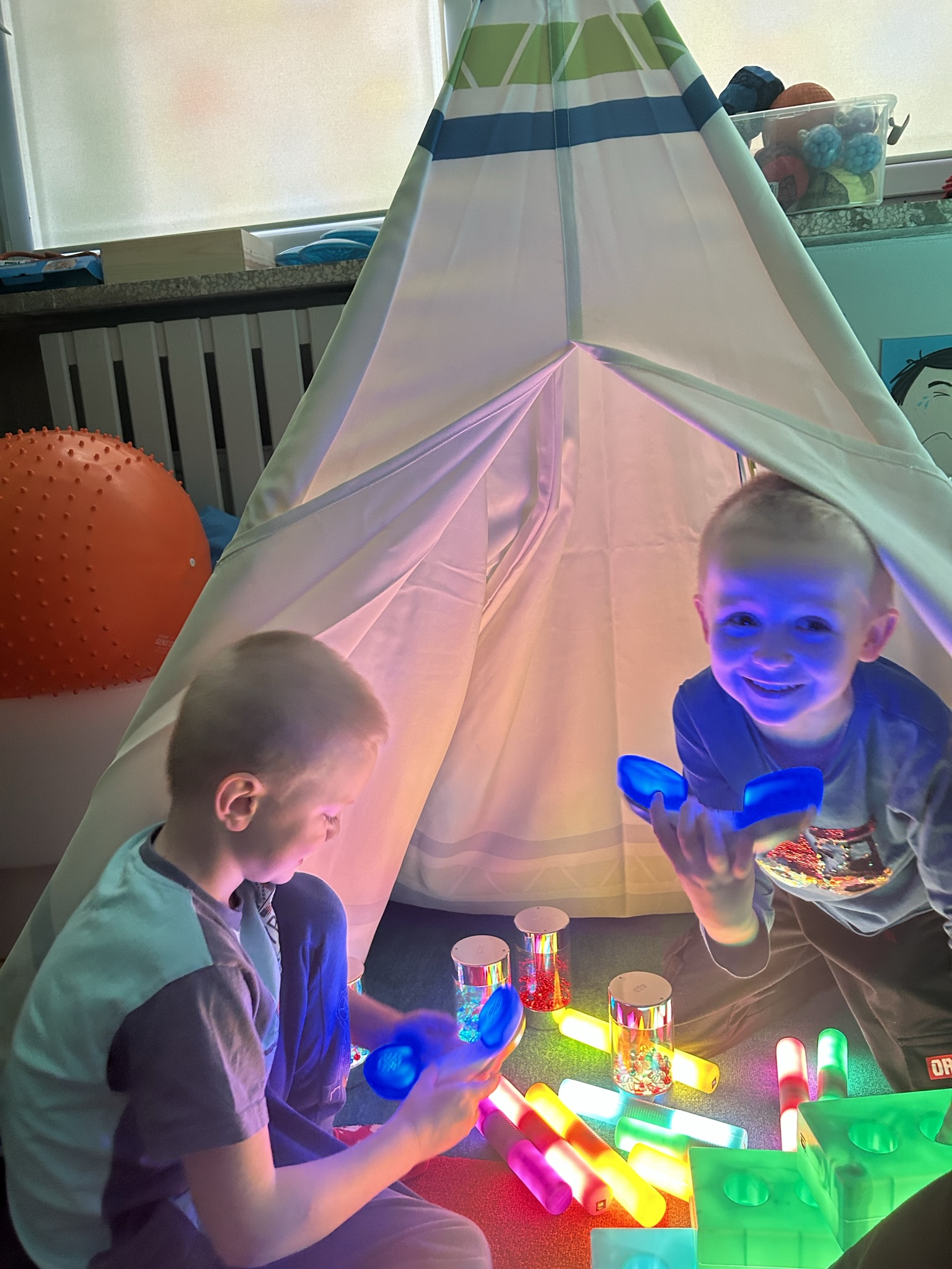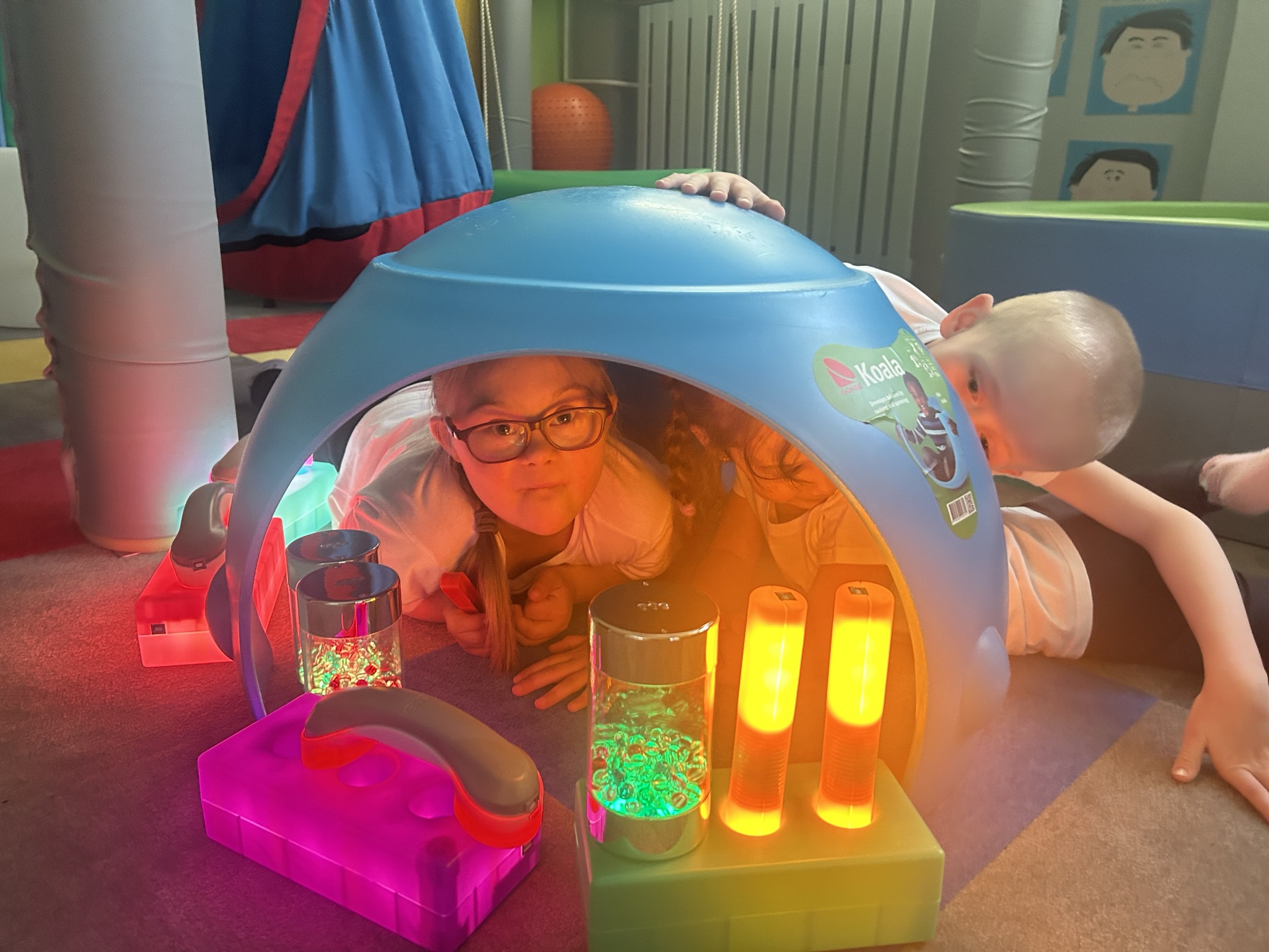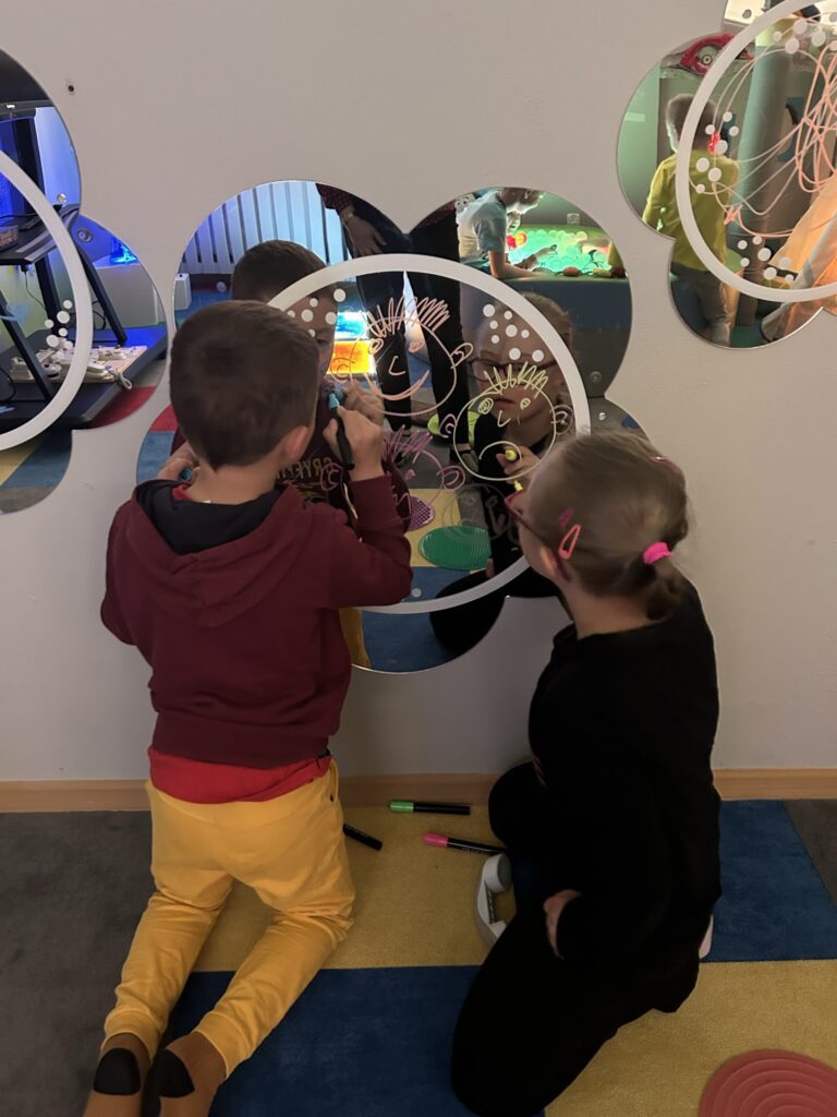 Ścieżka sensoryczna, masażyki, dyski do balansowania, huśtawki podwieszane, terapia światłem- to tylko niektóre elementy wykorzystane podczas zajęć rozwijających i usprawniających sferę społeczną i emocjonalną naszych milusińskich. Dzisiejsze spotkanie było pełne niespodzianek dla dzieci. Wszystkie wykonane ćwiczenia przyczyniły się do zredukowania napięcia, nie tylko mięśniowego, ale również emocjonalnego.