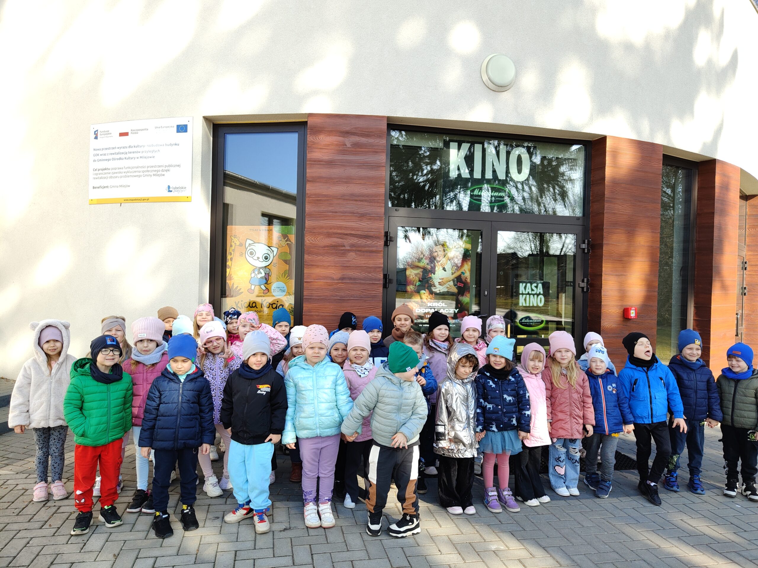 Grupa „Pszczółki” razem ze starszymi kolegami z grupy „Motylki” wybrała się na wycieczkę do kina Milenium w Milejowie. Dzieci obejrzały film „Miś Bamse i sekret morza”. Jest to kolejna część przygód misia Bamse’go, pokochanego przez dzieci na całym świecie. Miś wraz z przyjaciółmi wygrał walkę ze złym kapitanem Busterem oraz uratował wielką rybę uwięzioną w śmieciach na dnie oceanu. Fabuła filmu i jego proekologiczne przesłanie wpisują się w realizację projektu transgranicznego „Łęczna-Kowel – współpraca korzystna dla klimatu”.