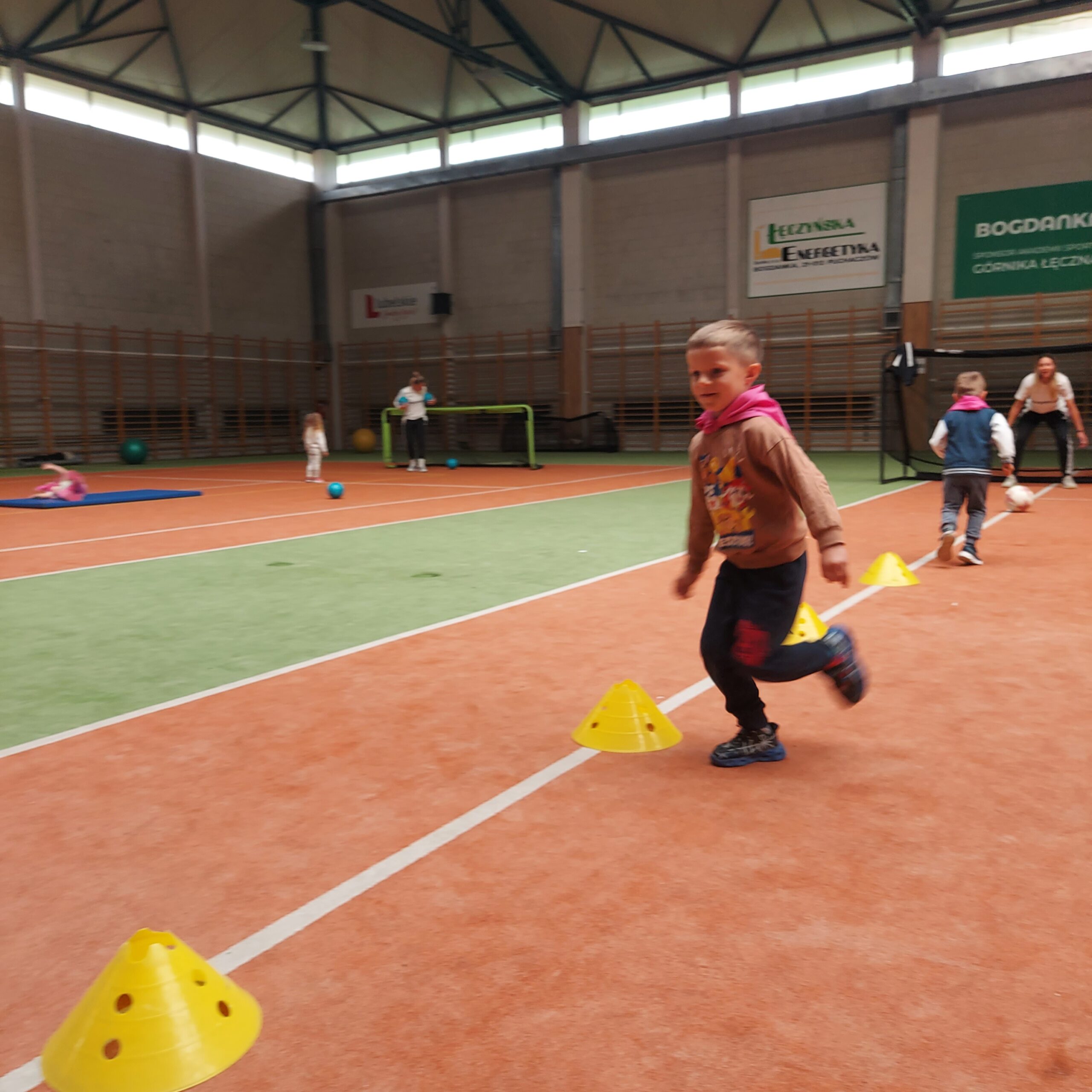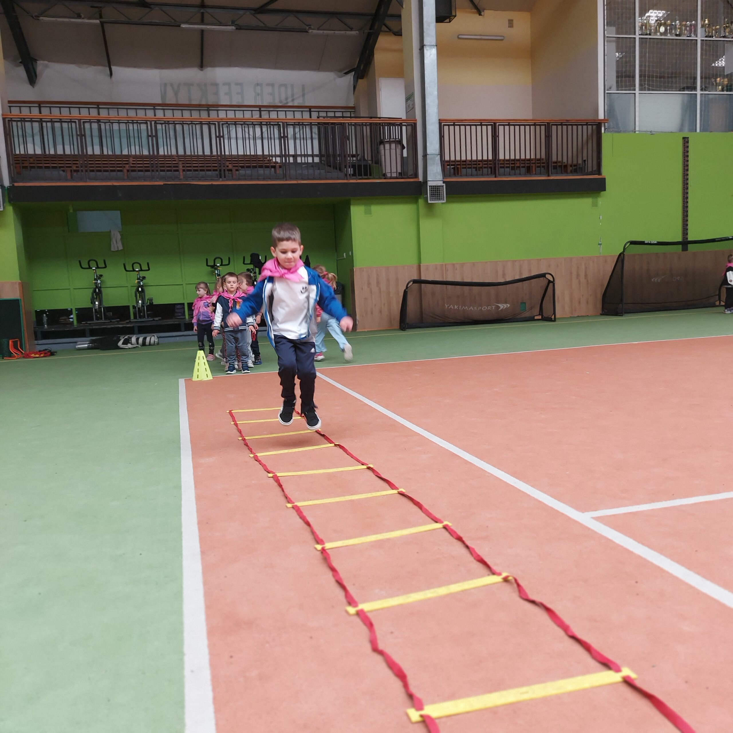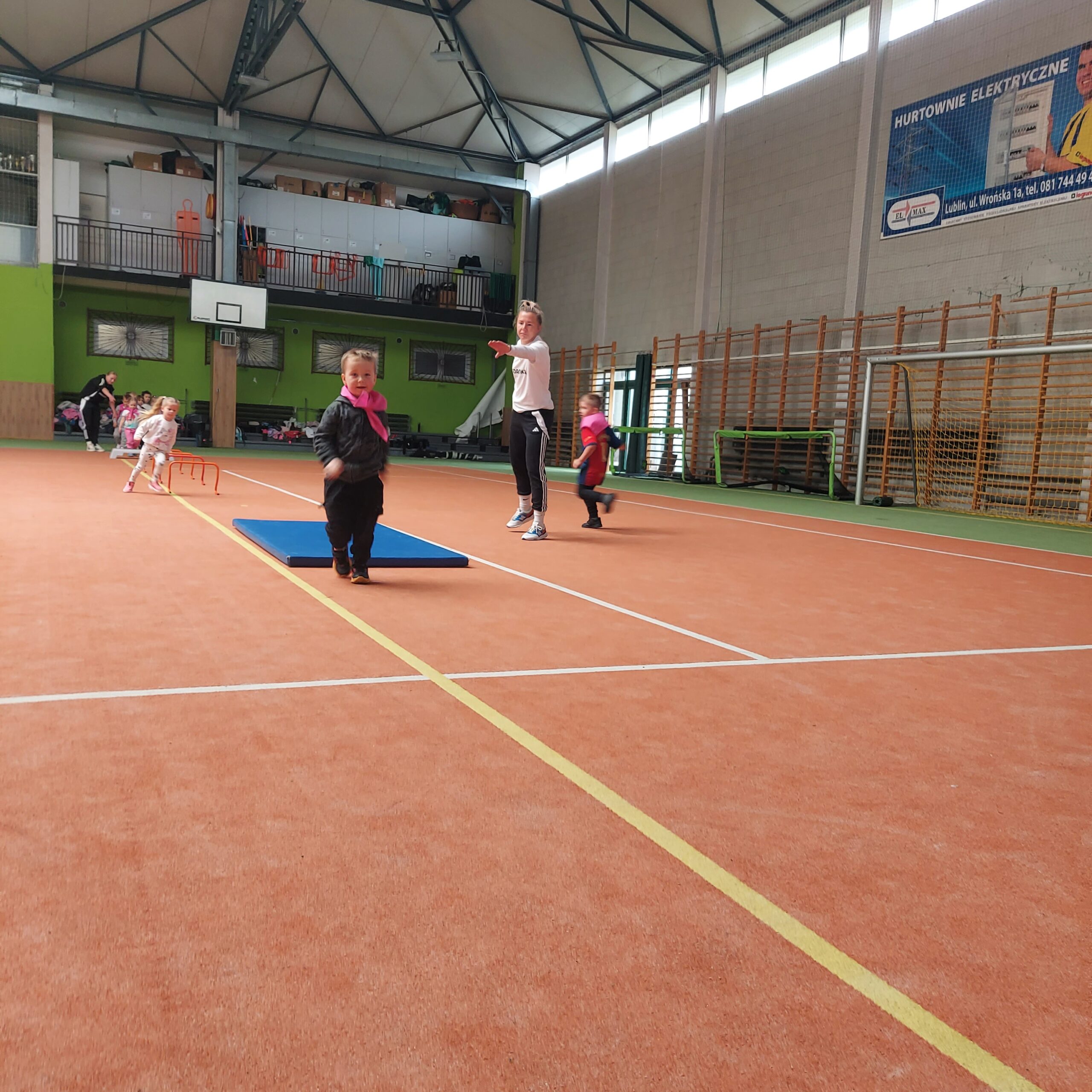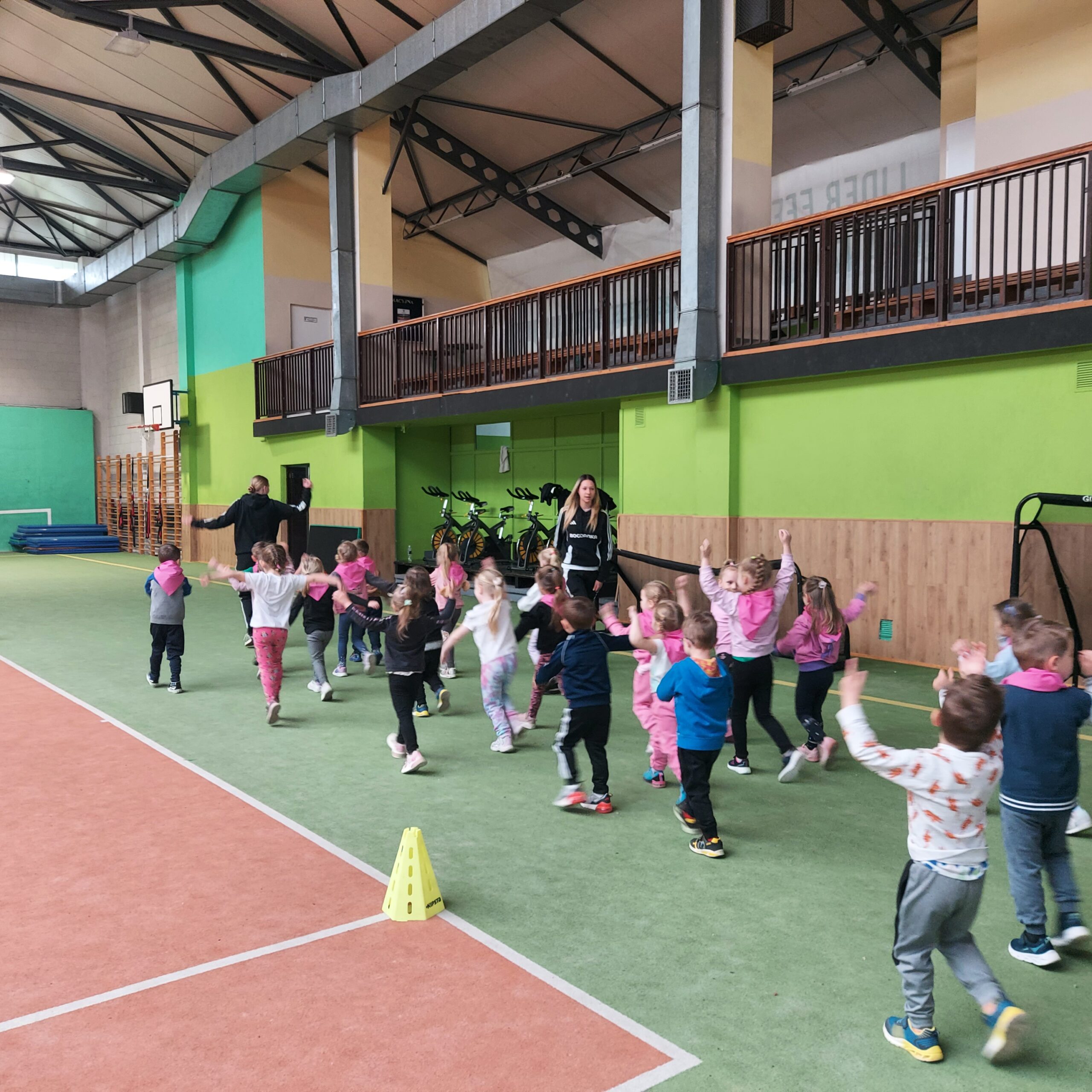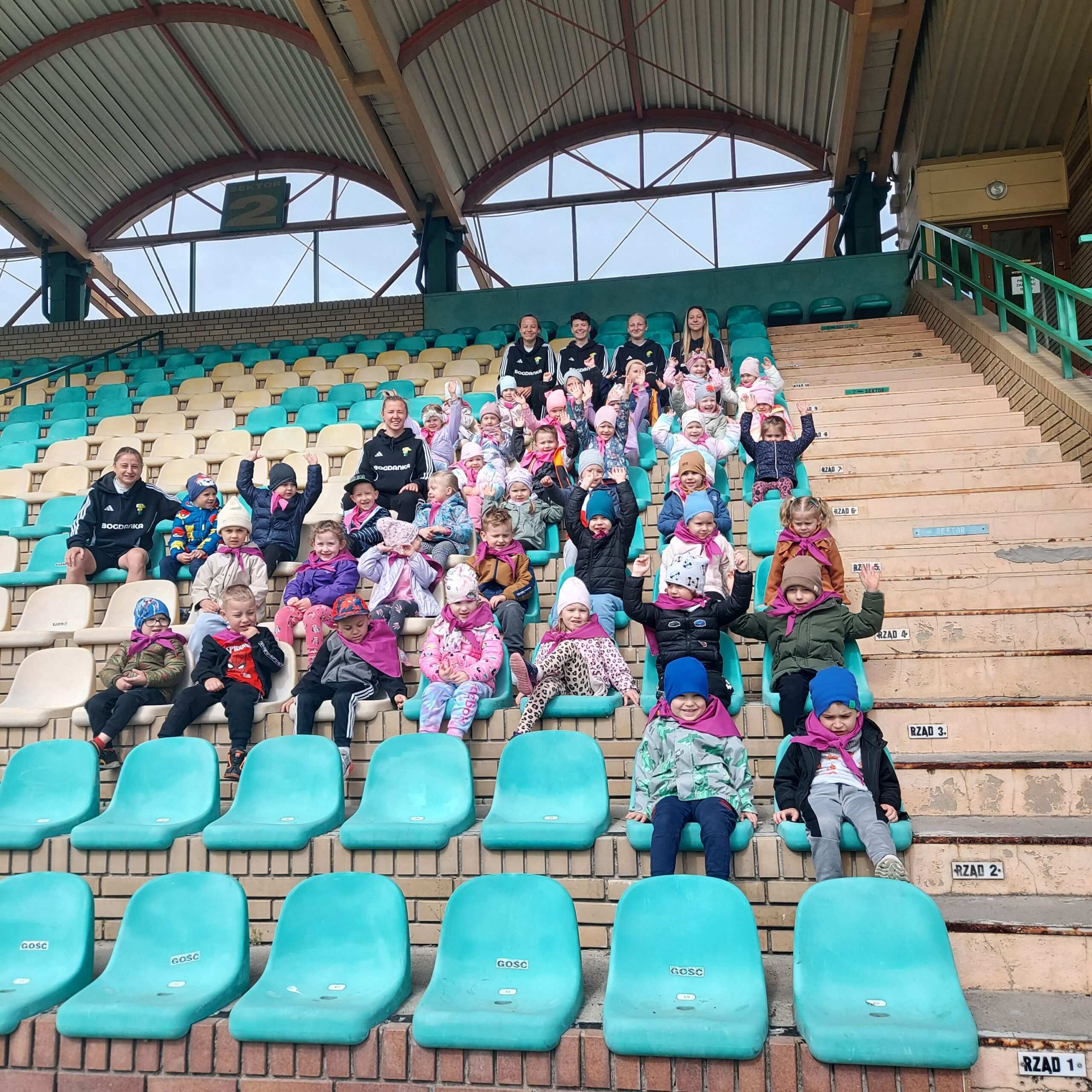 Grupy Motylki i Sowy odwiedziły stadion miejski w Łęcznej. Przedszkolaki zwiedziły szatnie zawodników, murawę, trybuny oraz miejsca dla zawodników rezerwowych. Następnie w hali sportowej wzięły udział we wspólnej rozgrzewce, po której czekały na nie tory przeszkód.
