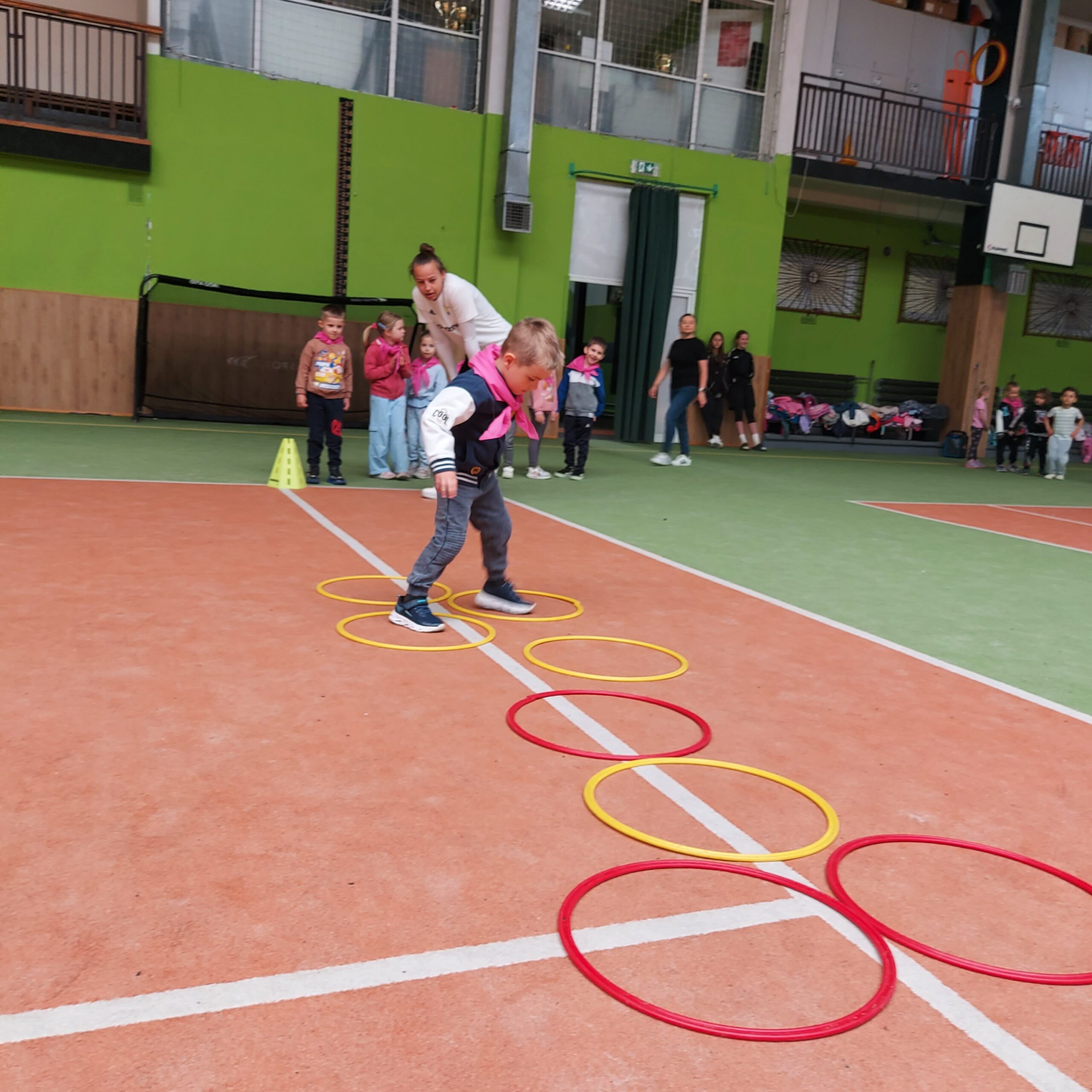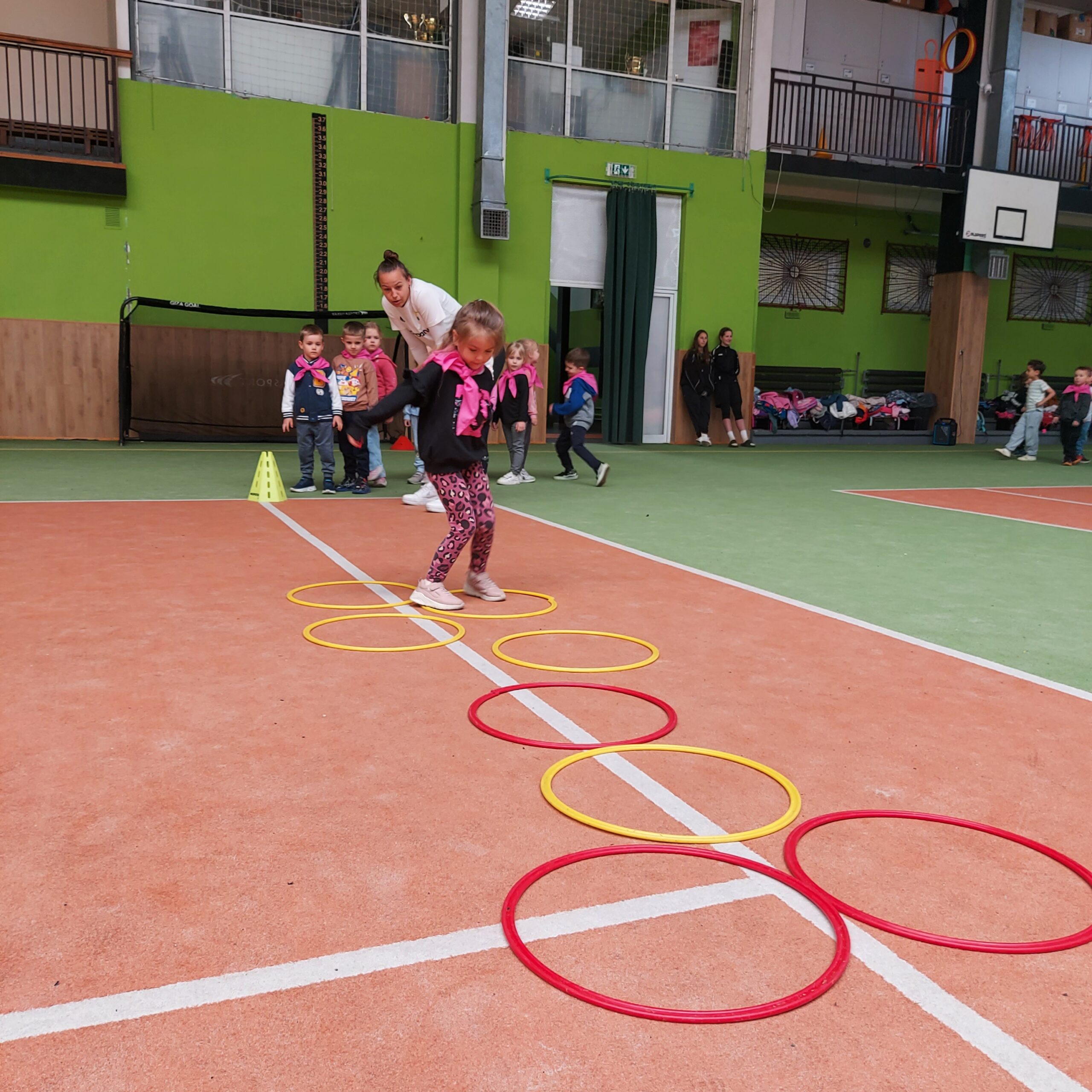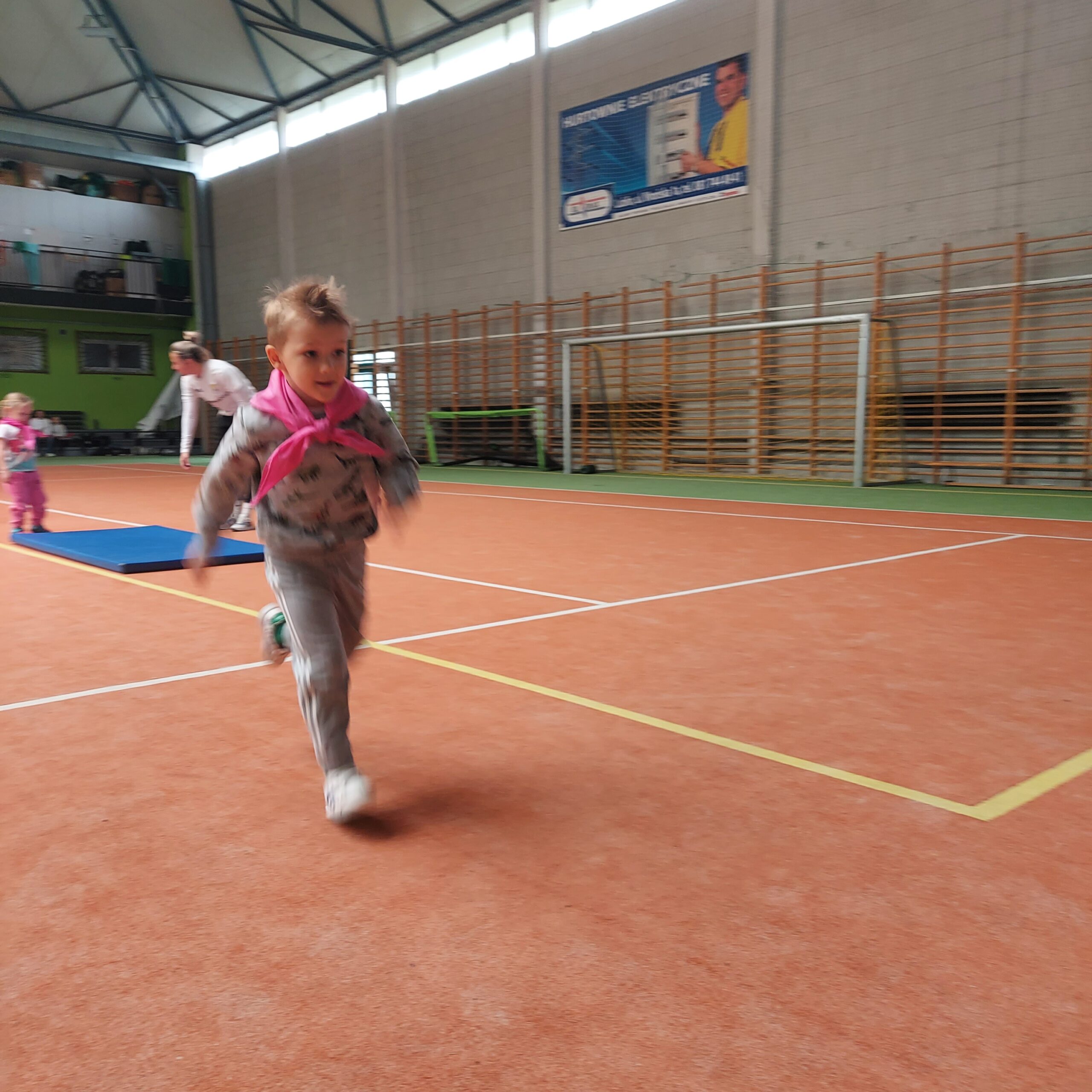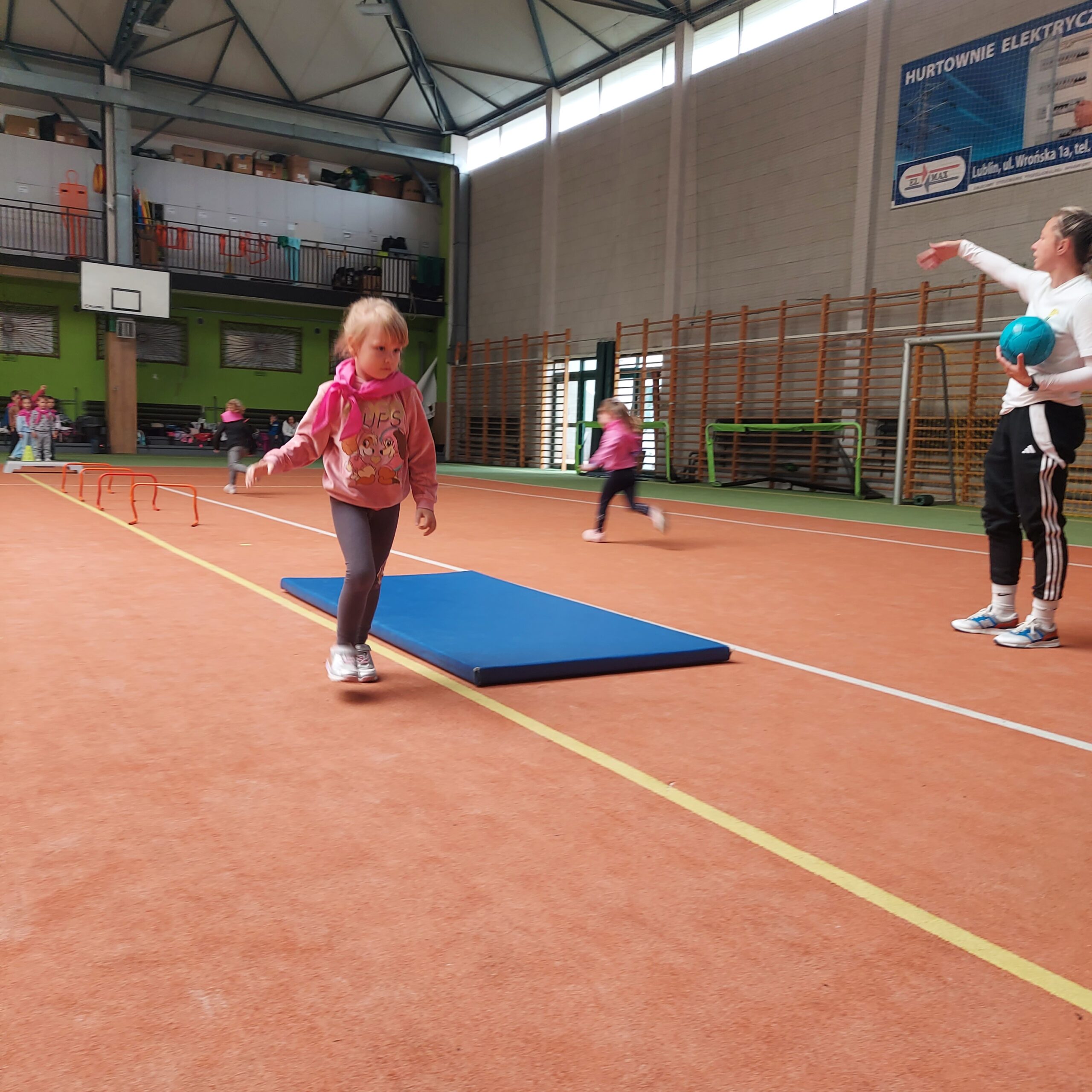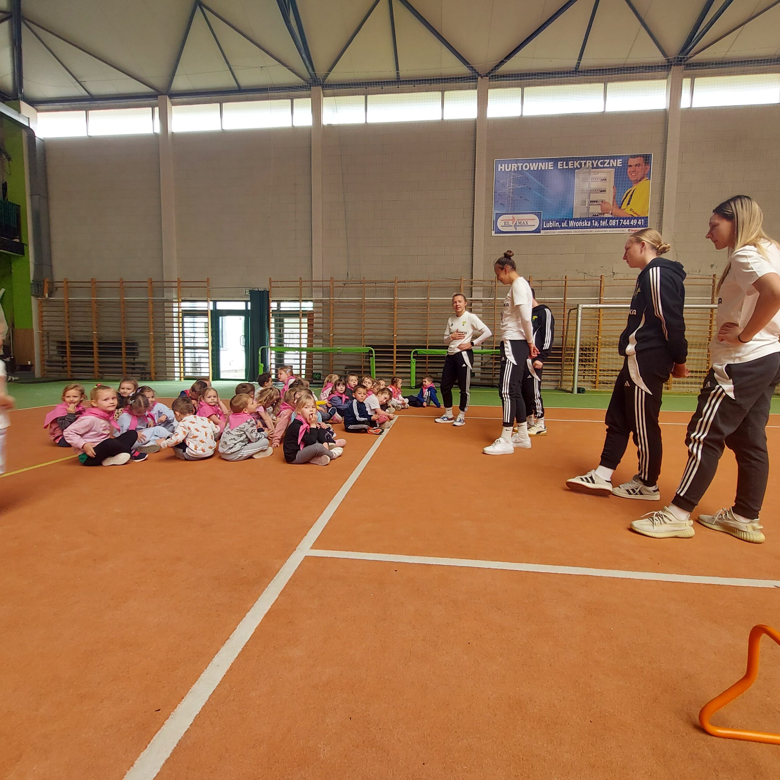 Grupy Motylki i Sowy odwiedziły stadion miejski w Łęcznej. Przedszkolaki zwiedziły szatnie zawodników, murawę, trybuny oraz miejsca dla zawodników rezerwowych. Następnie w hali sportowej wzięły udział we wspólnej rozgrzewce, po której czekały na nie tory przeszkód.