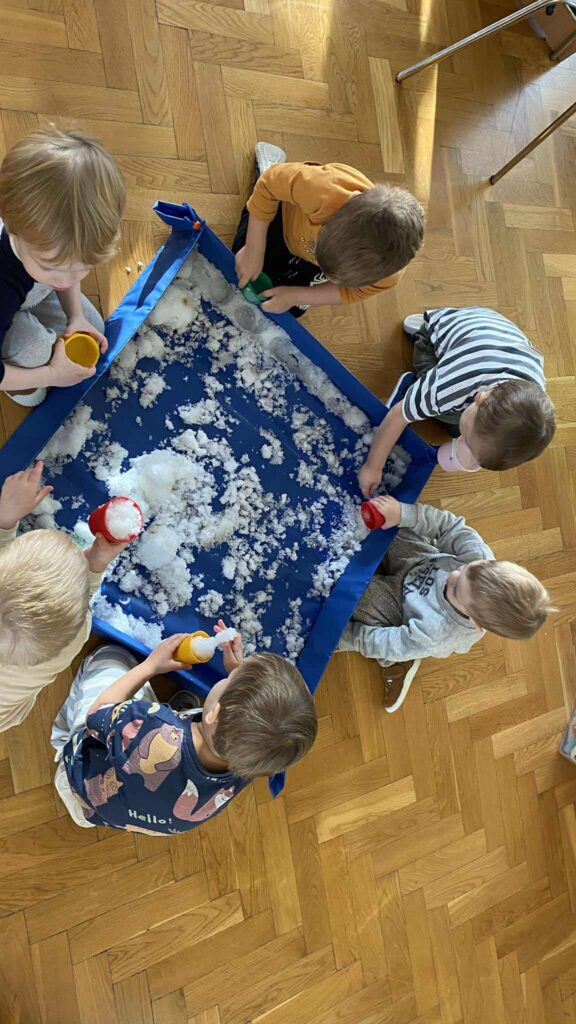 Podczas zajęć badaliśmy właściwości lodu, sprawdzaliśmy, czy każdy płatek śniegu jest taki sam, i dowiedzieliśmy się, jak dbać o zdrowie, gdy za oknem mróz. Nie zabrakło też radosnych zabaw ruchowych.
