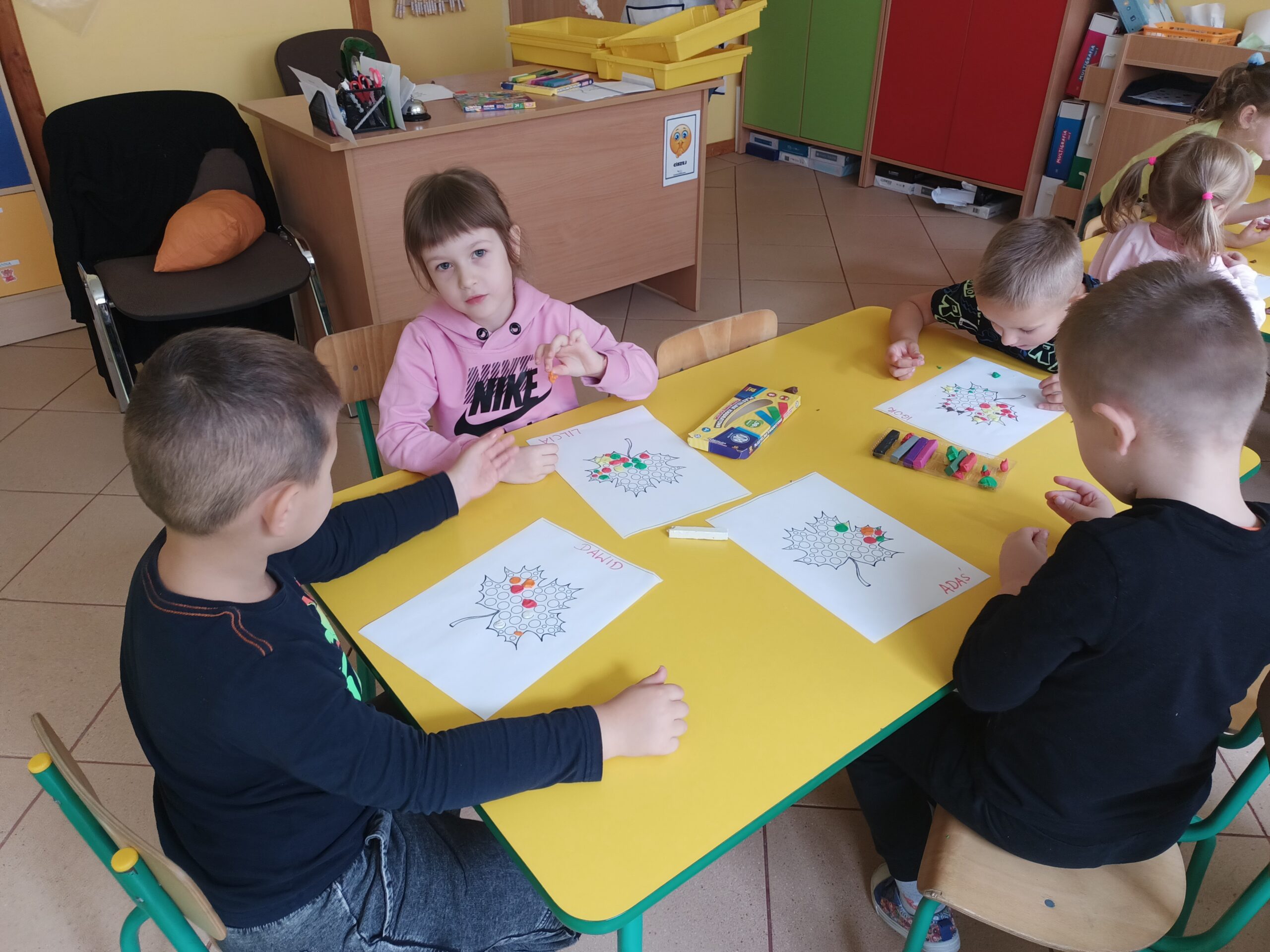 Pierwszy Dzień Jesieni 23 września Misie przywitały jesień. Były gry i zabawy. Przedszkolaki wykonały jesienne liście z plasteliny za które otrzymały odznaki. Odwiedziła nas również pani Jesień, która przyniosła jesienne dary. 25/09/2022 autor: Justyna Soboń 0 Grupa Misie 2022 – 2023