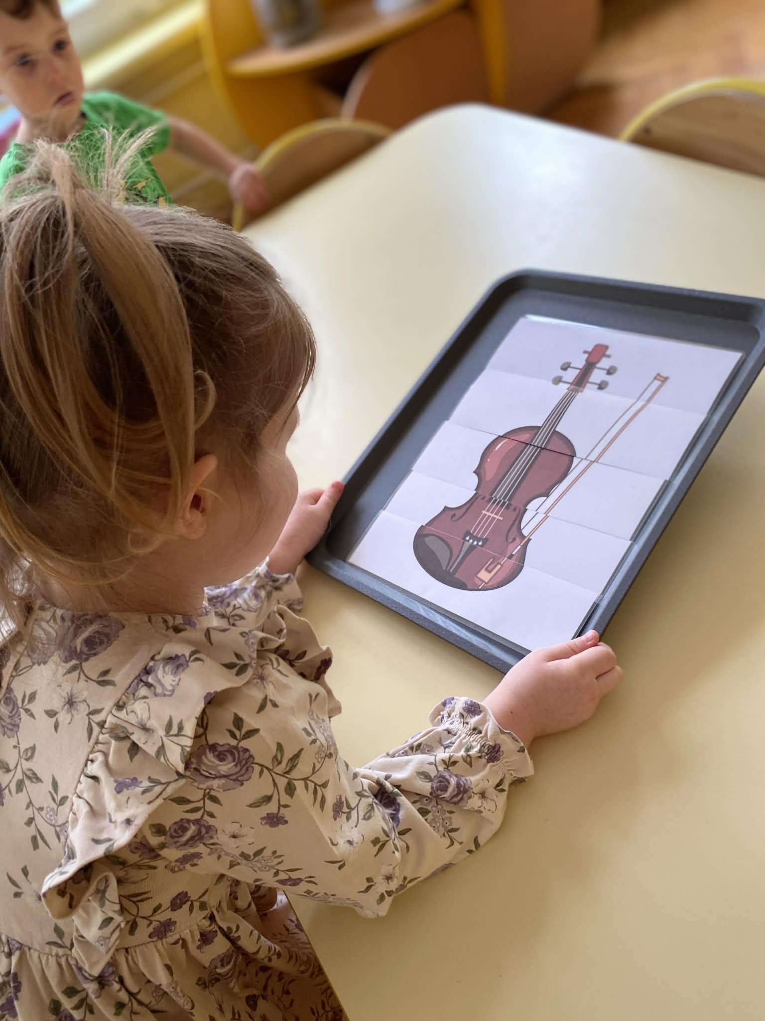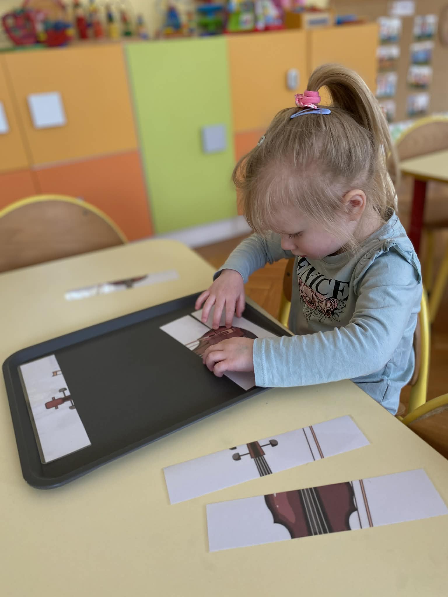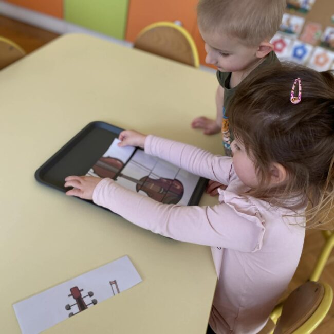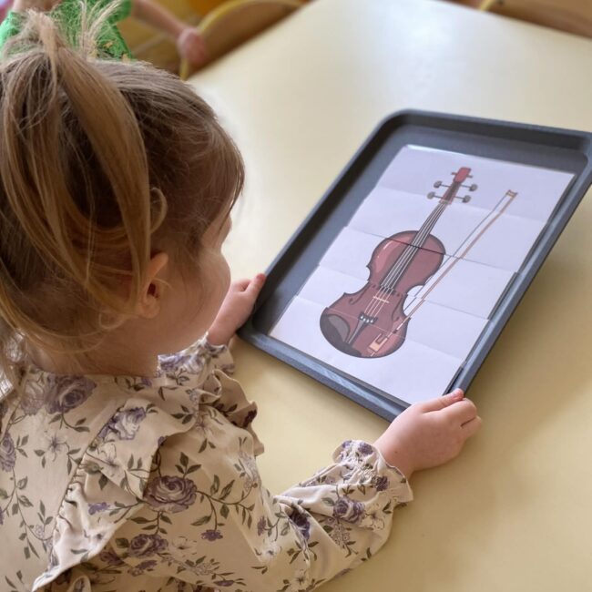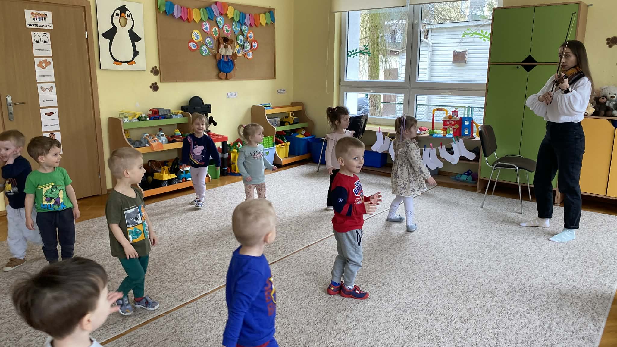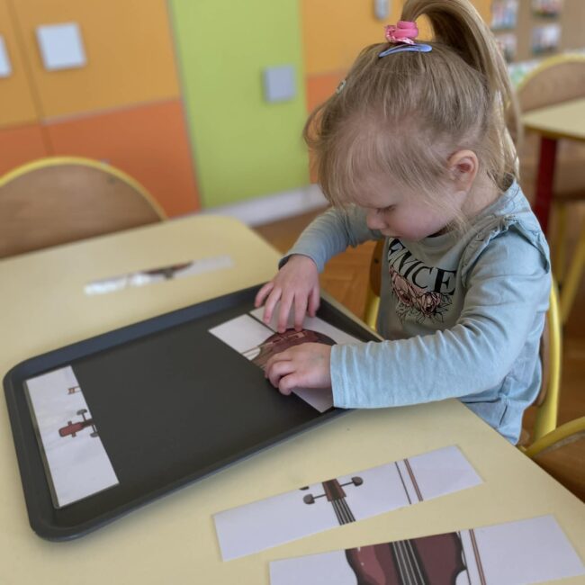Naszą grupę odwiedziła wyjątkowa osoba – mama Miłosza, która podzieliła się z nami swoją wielką pasją, jaką jest gra na skrzypcach. Przedszkolaki miały okazję z bliska obejrzeć instrument, poznać jego budowę oraz posłuchać przepięknych melodii. To było niezwykle inspirujące i muzyczne spotkanie