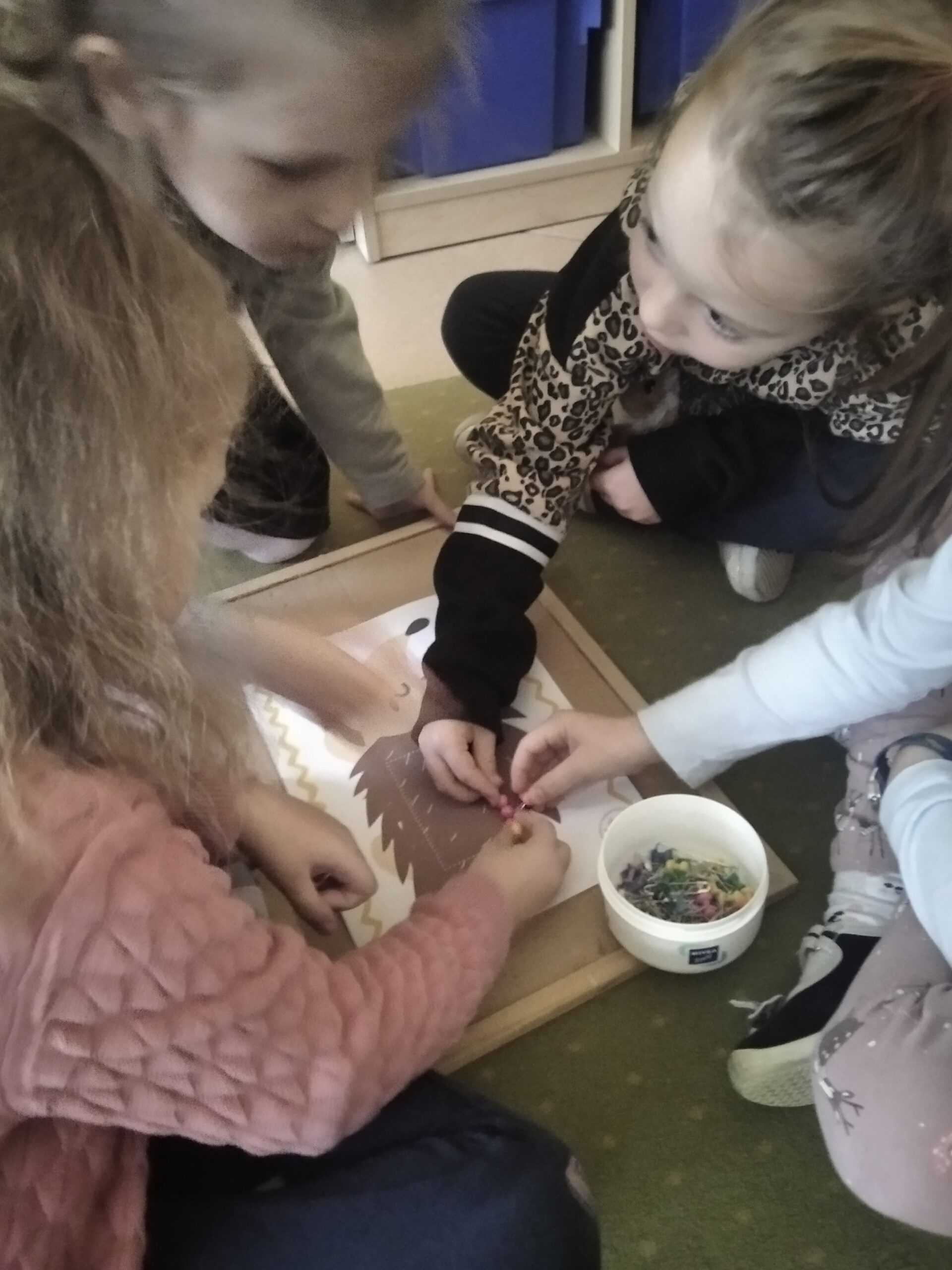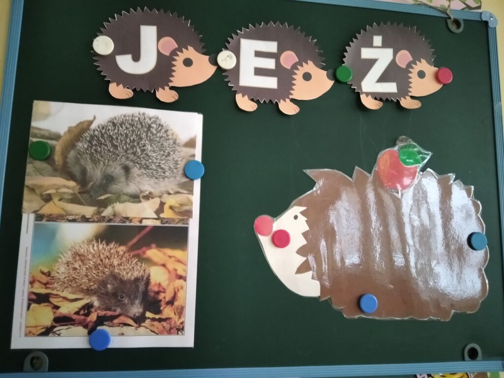 Dzieci z grupy Misie realizując projekt edukacyjny pt. „Przyjaciel zwierząt” miały okazję zapoznać się z Jeżem. Po obejrzeniu filmu edukacyjnego, z którego dowiedziały się wielu ciekawostek o tym zwierzęciu, dzieci przeliczały, segregowały, odwiedziły domek jeżą i wykonały pracę plastyczną. Dzieci były bardzo zadowolone z zajęć
