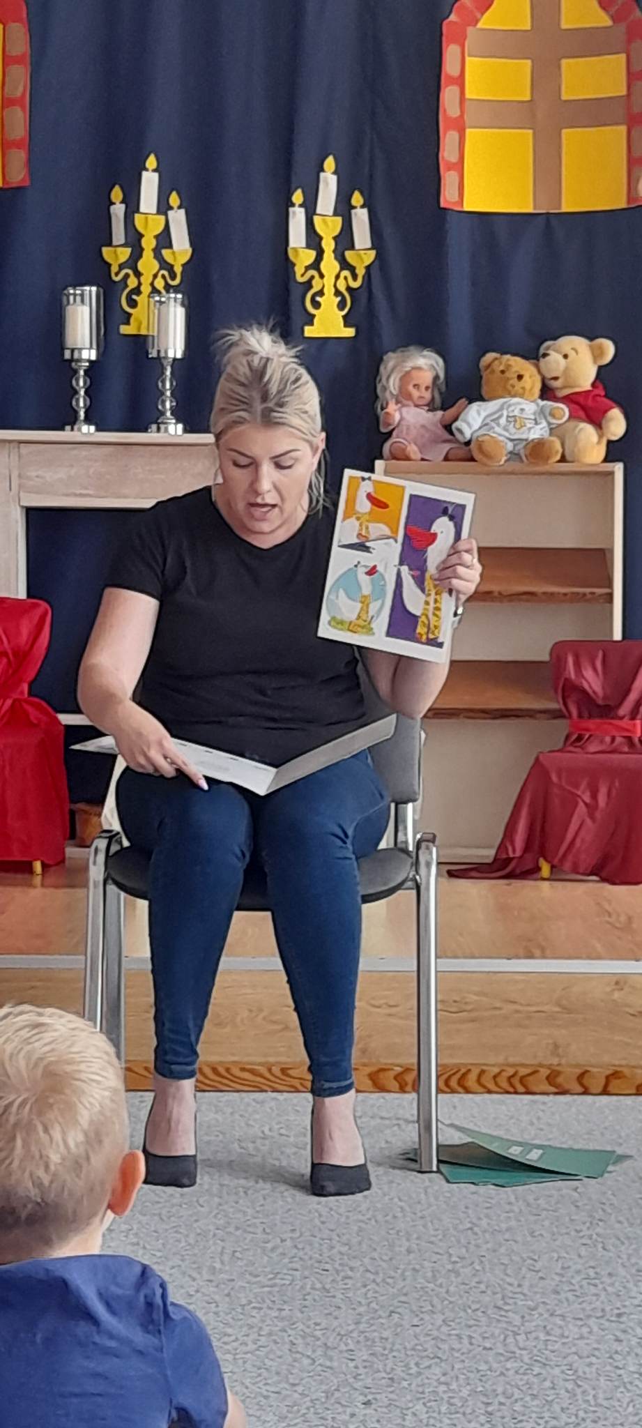 Nauczycielki naszego przedszkola przygotowały spektakl teatralny, na który zaproszeni zostali uczniowie szkół podstawowych z Łęcznej. Celem zorganizowanego spotkania było zachęcenie dzieci do częstego odwiedzania biblioteki i czytania książek oraz przekazanie wartości jakie niesie ze sobą przyjaźń. Dzieci z zainteresowaniem obejrzały przedstawienie, a w ramach wzajemnej współpracy nauczycielki ze szkoły podstawowej przeczytały naszym przedszkolakom znane wiersze rozbudzając zainteresowania czytelnicze naszych przedszkolaków.