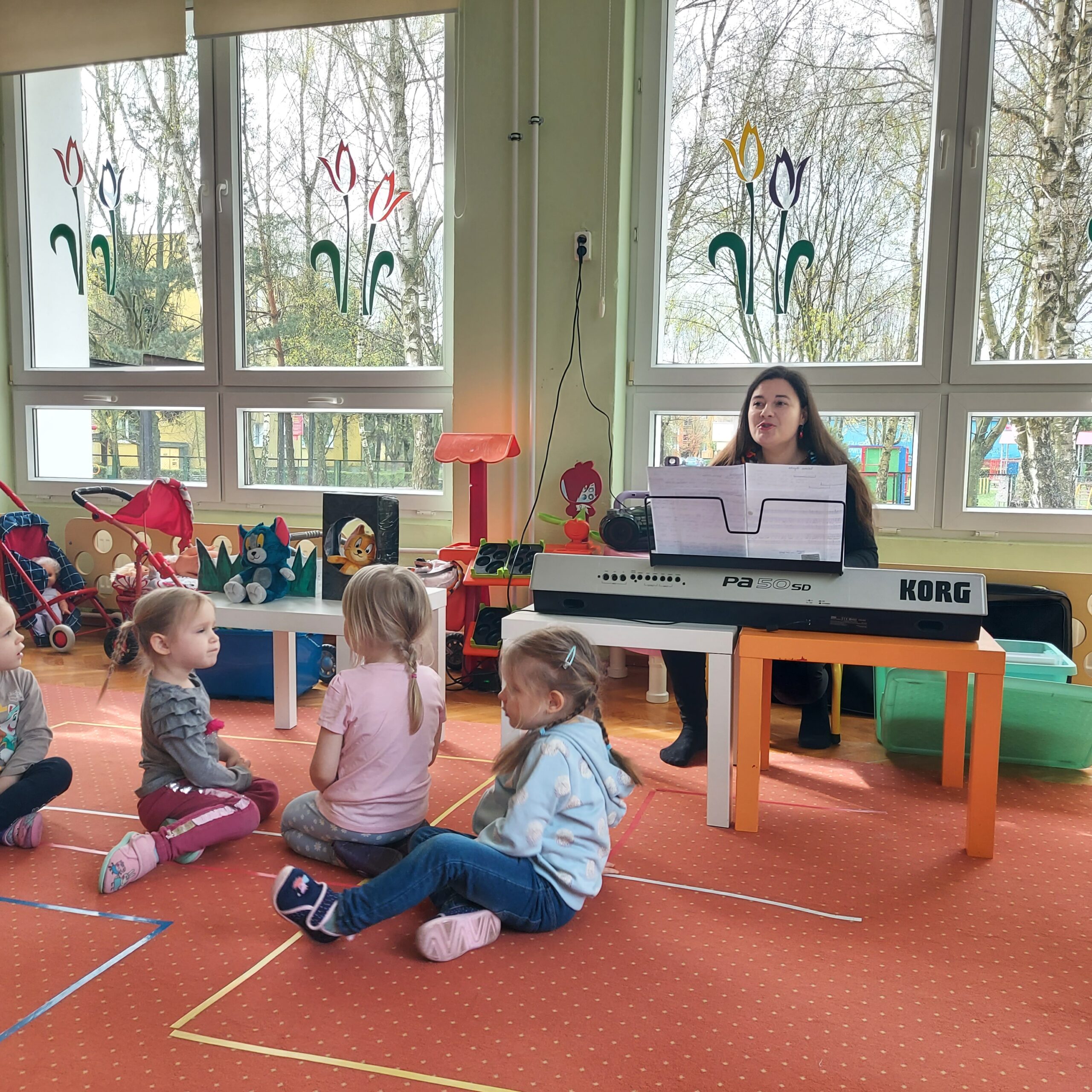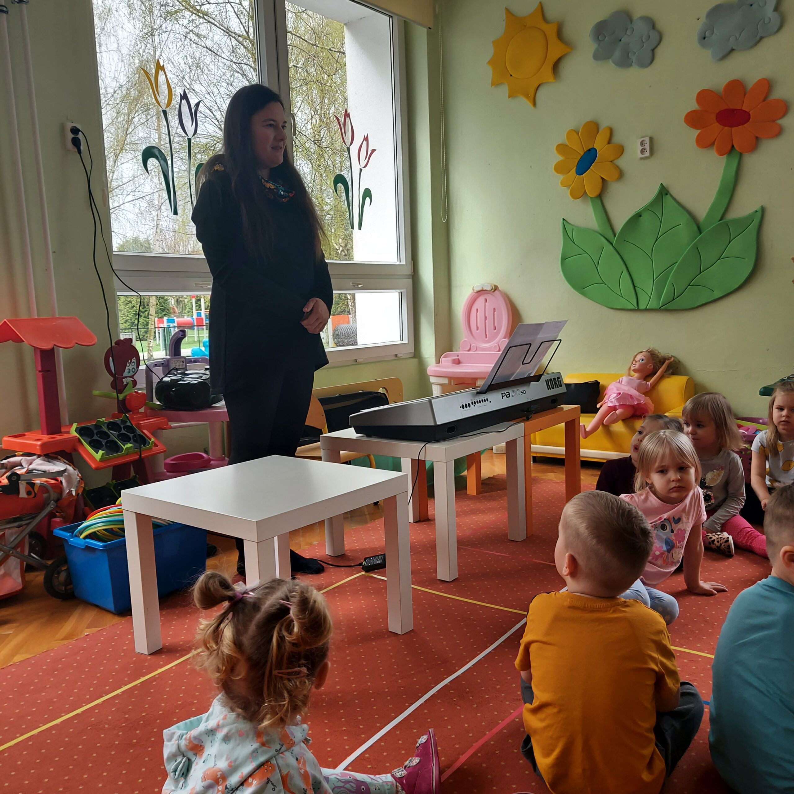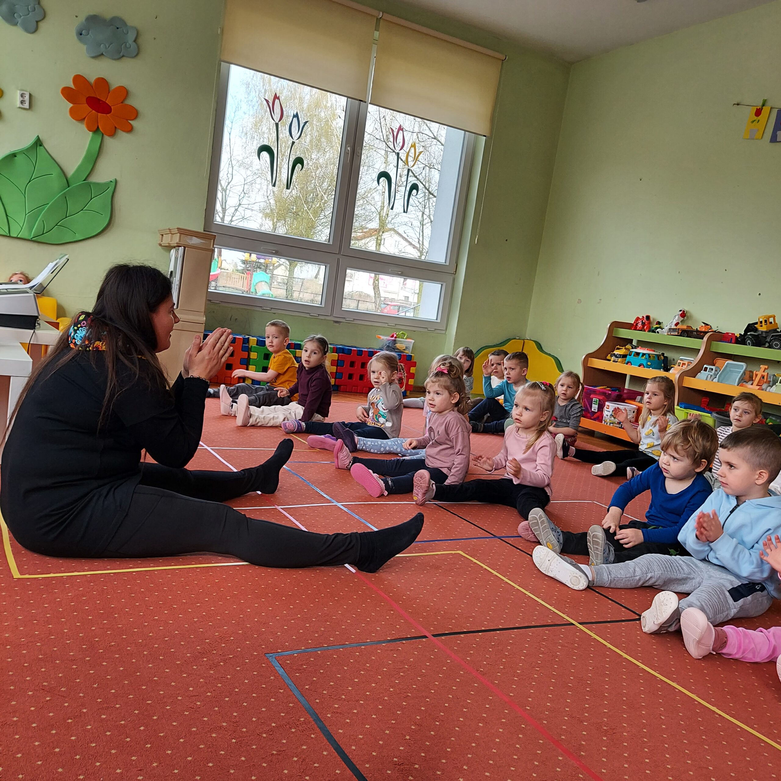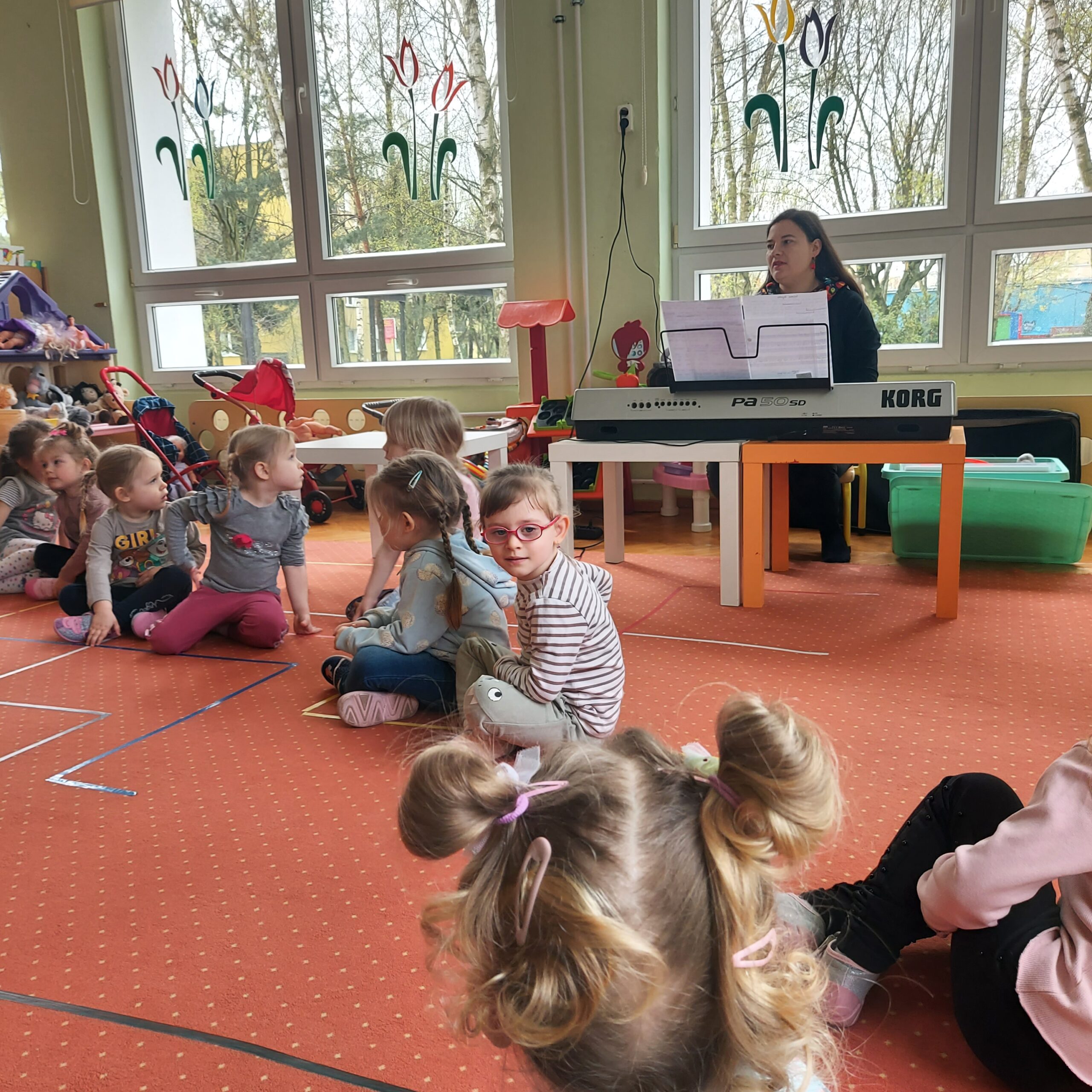 Wizyta Pani Renaty, mamy Gabrysia, w grupie „Pszczółki” była prawdziwą muzyczną przygodą dla małych uczestników. Pokazując swoją pasję oraz pracę zawodową związaną z zajęciami rytmicznymi, Pani Renata otworzyła przed dziećmi świat muzyki w niezwykle atrakcyjny sposób. Dzieci miały okazję nie tylko posłuchać, ale i aktywnie uczestniczyć w muzykowaniu, co jeszcze bardziej zbliżyło je do tematu.