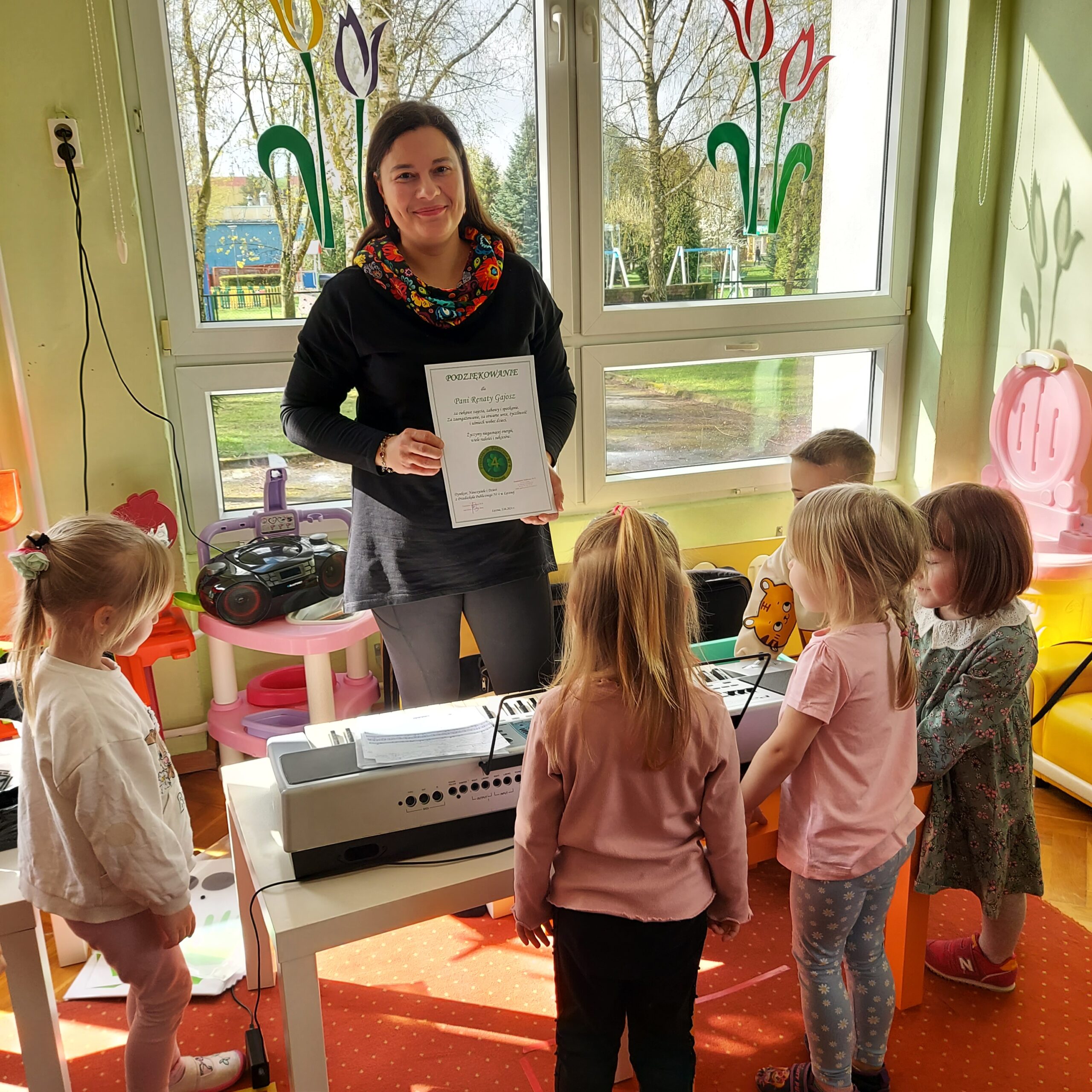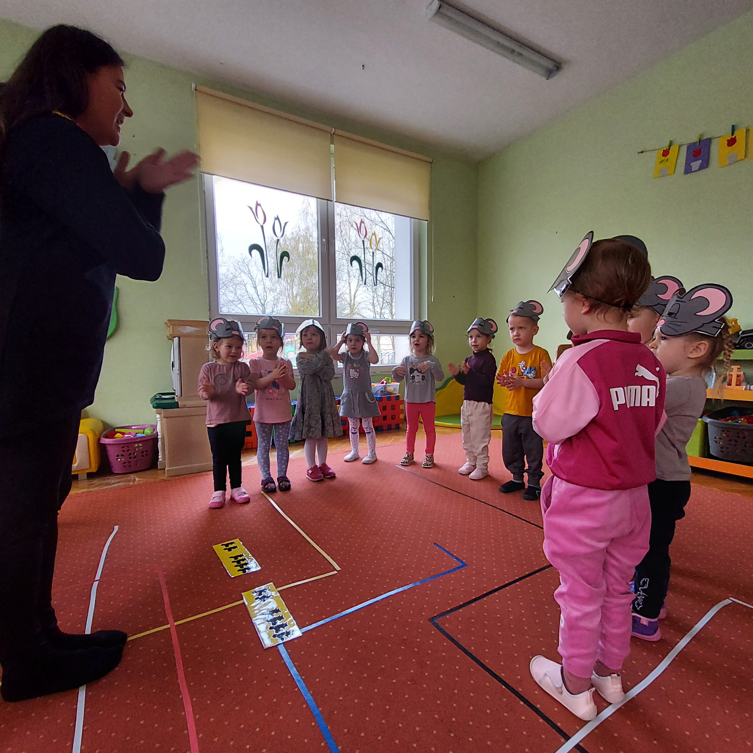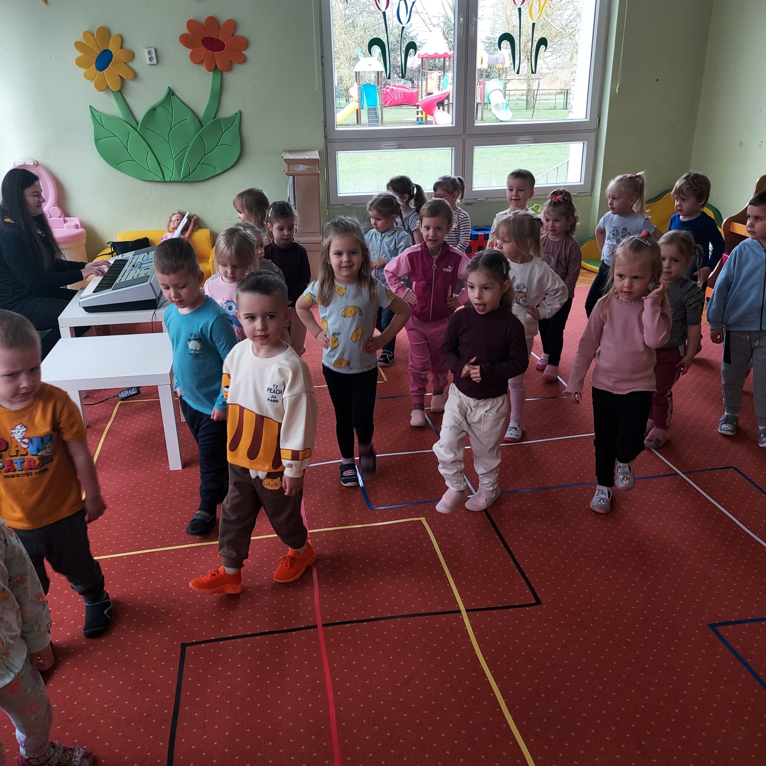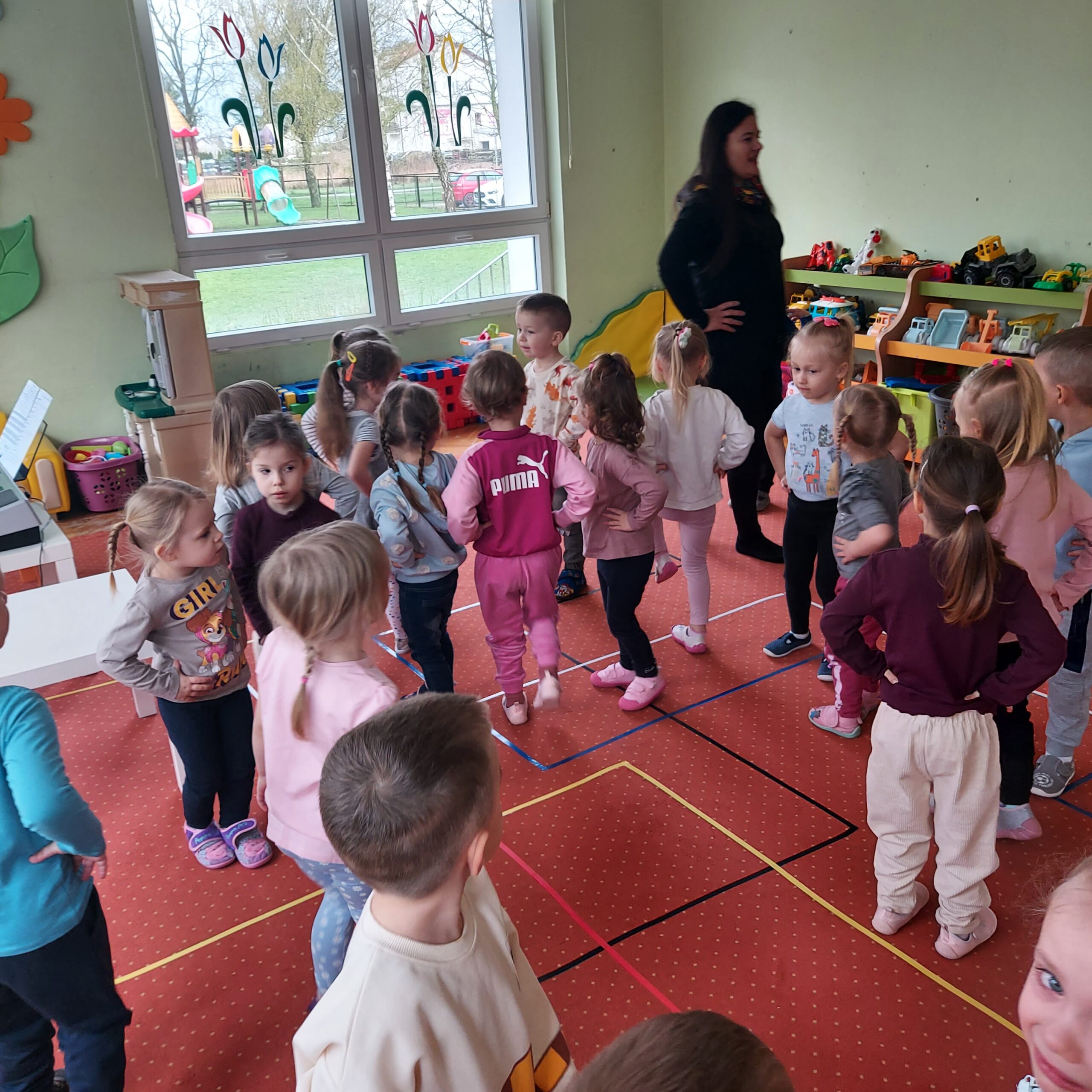 Wizyta Pani Renaty, mamy Gabrysia, w grupie „Pszczółki” była prawdziwą muzyczną przygodą dla małych uczestników. Pokazując swoją pasję oraz pracę zawodową związaną z zajęciami rytmicznymi, Pani Renata otworzyła przed dziećmi świat muzyki w niezwykle atrakcyjny sposób. Dzieci miały okazję nie tylko posłuchać, ale i aktywnie uczestniczyć w muzykowaniu, co jeszcze bardziej zbliżyło je do tematu.