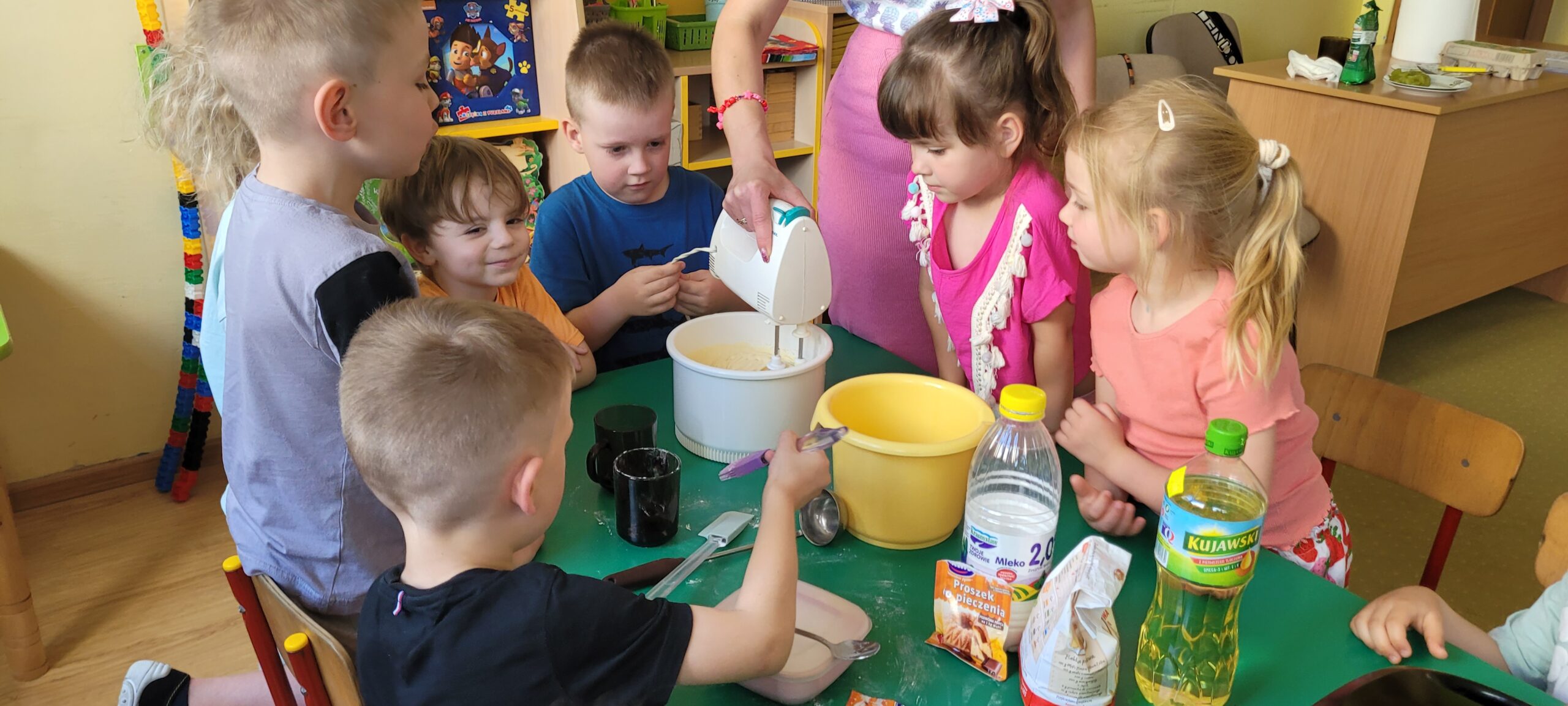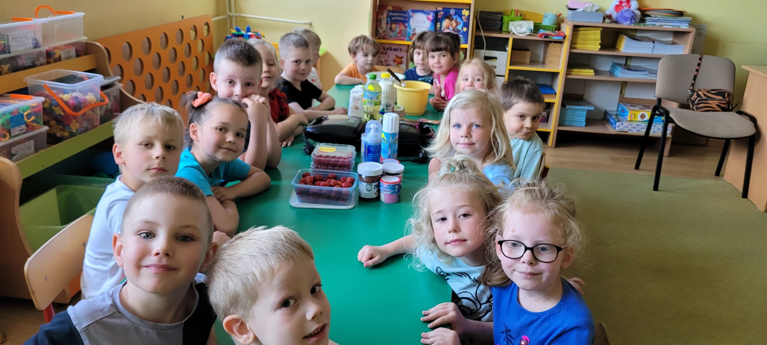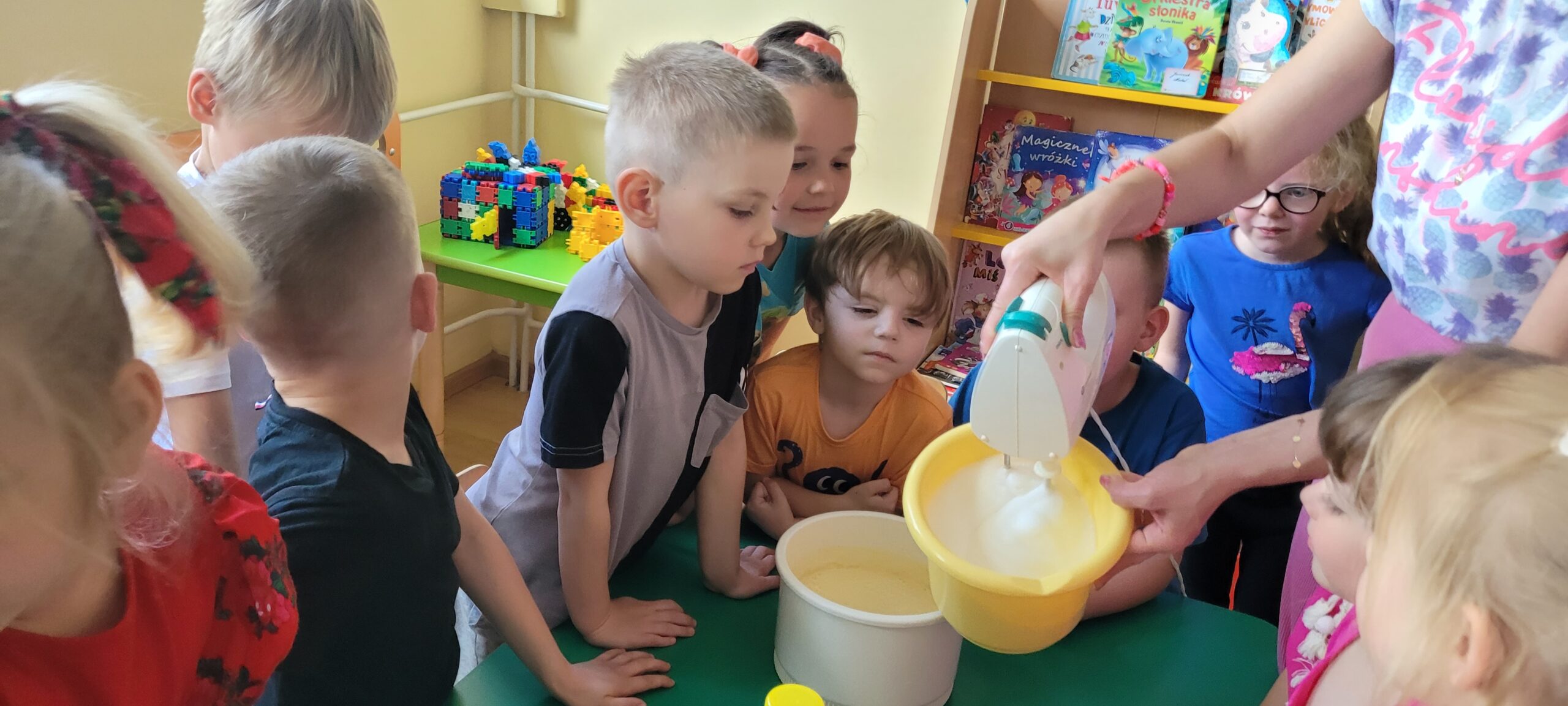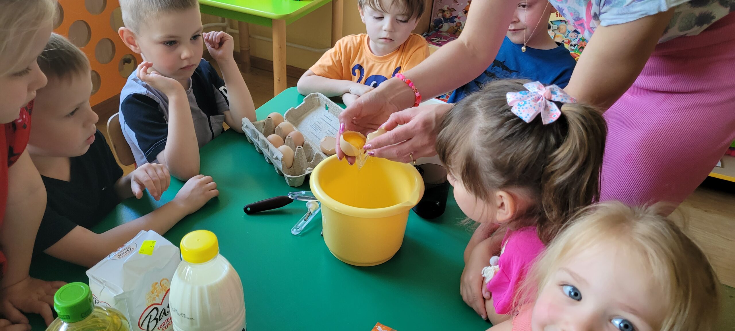 W piątek pięknie zapachniało w naszym przedszkolu, to dzieci z grupy – Żabki przyrządzały pyszne gofry. Dzieci z wielkim zapałem odmierzały składniki, wsypywały do miski i mieszały łyżką oraz używając robota kuchennego. Upieczone gofry były przepyszne!!! Słodkie i smacznie, a głównym dodatkiem do gofrów były owoce, bita śmietana i nutella i cukier puder.