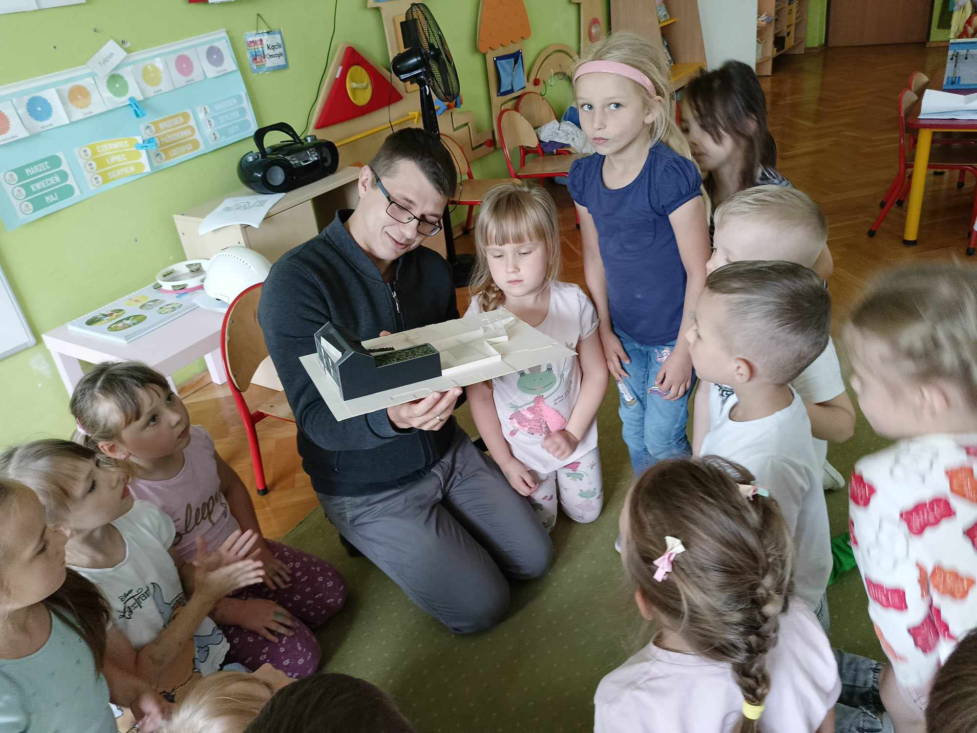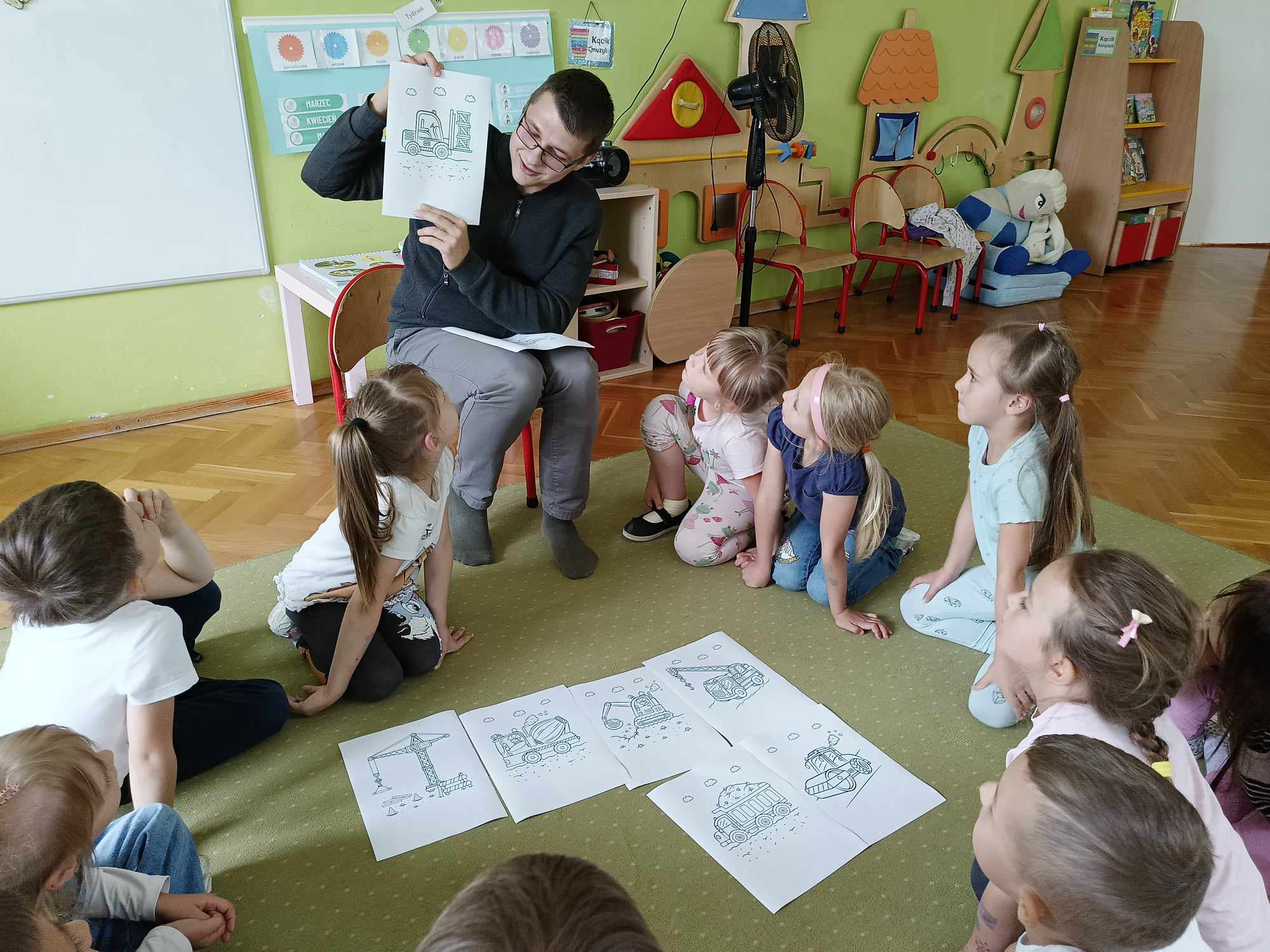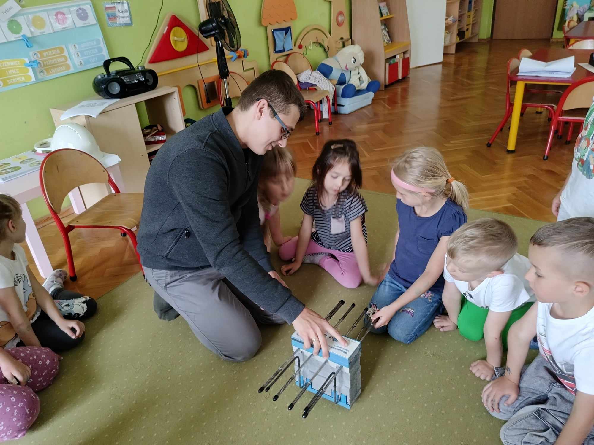 W dniu dzisiejszym odwiedził nas tata Rozalki, który przeczytał dzieciom książeczkę z serii „Bolek i Lolek”, a następnie opowiedział dzieciom o swoim zawodzie. Przedszkolaki zobaczyły jak wyglądają rysunki projektu budowlanego, dowiedziały się jak wygląda proces budowy domów oraz poznały maszyny budowlane. Dziękujemy Panu Tomkowi za poświęcony czas naszym przedszkolakom.