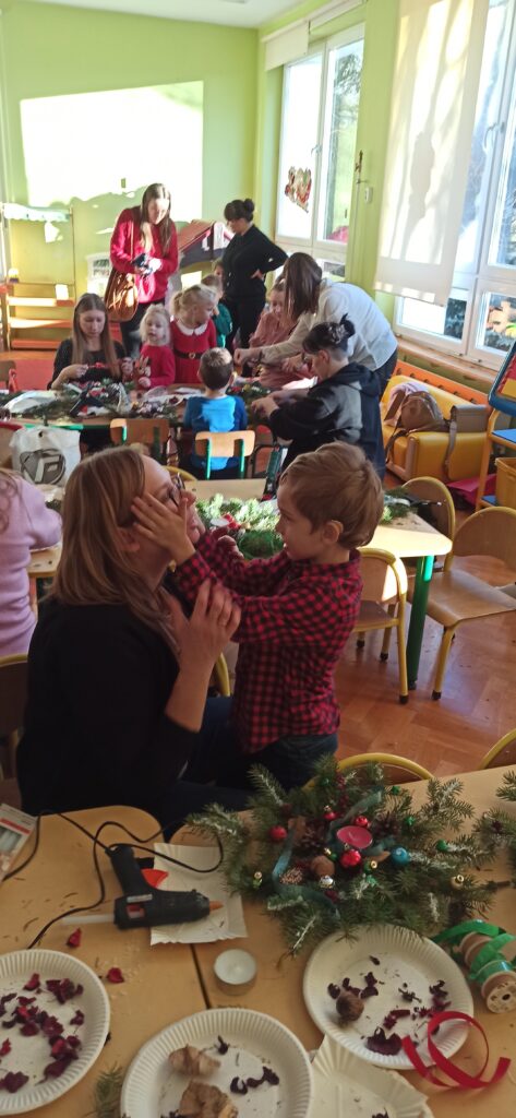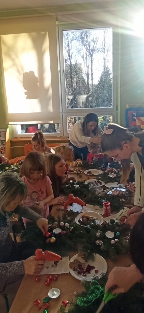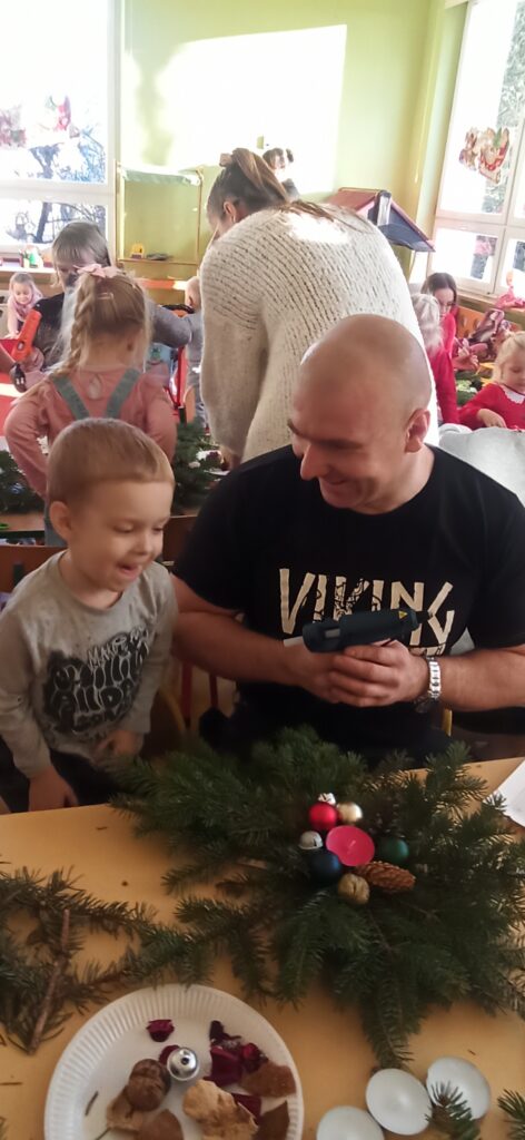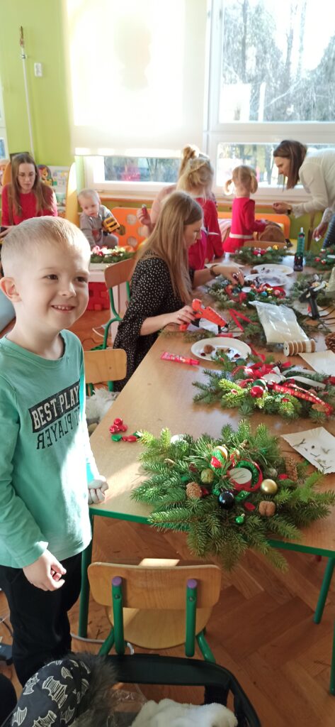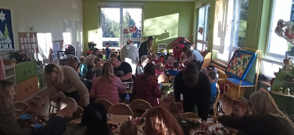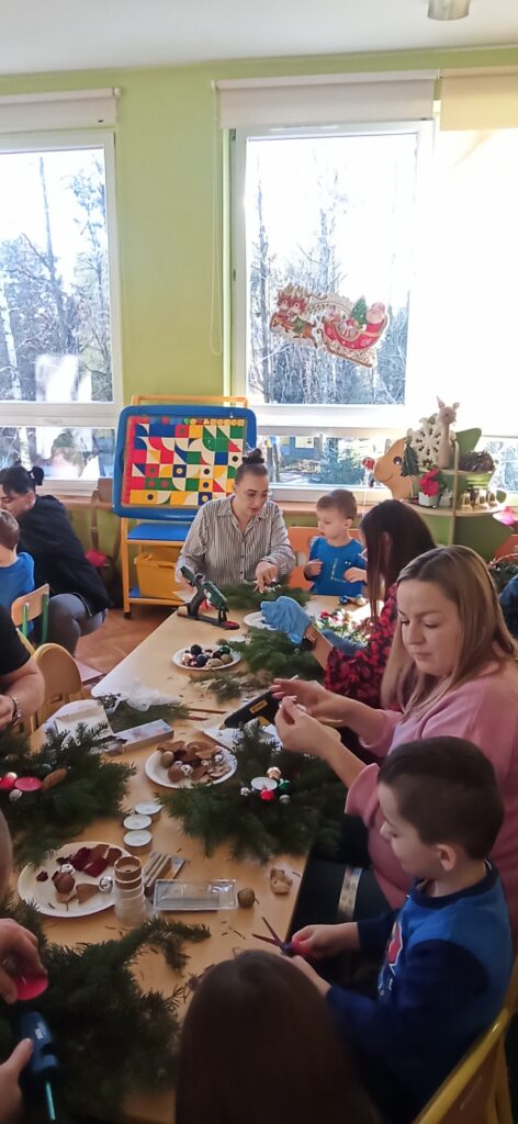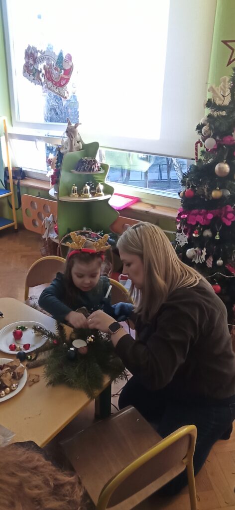 Rodzinne spotkanie świąteczne. Przed Bożym Narodzeniem Kotki zaprosiły do przedszkola swoje rodziny, aby wspólnie przygotować się do Świąt. Rodzice wraz z dziećmi przygotowali stroiki świąteczne, ale ozdobić świąteczny stół. 13/01/2025 autor: Agnieszka Susz 1 Grupa Kotki
