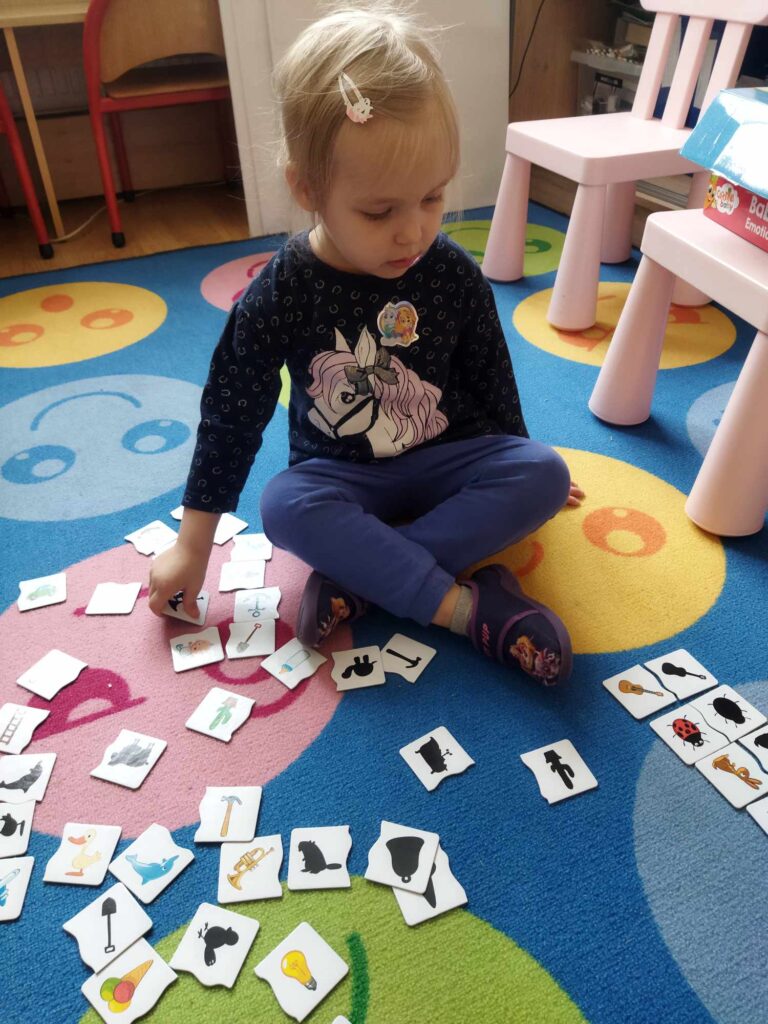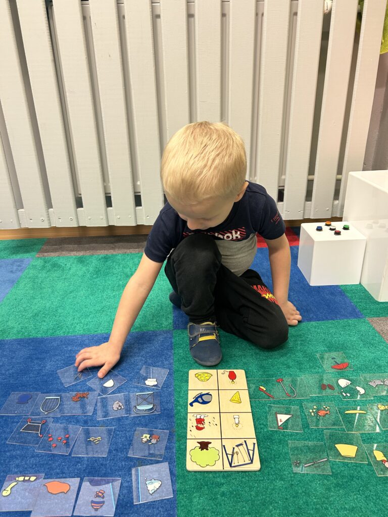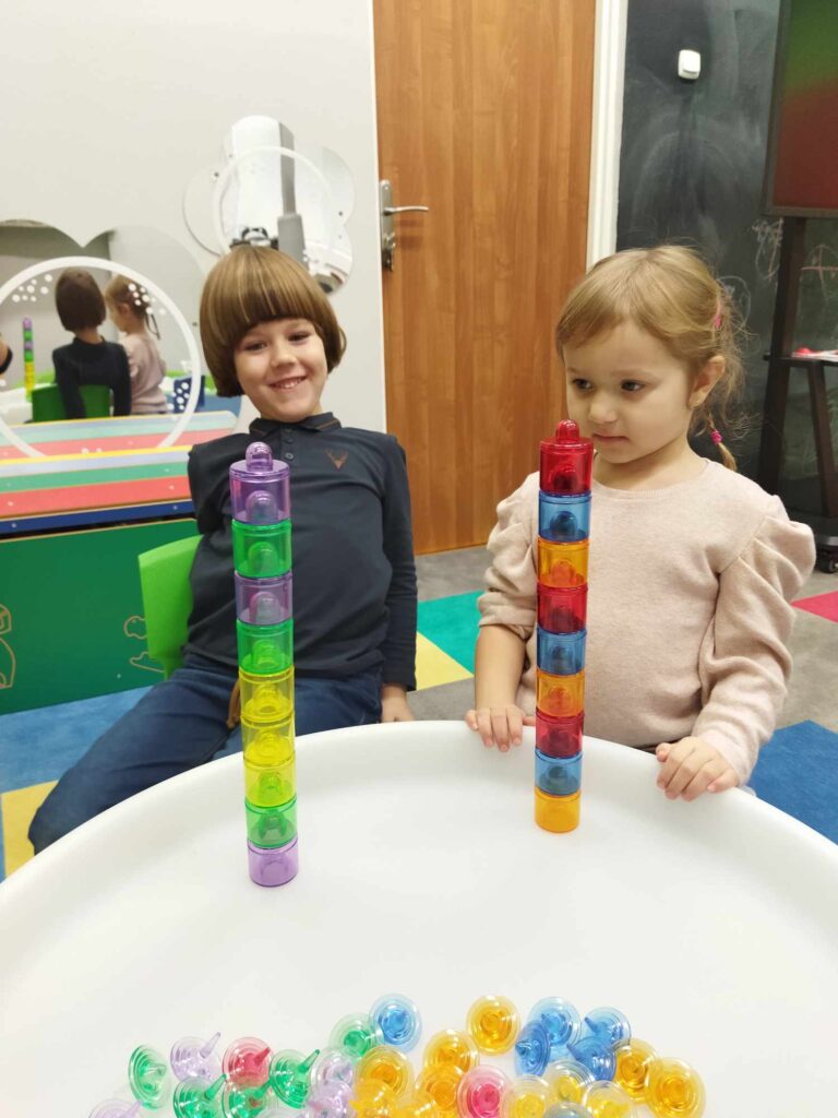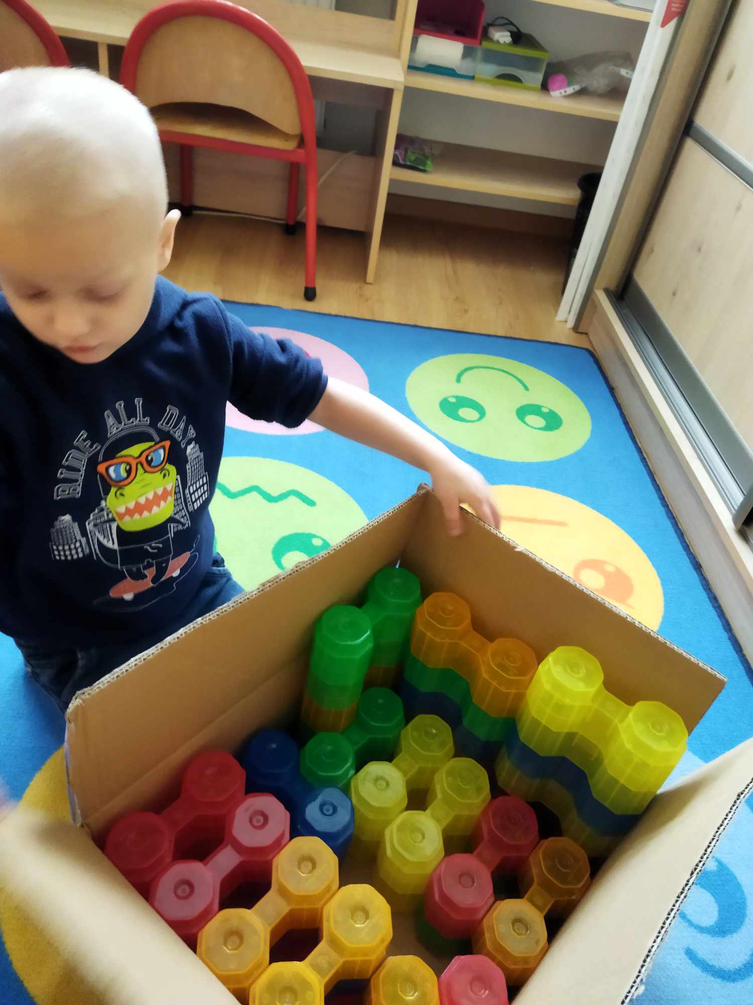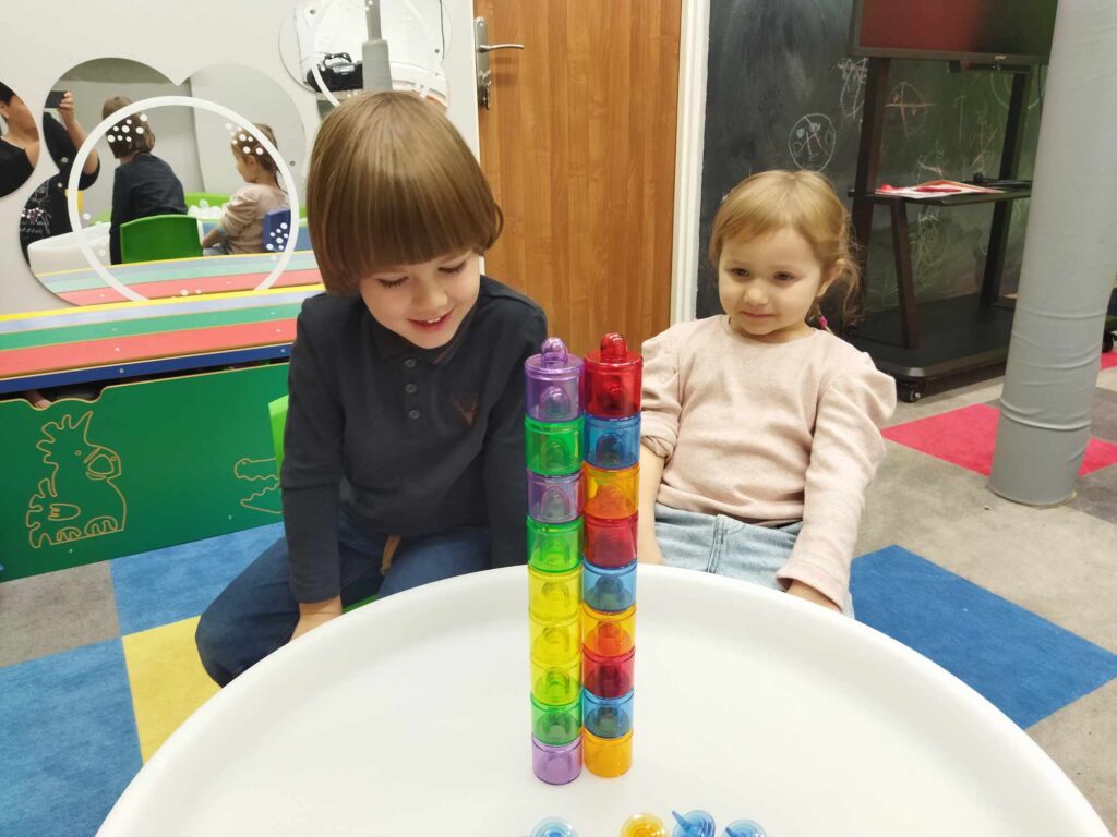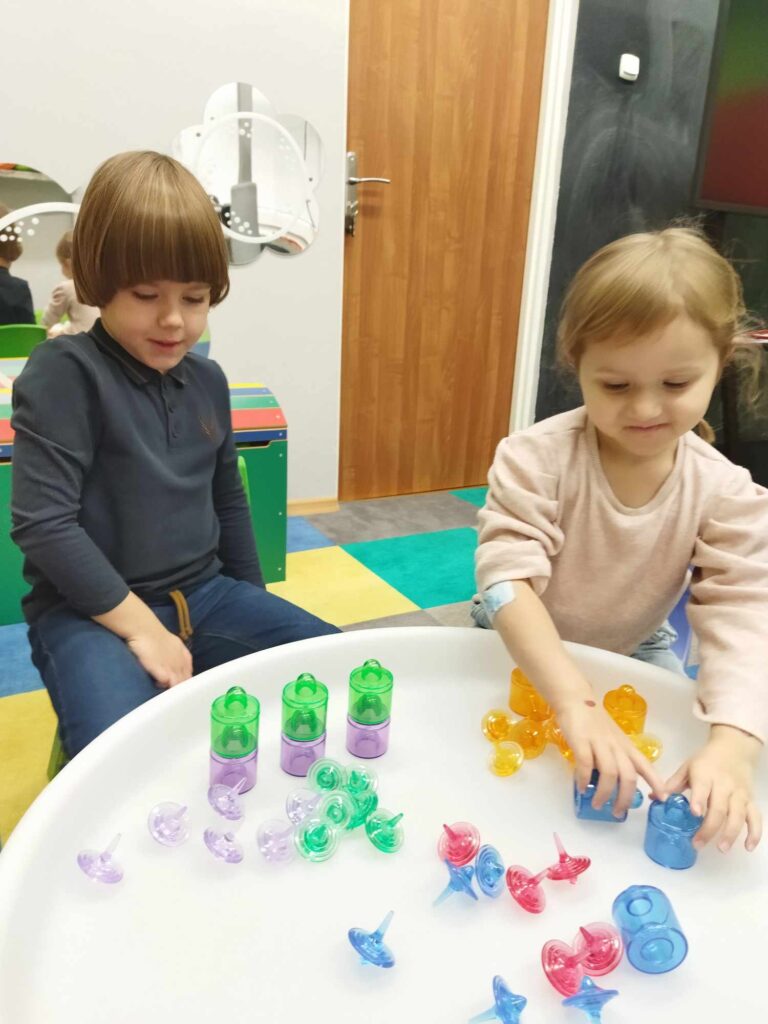 Dzieci z wielkim zaangażowaniem uczestniczą w zajęciach rozwiązując zadania o różnym poziomie trudności.