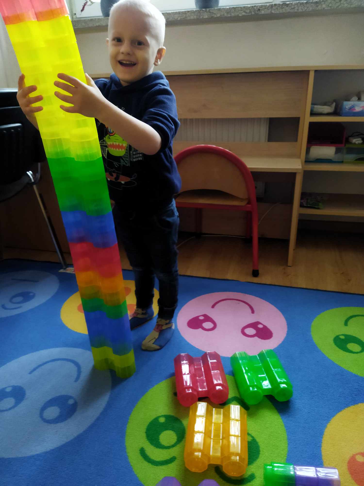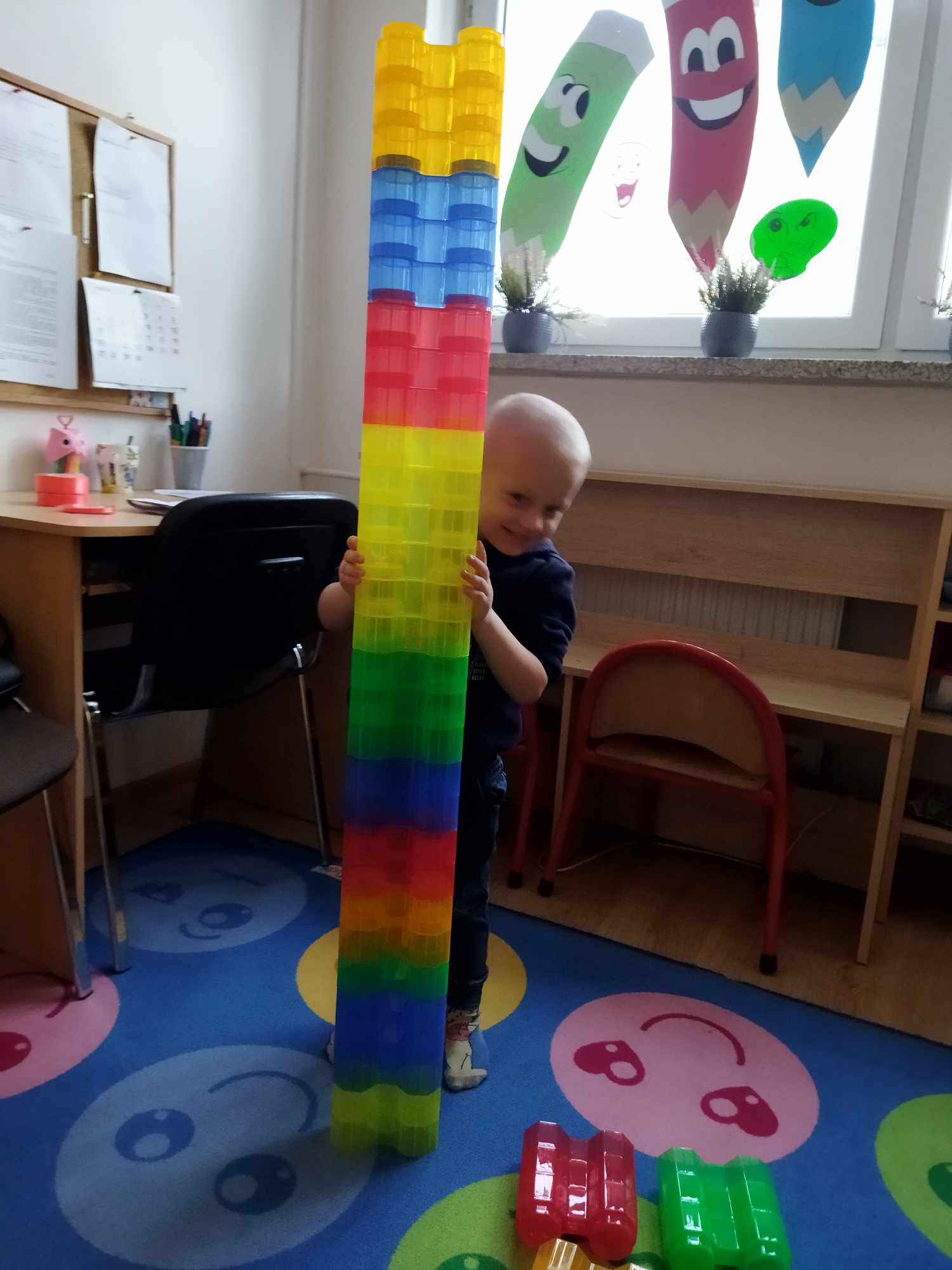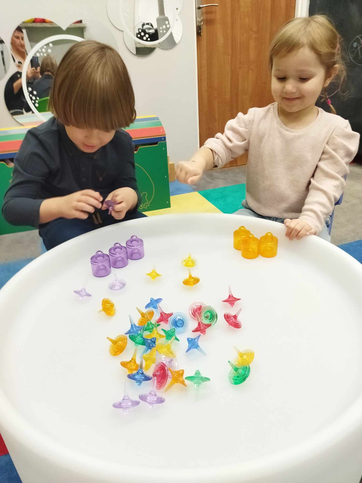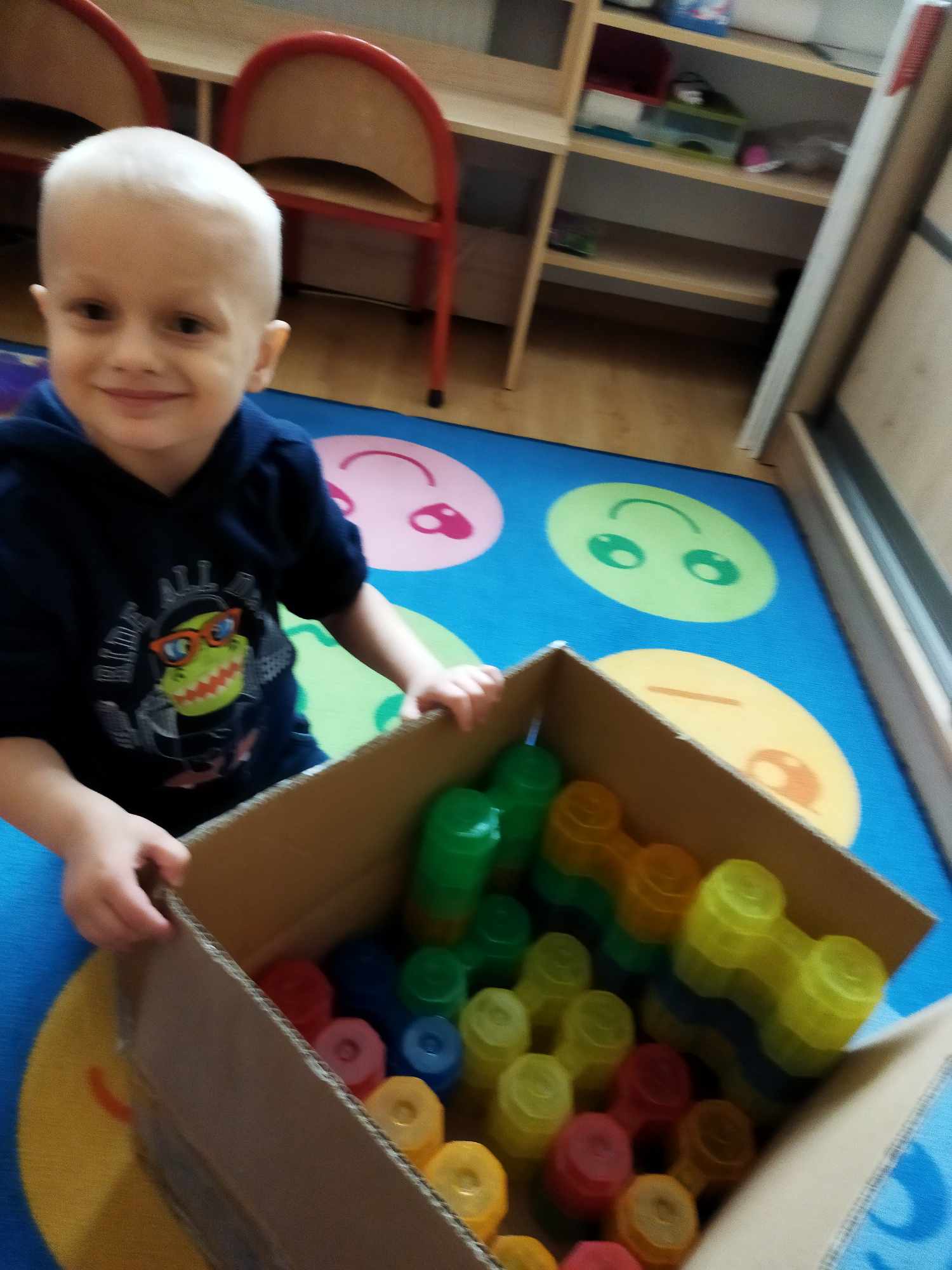 Dzieci z wielkim zaangażowaniem uczestniczą w zajęciach rozwiązując zadania o różnym poziomie trudności.