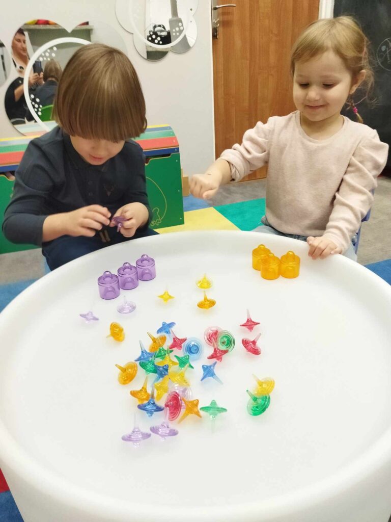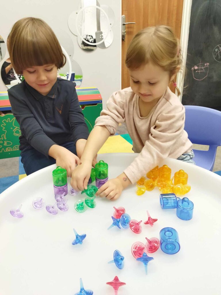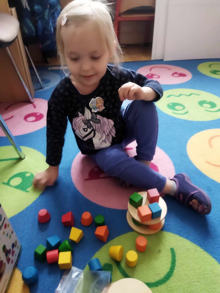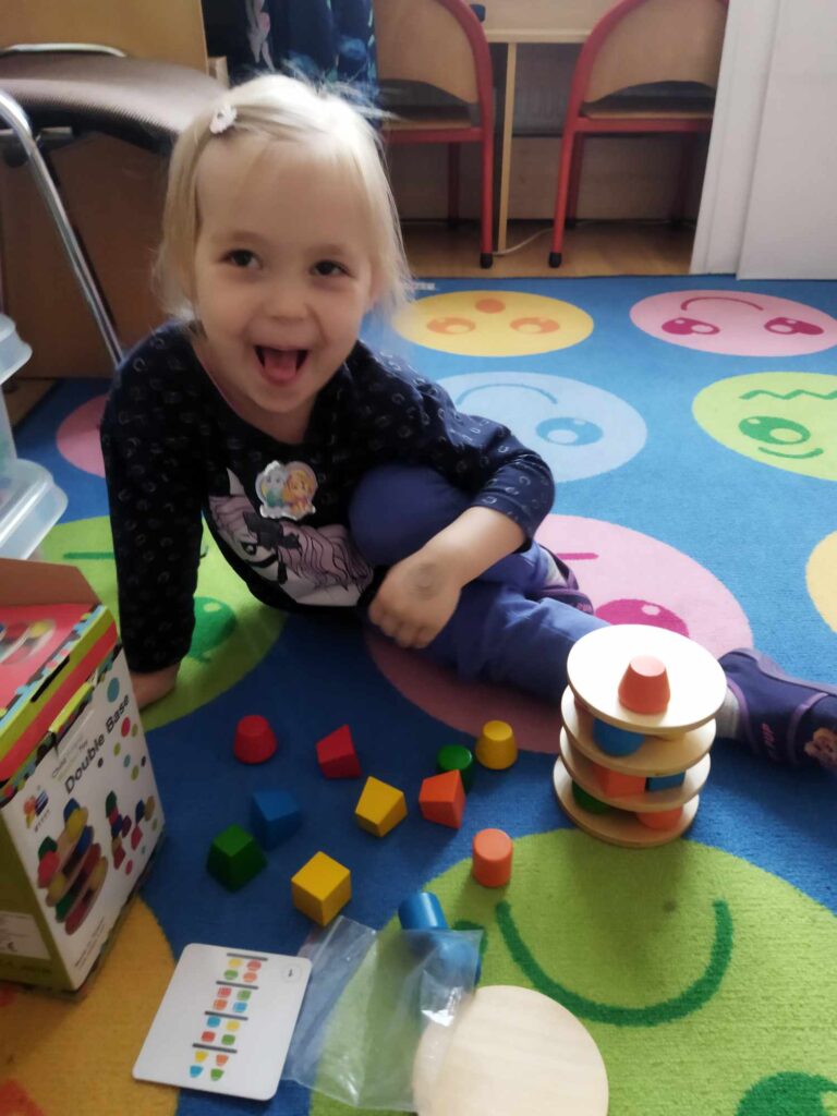 Czym jest sfery poznawcza? Sfera ta to uważność, pamięć, koncentracja, percepcja, myślenie. Podczas ćwiczeń stymulujemy, rozwijamy, usprawniamy te umiejętności. Pomagają nam pomoce dydaktyczne, m.in. kolorowe liczmany; gry edukacyjne, dzięki którym staramy się ćwiczyć nazwy kolorów, kształtów w sposób atrakcyjny dla dziecka. Gra cieni, czyli układanki edukacyjne rozwijają nasze myślenie i spostrzegawczość.