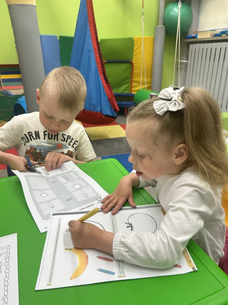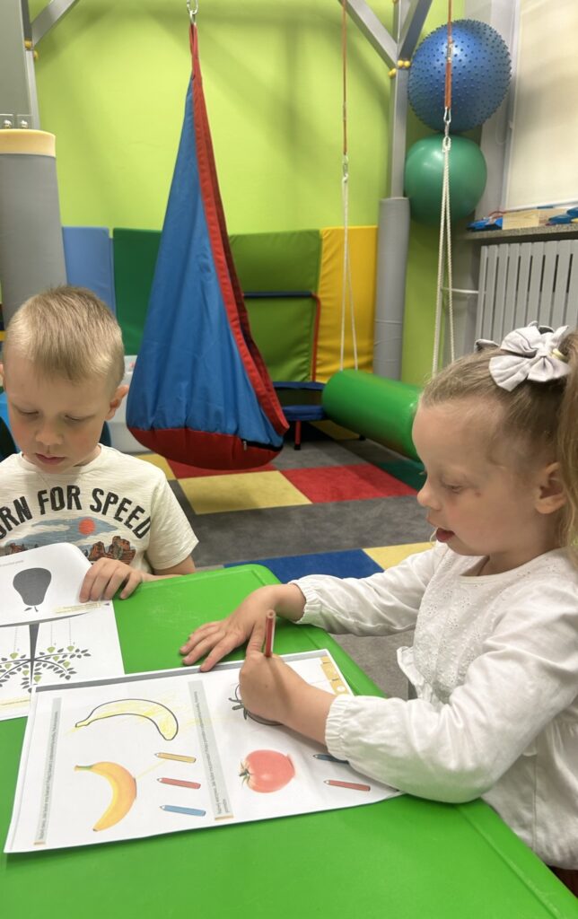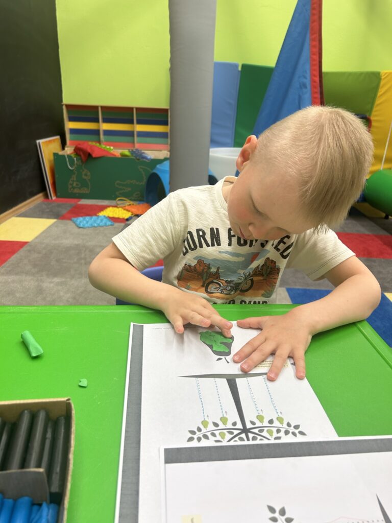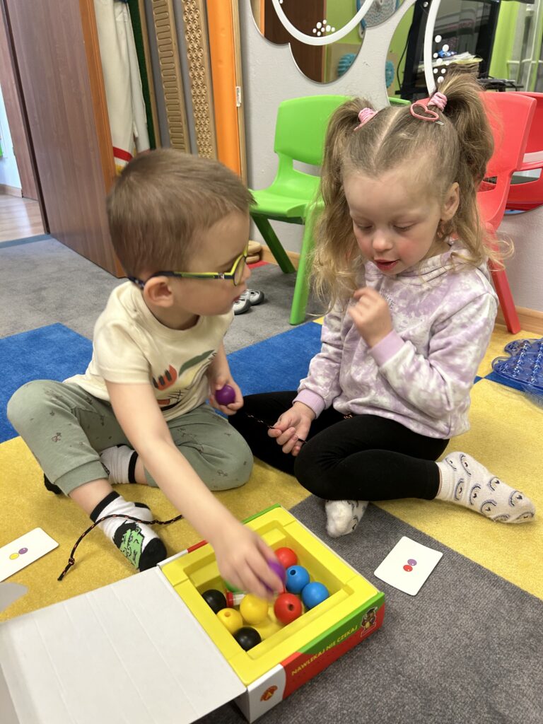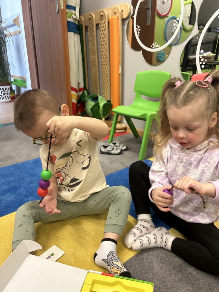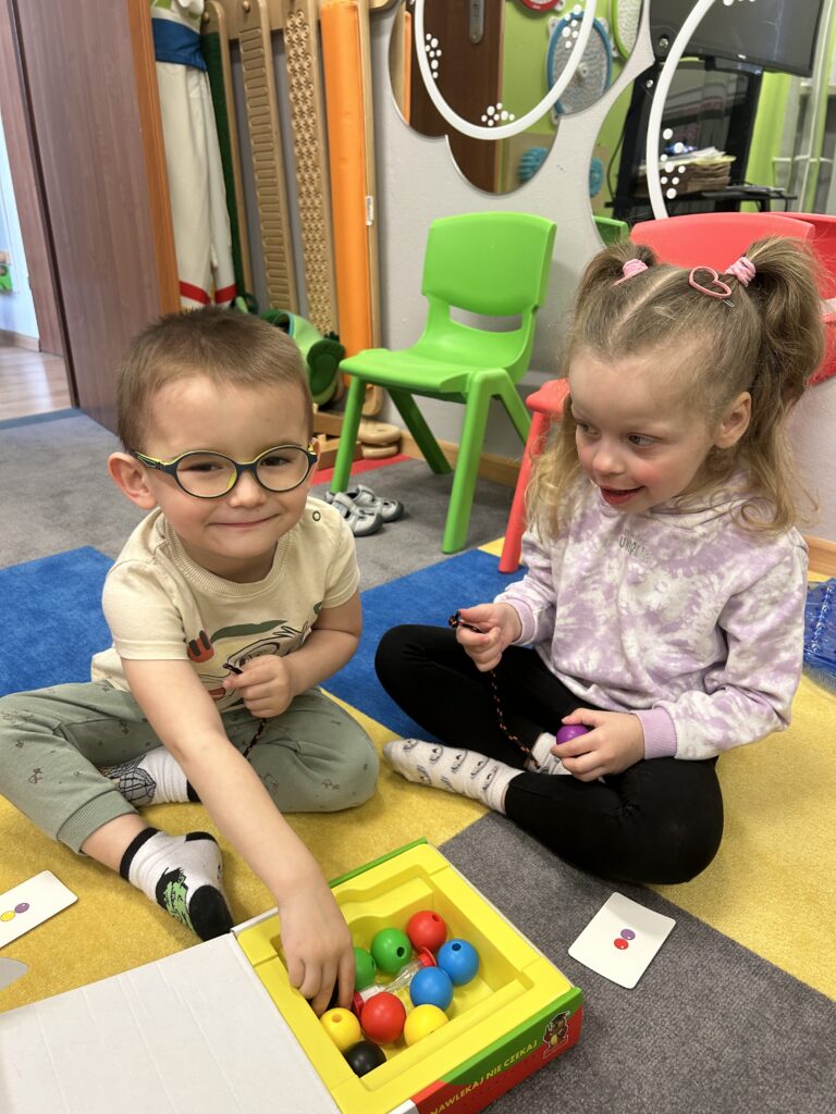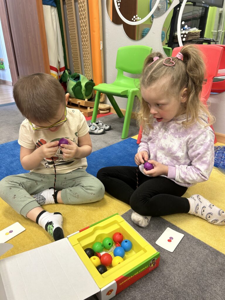 Rozwijamy zręczność manualną Podczas zajęć Iga, Antek, Patryk i Gabryś ćwiczyli koordynację ruchową małych mięśni poprzez nawlekanie korali na sznurek, sortowanie kolorowych przedmiotów z użyciem pęsety, wyklejanie, rysowanie po śladzie. 04/06/2023 autor: Patrycja Słomiany 0 Psycholog 2022 – 2023