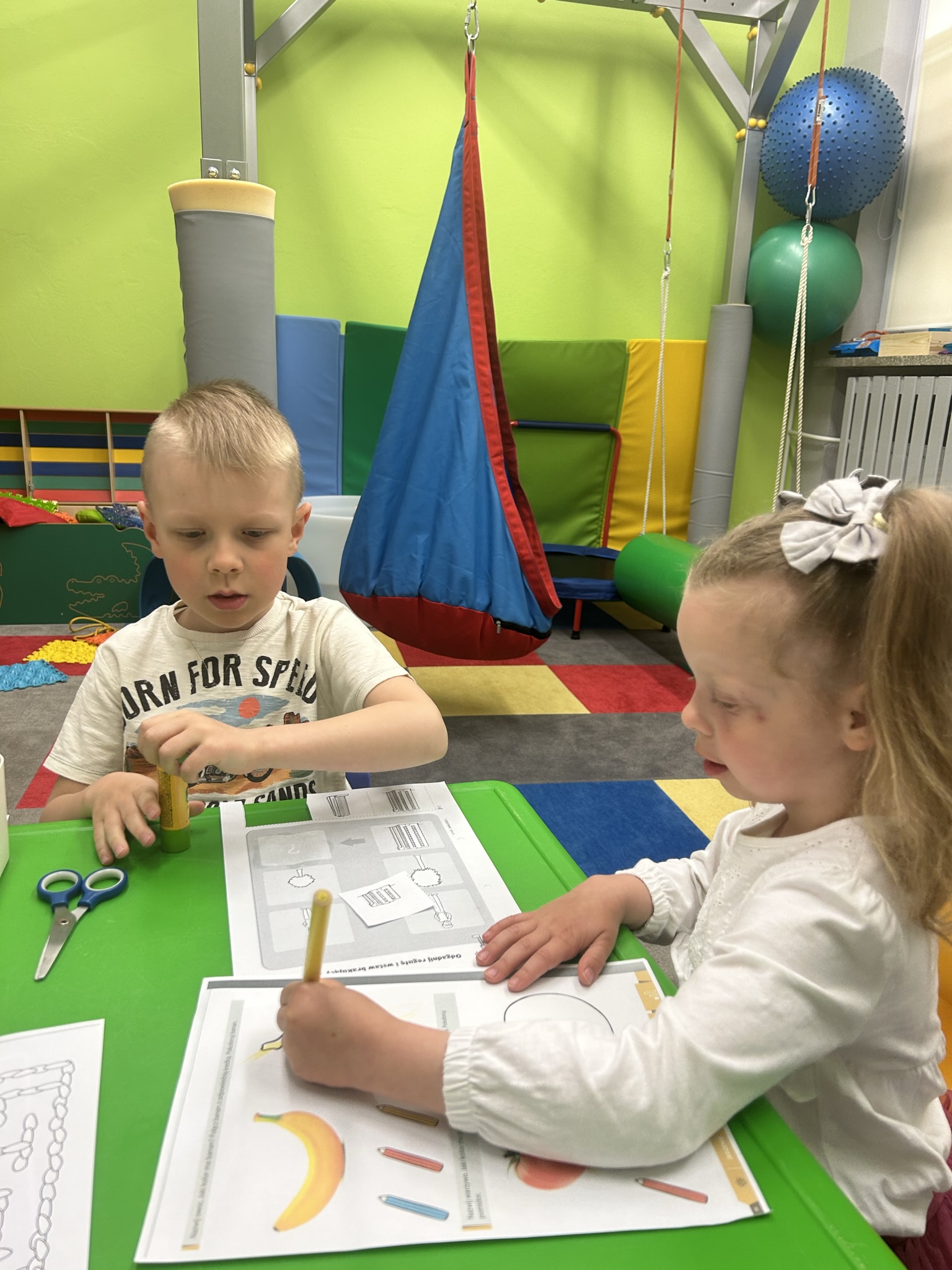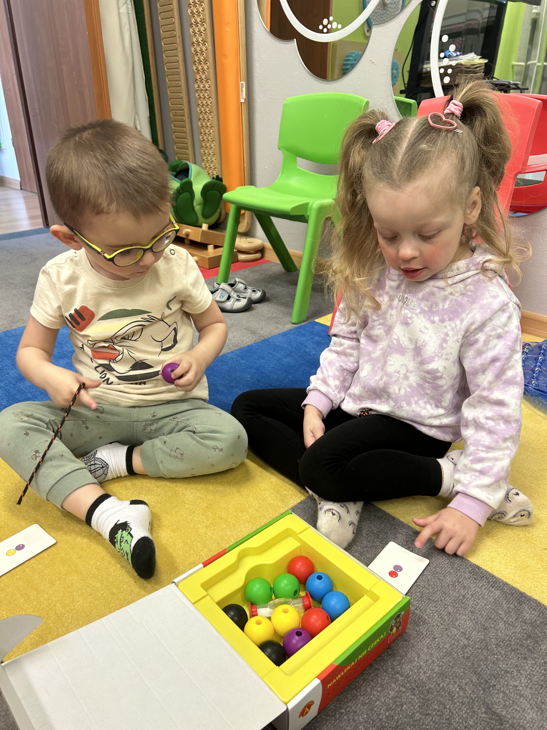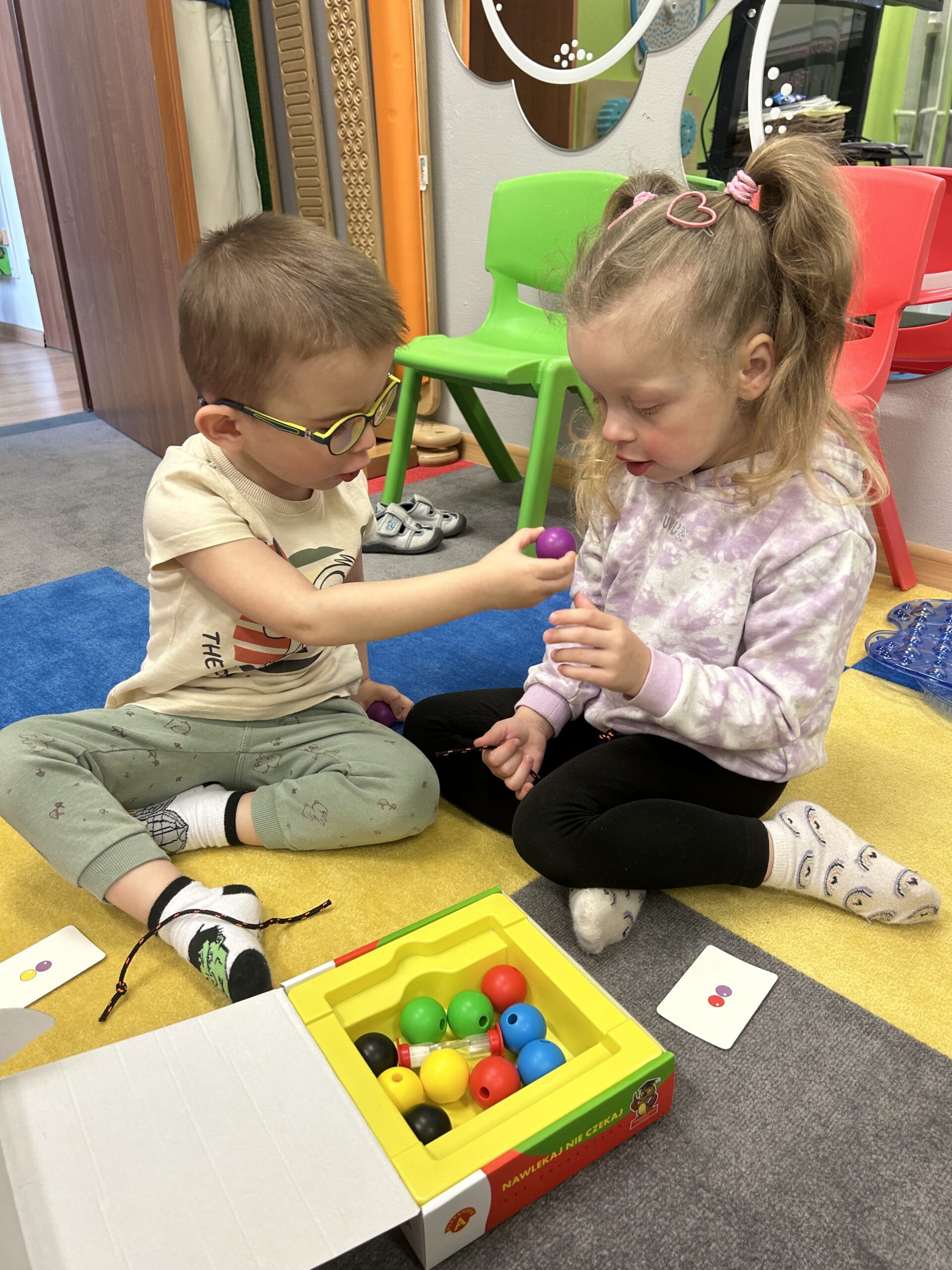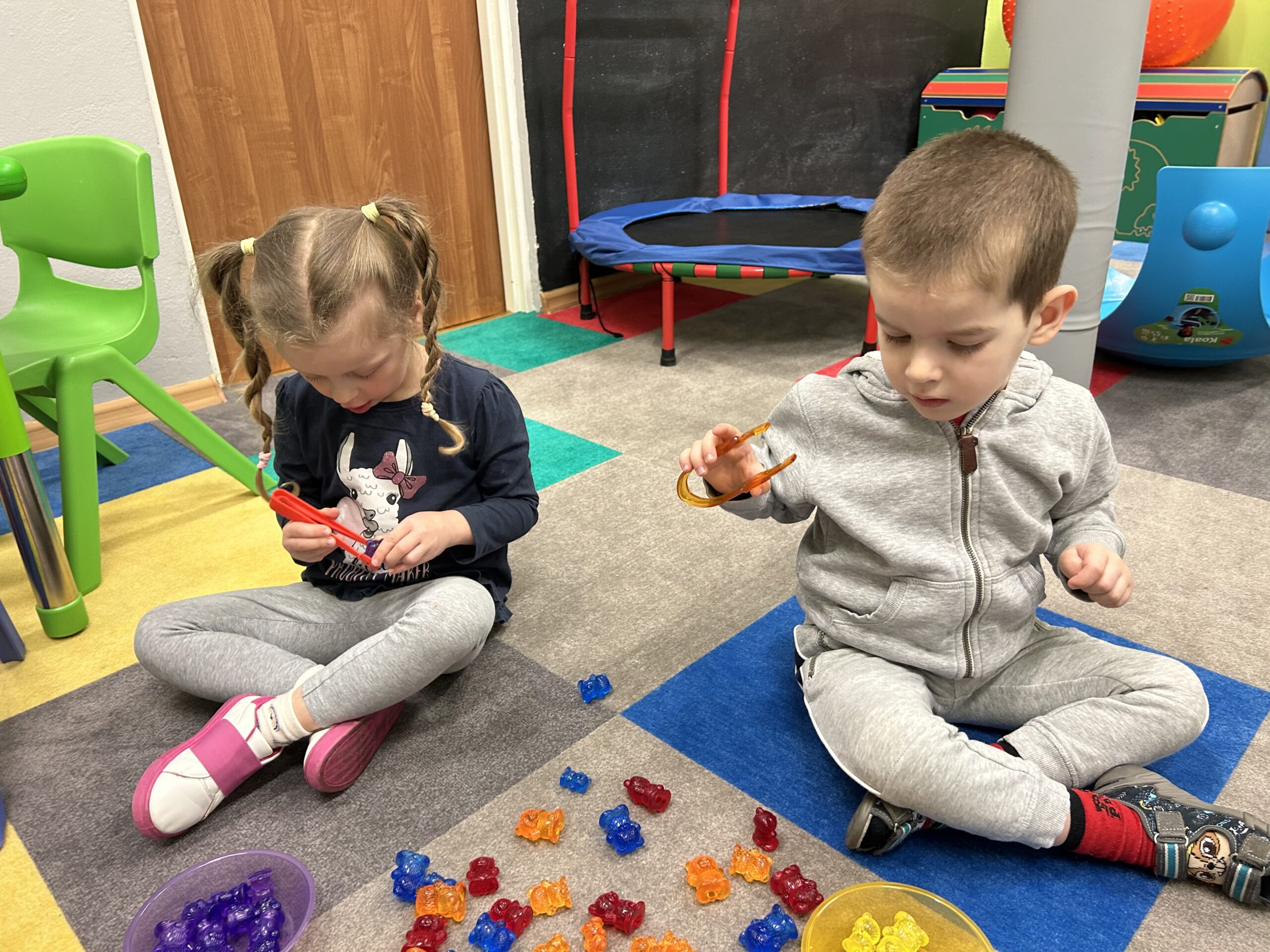 Rozwijamy zręczność manualną Podczas zajęć Iga, Antek, Patryk i Gabryś ćwiczyli koordynację ruchową małych mięśni poprzez nawlekanie korali na sznurek, sortowanie kolorowych przedmiotów z użyciem pęsety, wyklejanie, rysowanie po śladzie. 04/06/2023 autor: Patrycja Słomiany 0 Psycholog 2022 – 2023