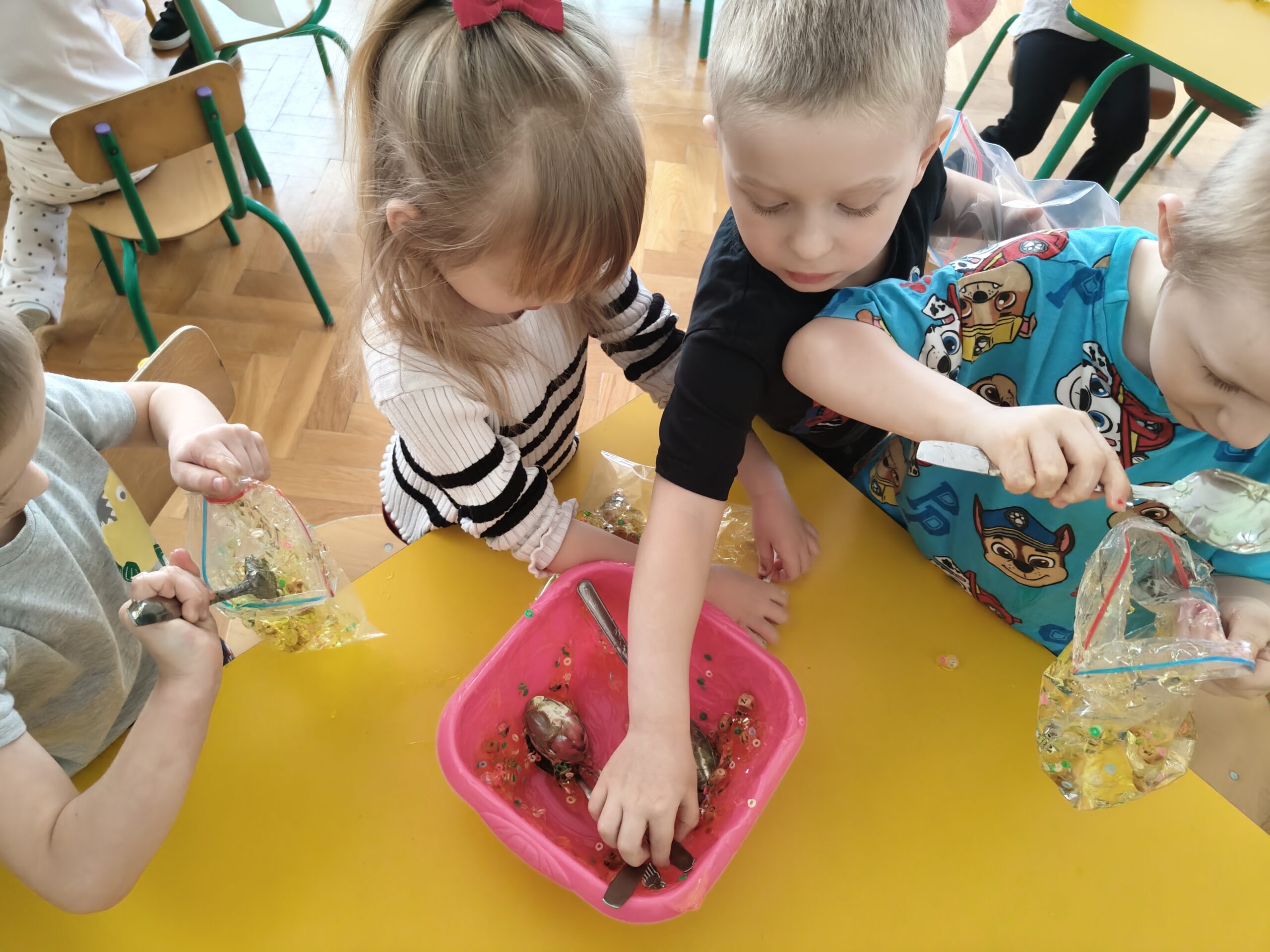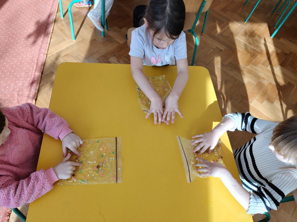 Woreczki sensoryczne? Piankolina, a może talerzyki sensoryczne? Pszczółki świetnie się bawią i wszechstronnie rozwijają. Zabawy sensoryczne wpływają pozytywnie na rozwój motoryczny dzieci, poznawczy, emocjonalno-społeczny, rozbudzają kreatywność i wyobraźnię. Stymulują układ nerwowy – wpierają integrację zmysłów. Wyciszają, relaksują, uczą współpracy, wpływają korzystnie na samopoczucie dzieci.
