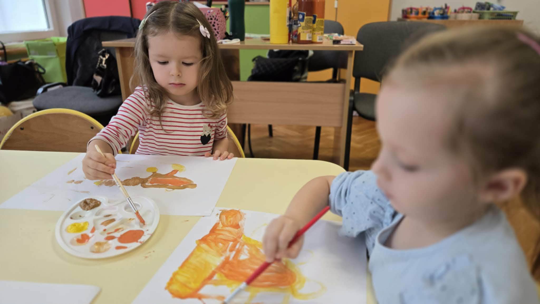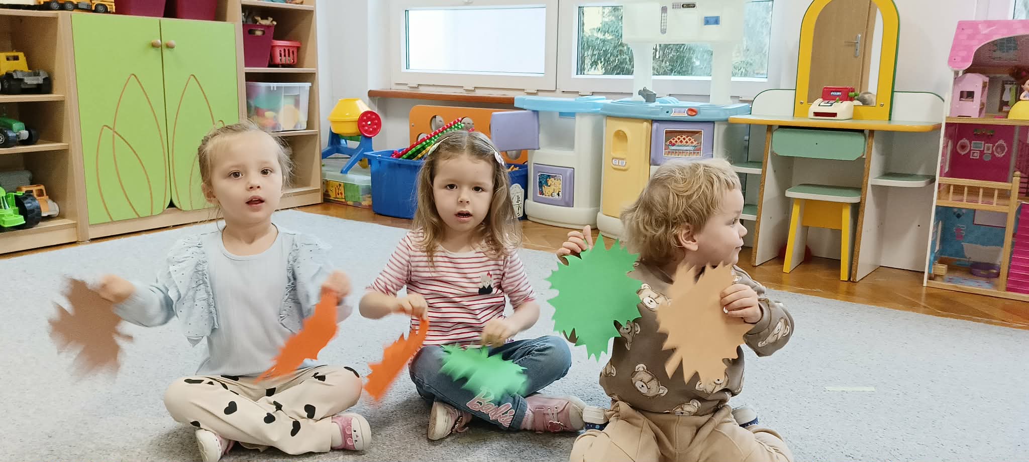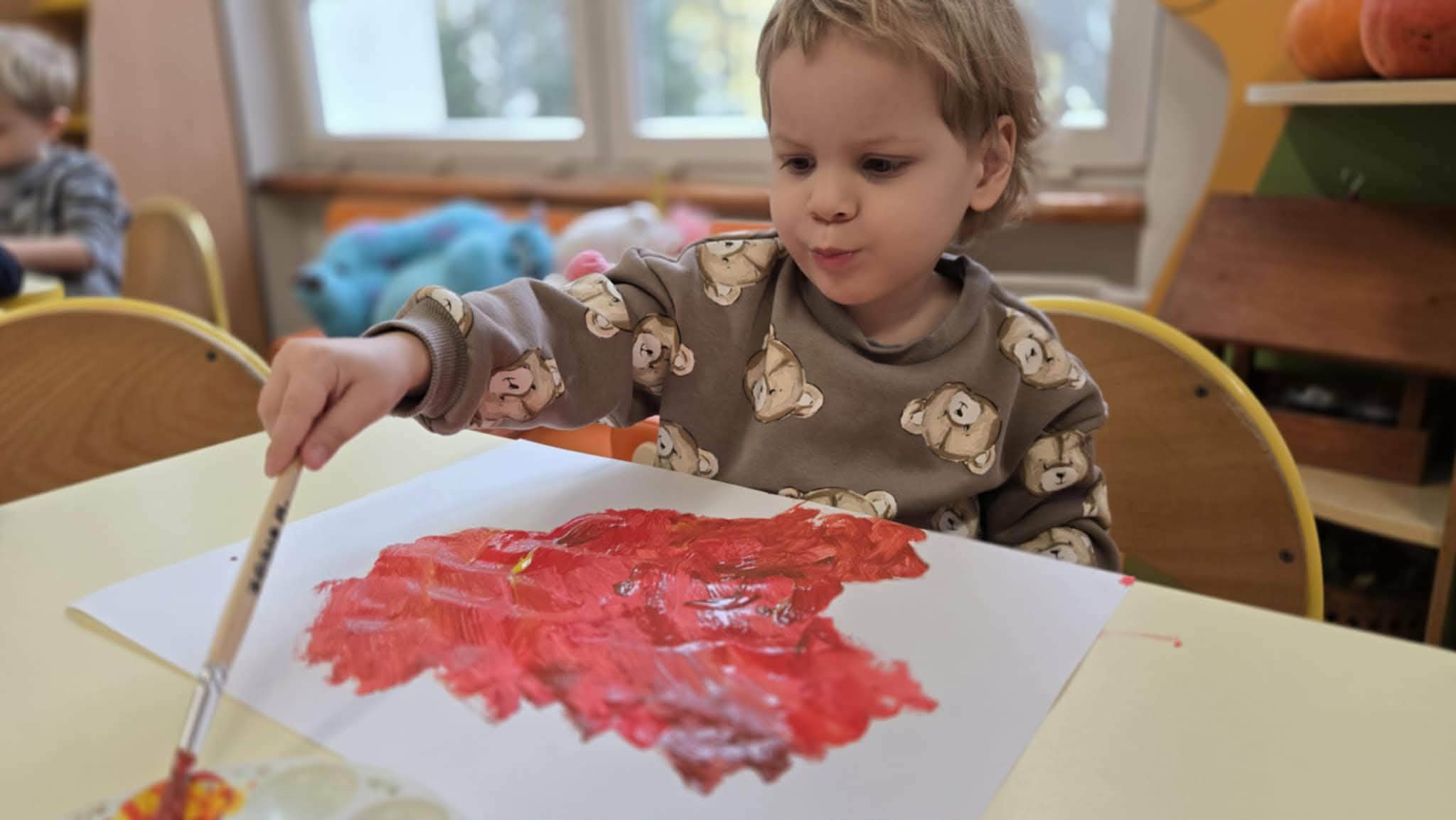 Po wykonaniu instrumentów, przedszkolaki słuchały muzyki, do której tworzyły ruch i zabawę. Jednym z ulubionych momentów zajęć była zabawa „Zgadnij, co to za dźwięk”, podczas której dzieci miały okazję zgadywać, jakie dźwięki wydają różne instrumenty perkusyjne. W ramach programu dzieci również uczestniczyły w zajęciach dydaktycznych, podczas których miały za zadanie malować to, co „słyszą”. Wspólnie malowały do muzyki przedstawiającej pory roku. Była to wyjątkowa okazja do połączenia sztuki z muzyką, rozwijania wyobraźni oraz uważności na dźwięki otaczającego nas świata.