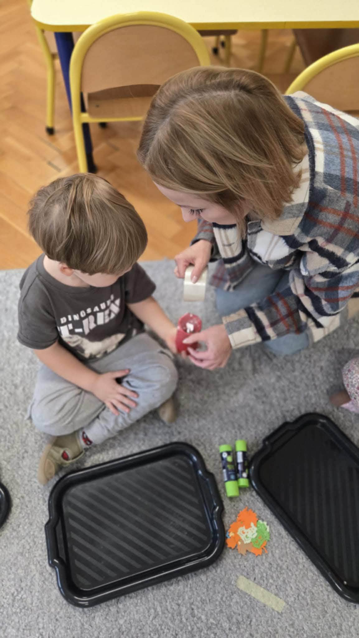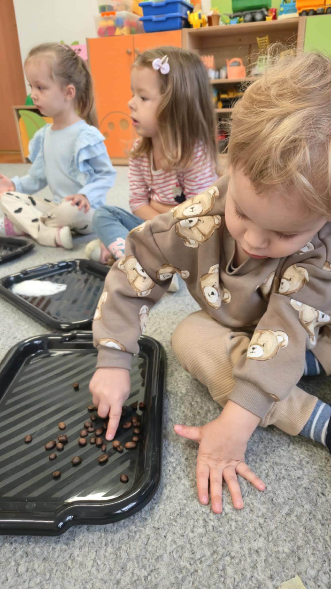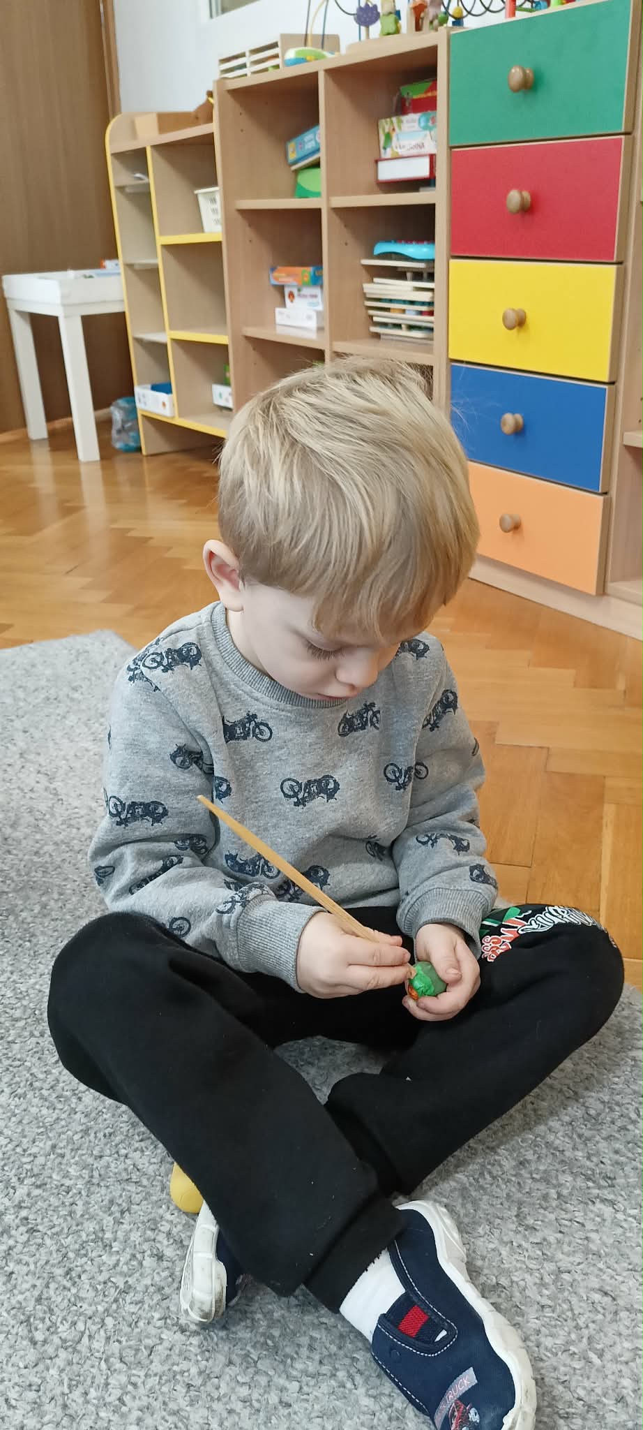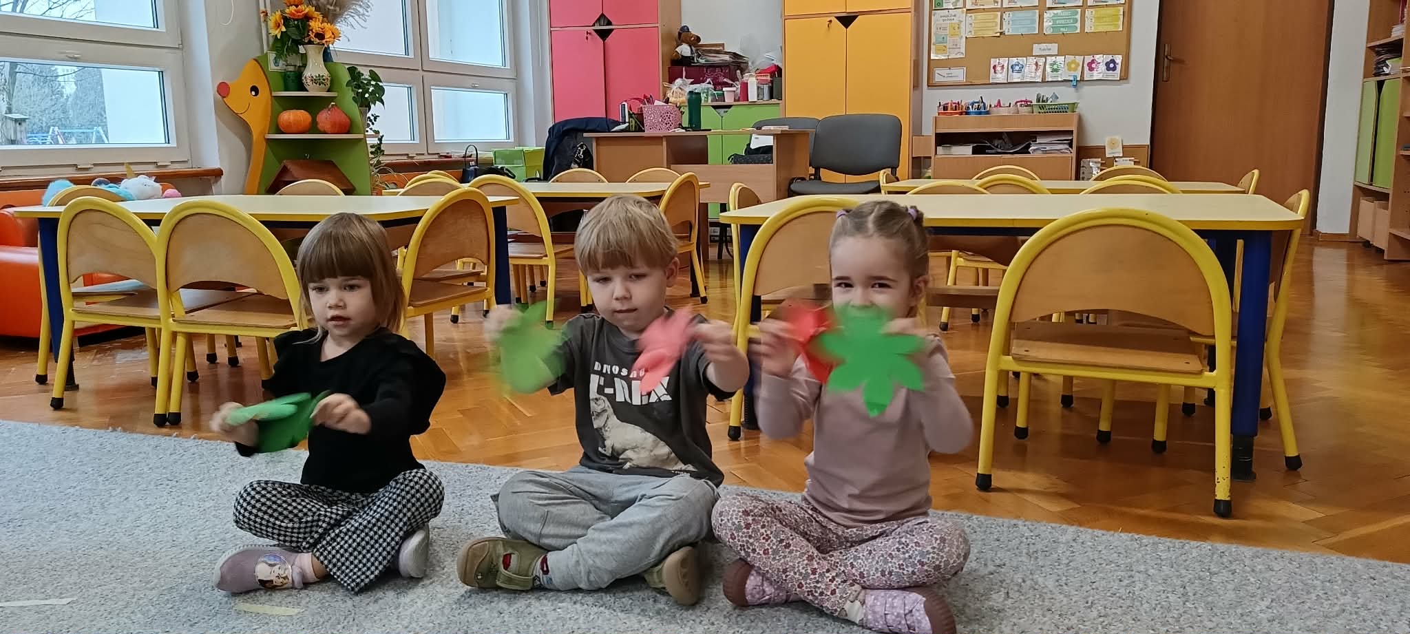 Po wykonaniu instrumentów, przedszkolaki słuchały muzyki, do której tworzyły ruch i zabawę. Jednym z ulubionych momentów zajęć była zabawa „Zgadnij, co to za dźwięk”, podczas której dzieci miały okazję zgadywać, jakie dźwięki wydają różne instrumenty perkusyjne. W ramach programu dzieci również uczestniczyły w zajęciach dydaktycznych, podczas których miały za zadanie malować to, co „słyszą”. Wspólnie malowały do muzyki przedstawiającej pory roku. Była to wyjątkowa okazja do połączenia sztuki z muzyką, rozwijania wyobraźni oraz uważności na dźwięki otaczającego nas świata.
