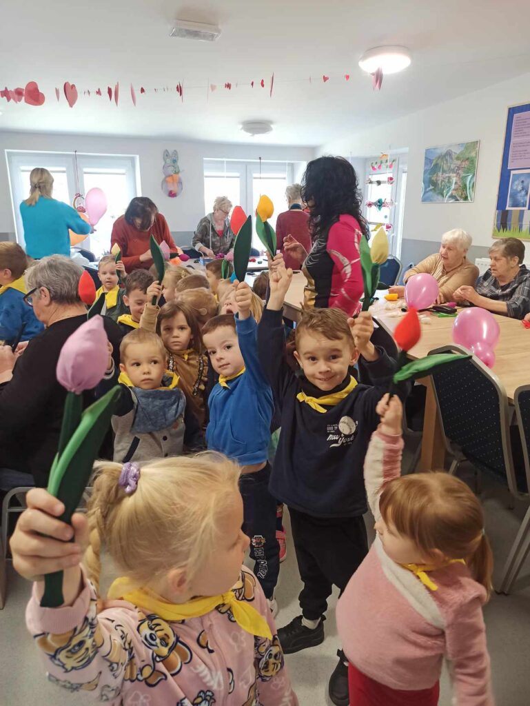 Dwie najmłodsze grupy odwiedziły podopiecznych Domu Seniora w Jaszczowie. Dzieci miały okazję uczestniczyć w warsztatach artystycznych przygotowanych przez seniorów oraz uczestniczyć we wspólnych zabawach ruchowych i tanecznych. był to cudowny dzień, który połączył dwa pokolenia podczas wspólnych aktywności.