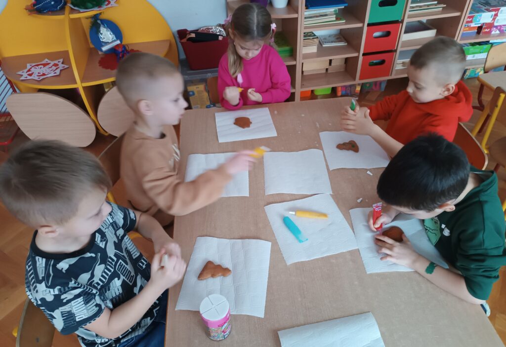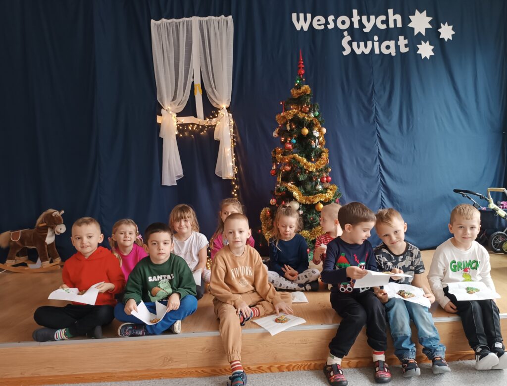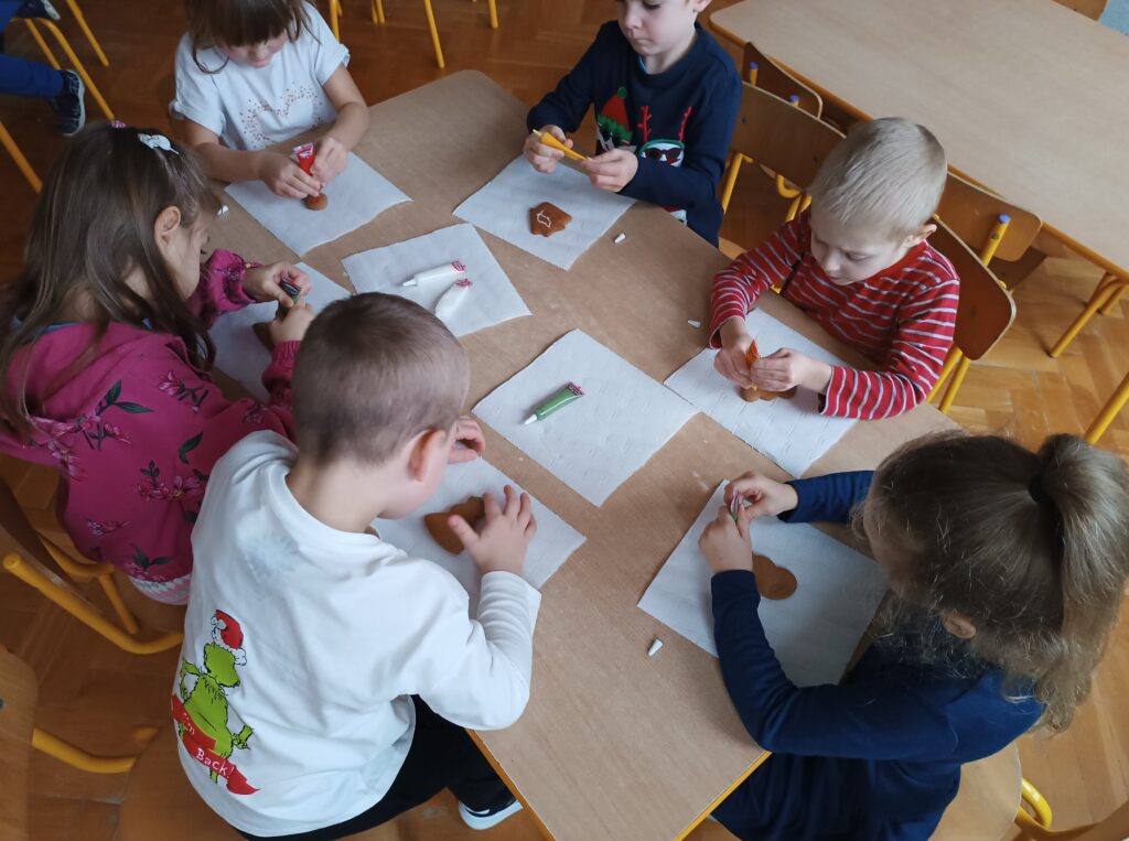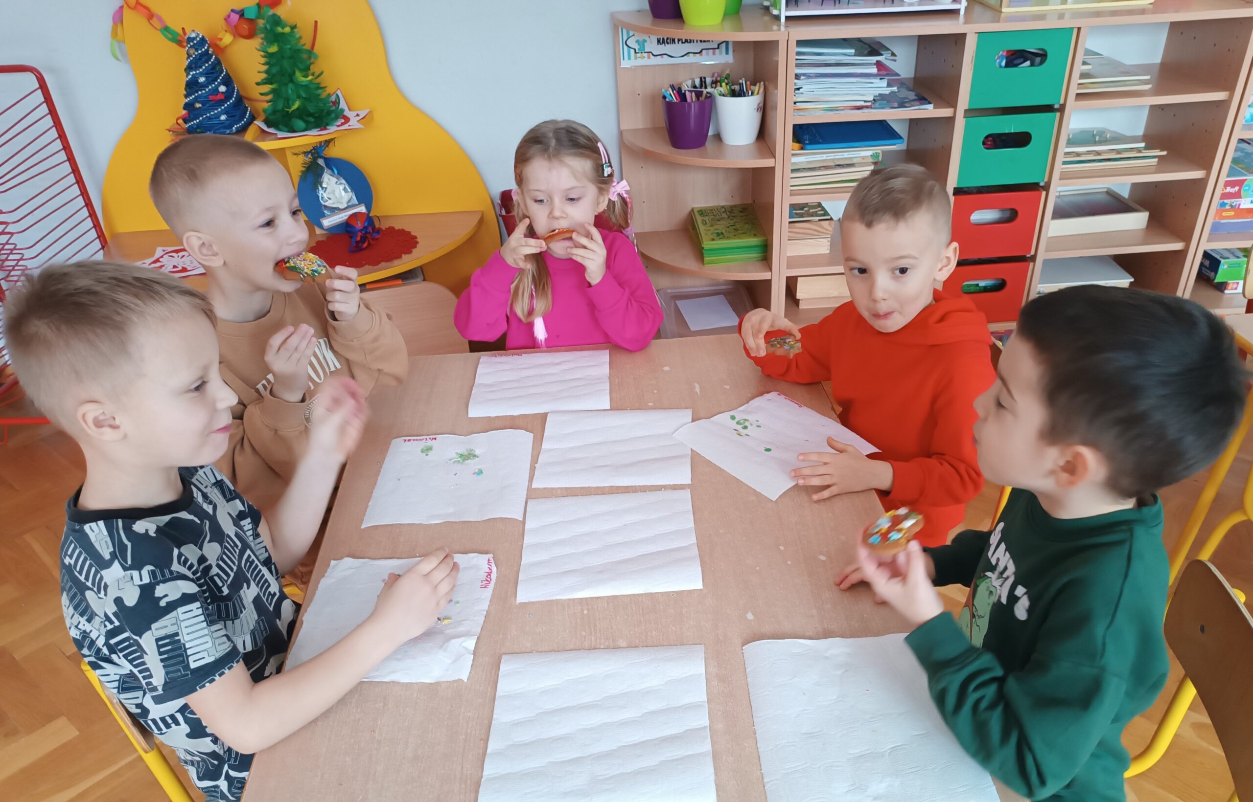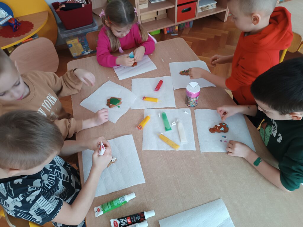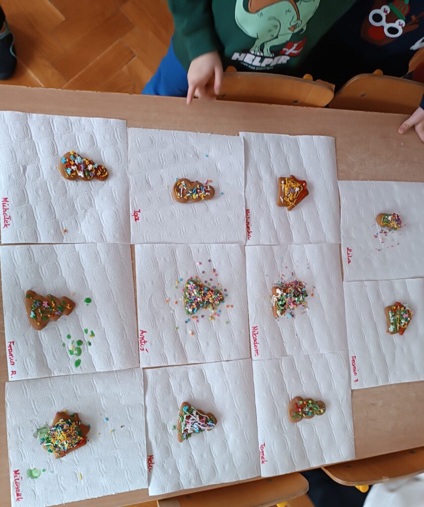 Po wspólnym ubraniu choinki ,,Wiewiórki” dekorowały pierniczki, które upiekła mama Nikodema ( Dziękujemy pani Agnieszko!). Dzieci były bardzo zaangażowane i wykazały się inwencją twórczą. Po obejrzeniu słodkich ,,dzieł” nastąpiła degustacja przy słuchaniu kolęd. Świąteczny nastrój udzielił się wszystkim, było miło i radośnie.