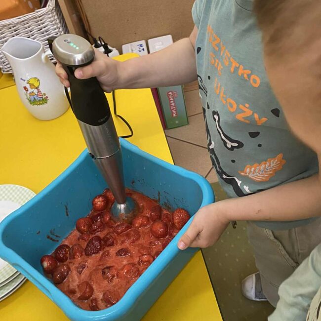 Truskawkowy dzień-Misie Smakowity dzień na powitanie lata w naszej grupie. Dzieci samodzielnie przygotowały zdrowy koktajl z pysznych truskawek. Miały przy tym wiele zabawy, ale również ogromną satysfakcję 22/06/2025 autor: Marta Woźniak 0 Grupa Misie