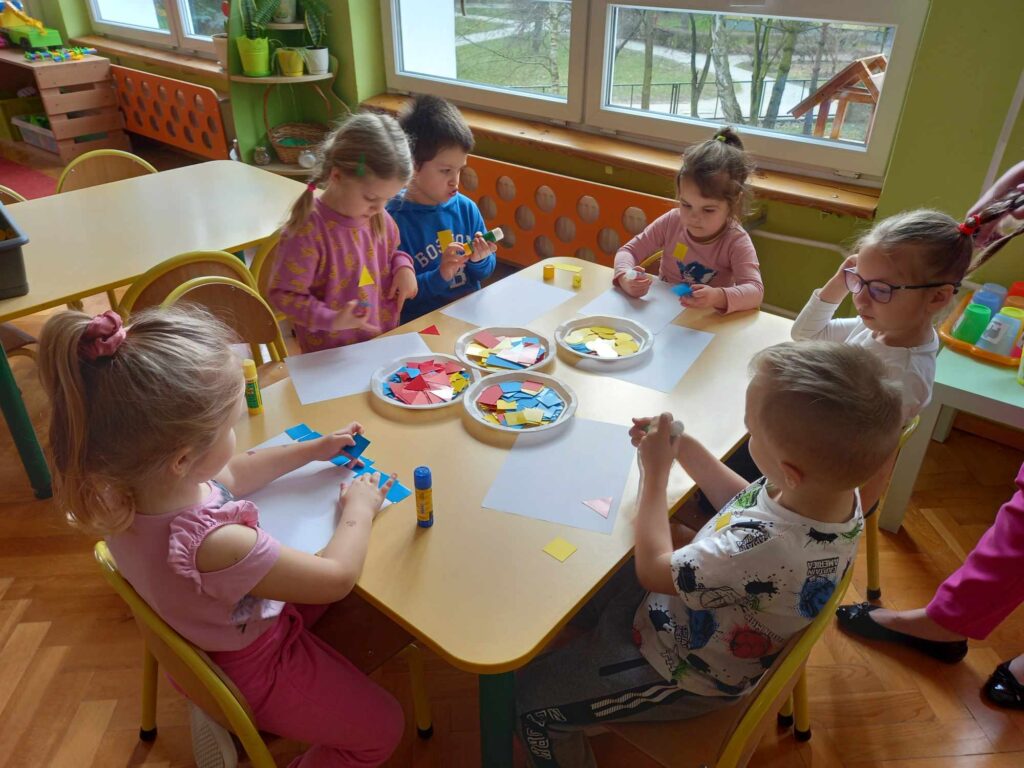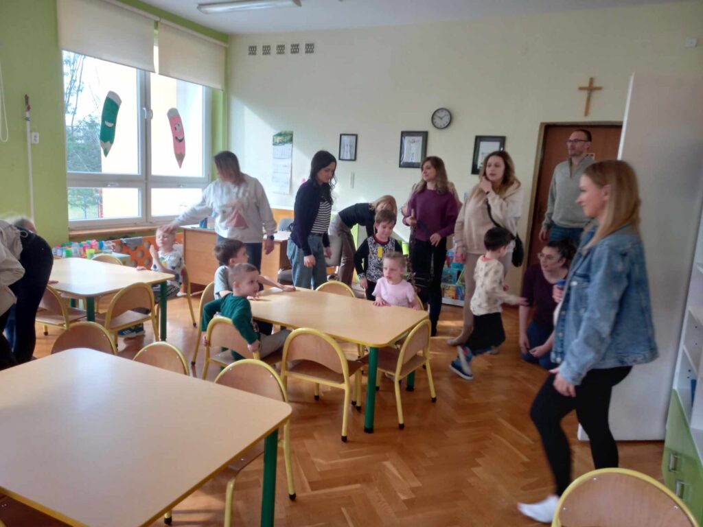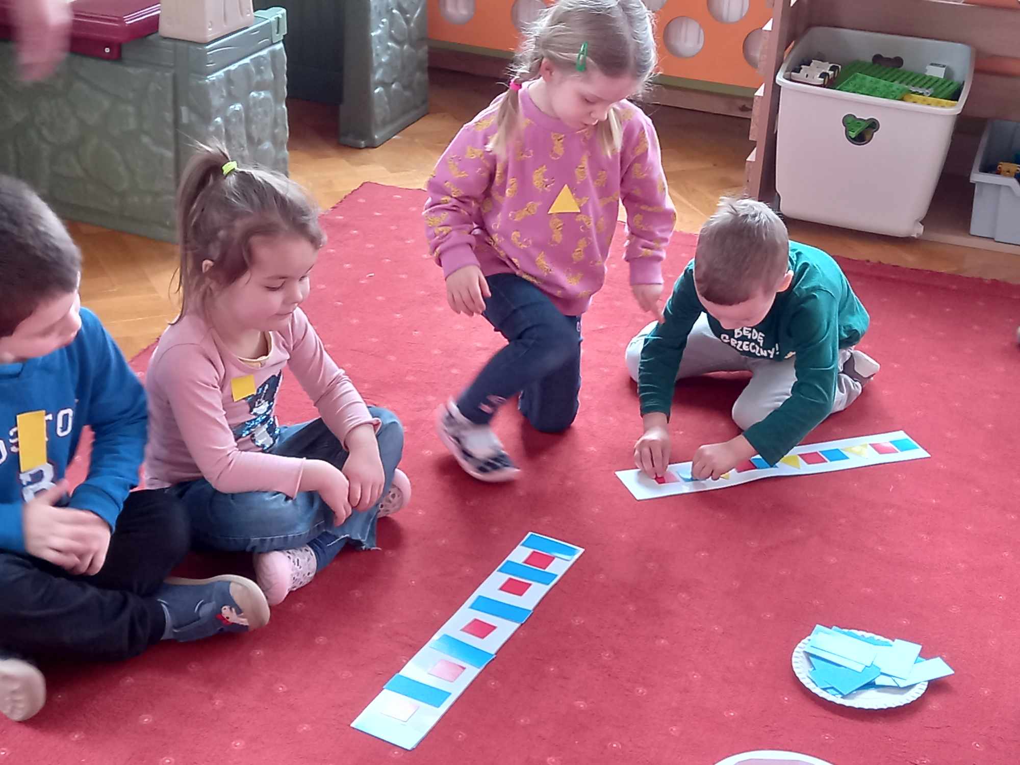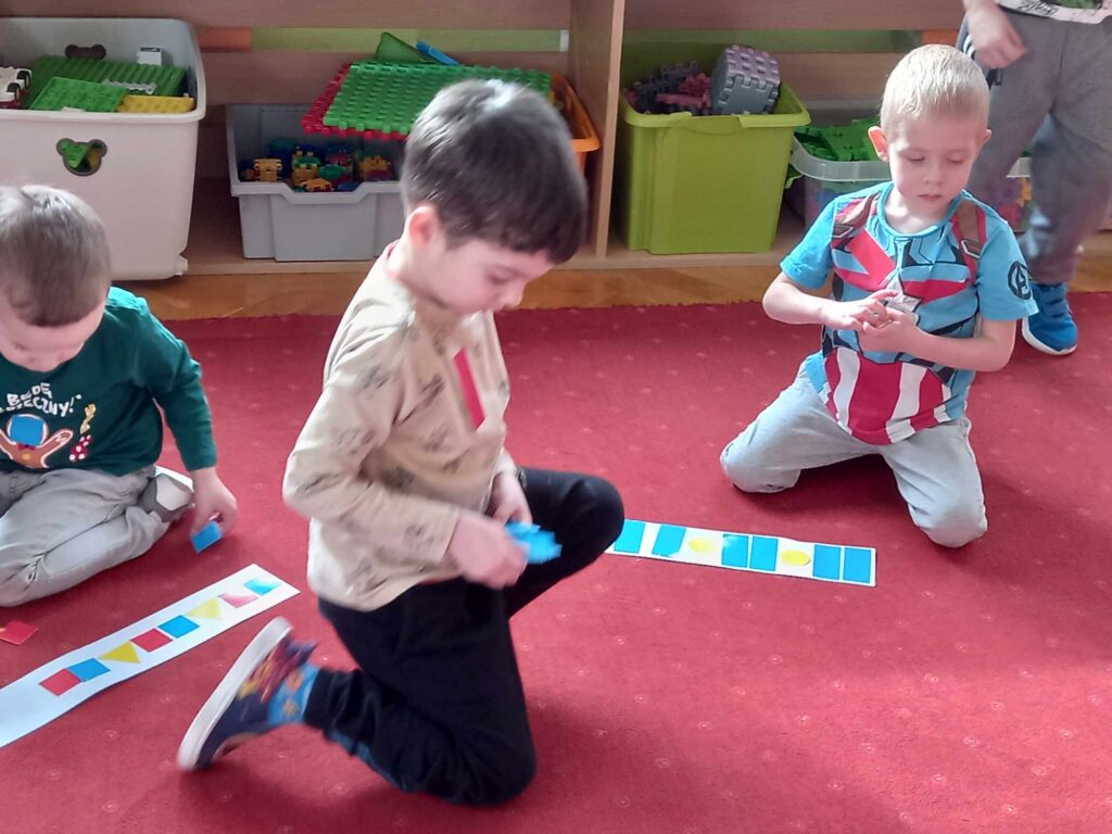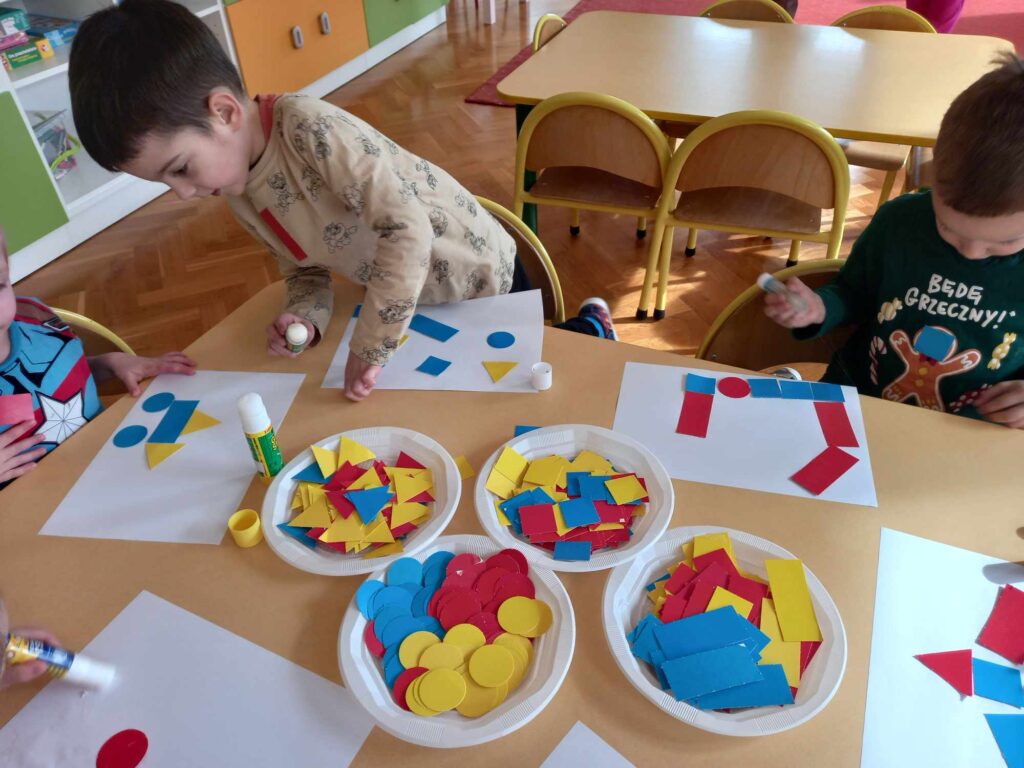W grupie ,,Kotki” odbyły się zajęcia otwarte dla Rodziców pt.: „W krainie figur geometrycznych”. Głównym celem zajęć było utrwalenie nazw i wyglądu podstawowych figur geometrycznych. Przedszkolaki miały okazję pokazać swoim rodzicom jak się uczą poprzez zabawę i ile już potrafią. Zajęcia łączyły w sobie różnorodne formy aktywności. Poprzez udział w zabawach dzieci utrwaliły pojęcia i umiejętności matematyczne, rozróżniały figury geometryczne – ich kształt i kolory, uważnie i ze zrozumieniem słuchały opowiadania, układały różne przedmioty z figur, uzupełniały brakujące elementy w ciągu figur zgodnie z ustalonym rytmem, posługiwały się pojęciami: duży, mały, nad, pod, środek. Rodzice mieli możliwość obserwacji umiejętności matematycznych swoich dzieci, możliwość zaobserwowania swojego dziecka na tle grupy rówieśniczej. Uczestnictwo w tego rodzaju zajęciach daje rodzicom obraz pracy nauczyciela z dzieckiem, pokazuje stosowane metody i formy pracy. Dziękujemy Rodzicom za obecność, dzieciom za piękną postawę i aktywność na zajęciach.