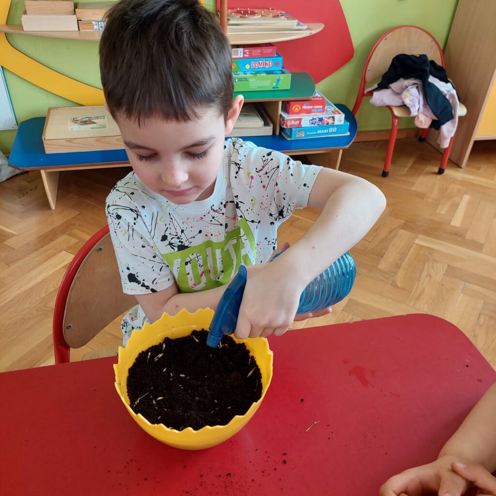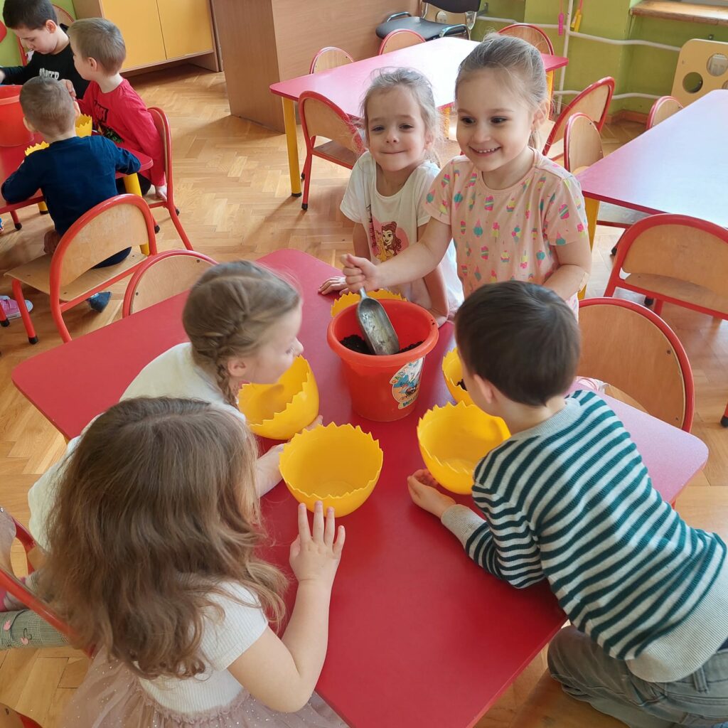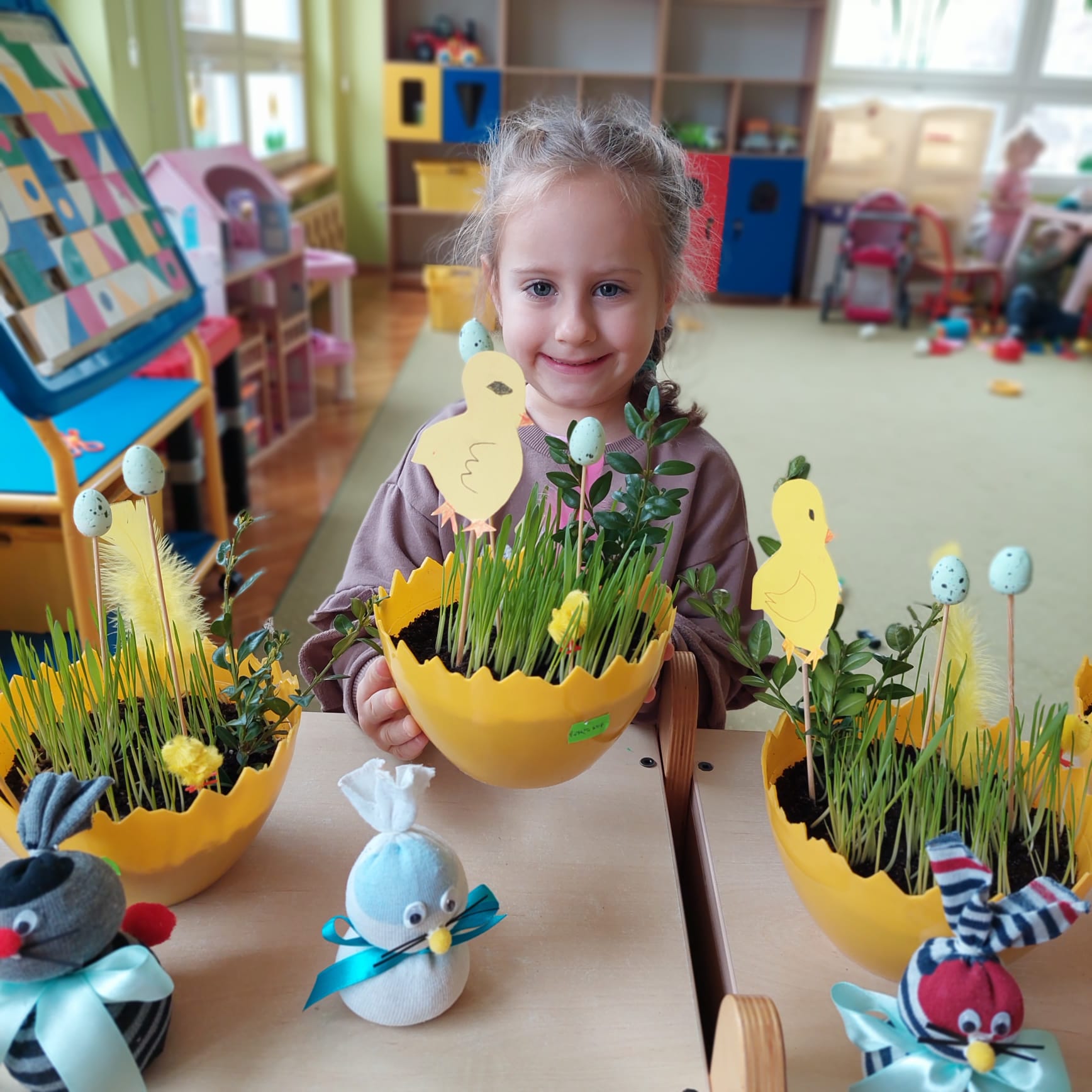 Wielkanoc w przedszkolu to okazja do rozmowy o symbolice świąt i towarzyszącym im obyczajach. Przedszkolaki zasiały owies, obserwowały jego wzrost a następnie ozdobiły swoje doniczki własnoręcznie wykonanymi ozdobami.Odwiedziliśmy bibliotekę przekazując prace plastyczne pt.Symbole wielkanocne.