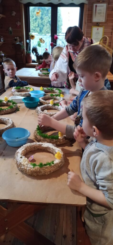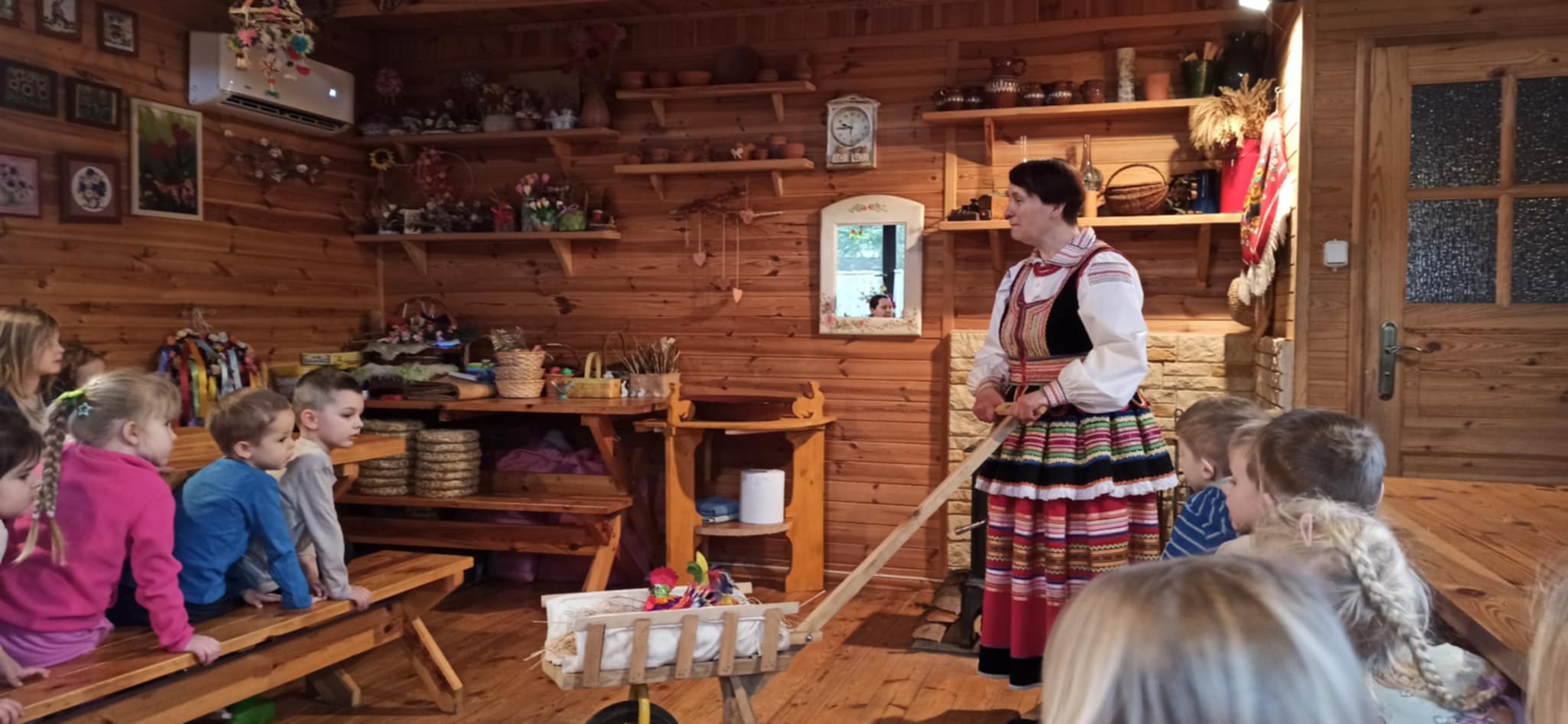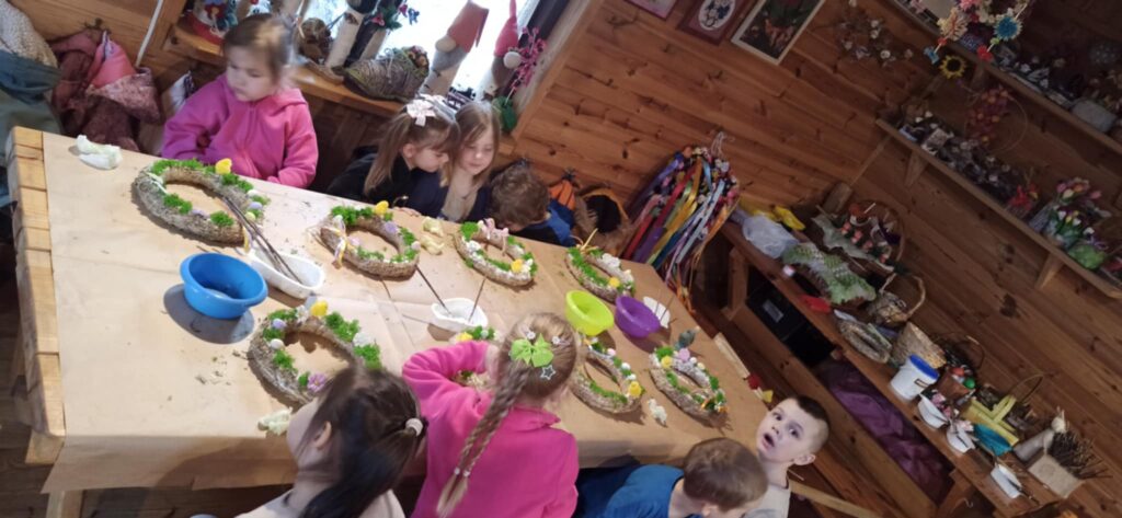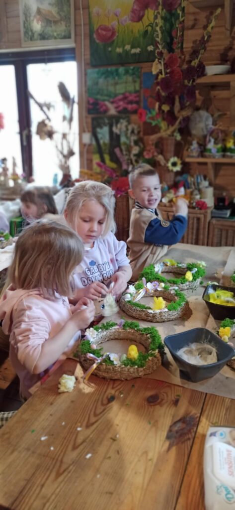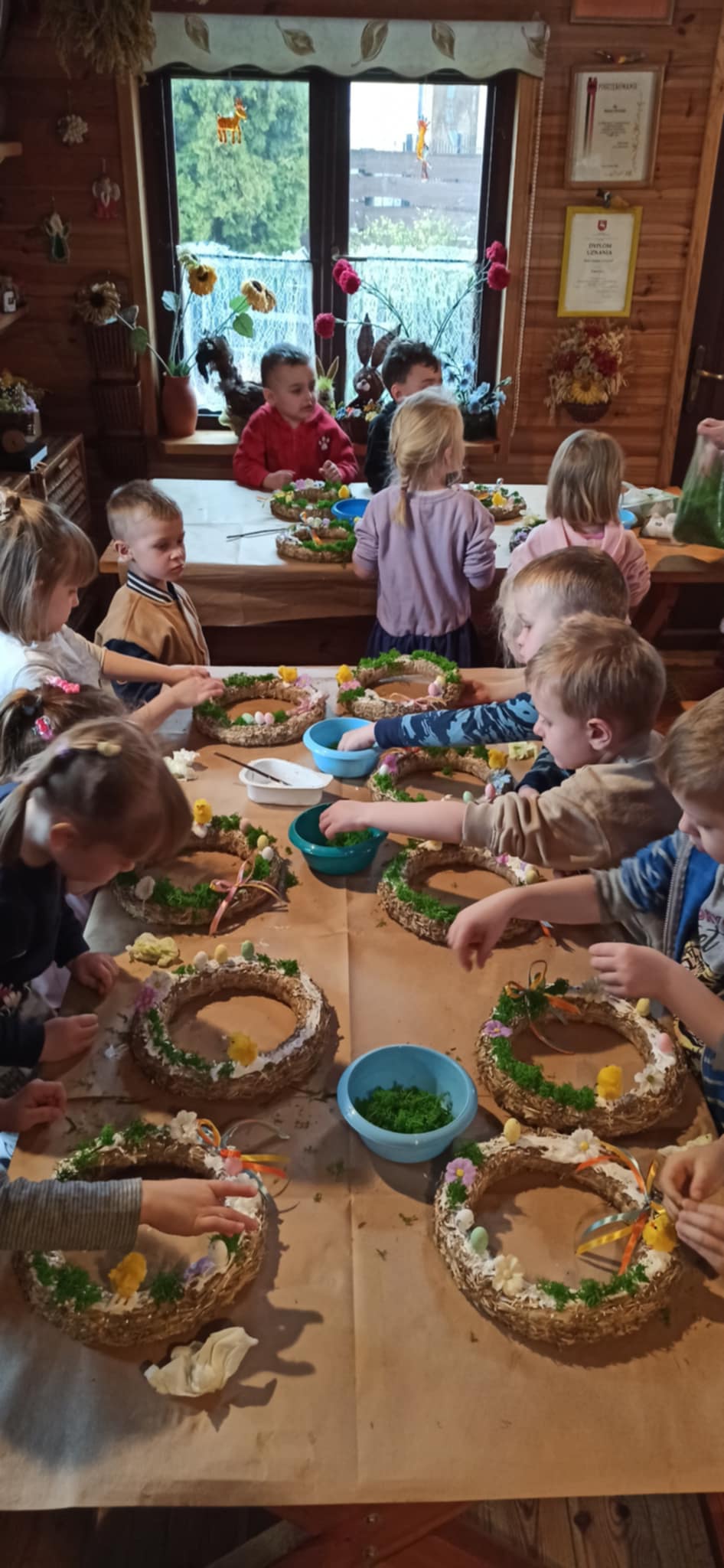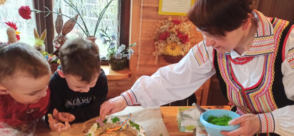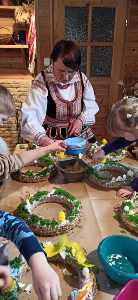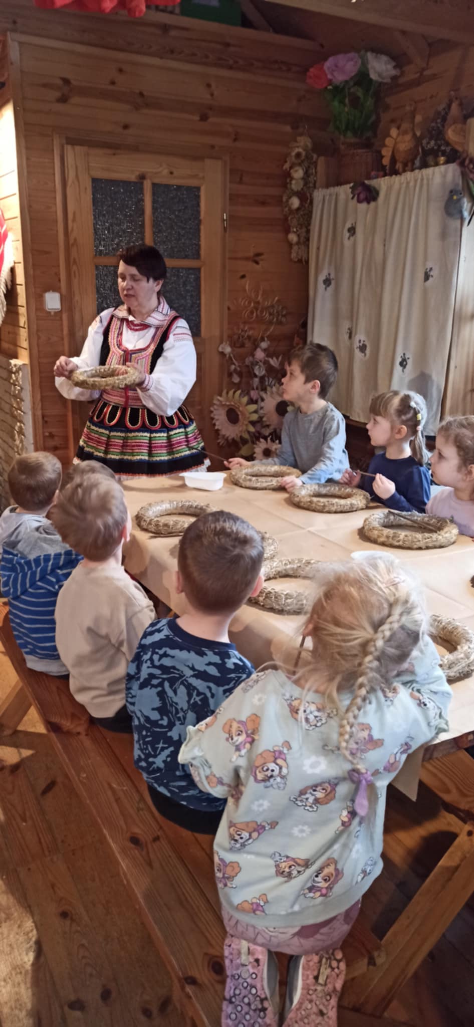 Grupa Kotki odwiedziła Panią Asię w Domu Tradycji Ludowej, aby razem stworzyć piękne stroiki wilekanocne. Pani Joanna pokazała dzieciom kilka tradycji ludowych związanych z naszym regionem i stworzyła z dziećmi prawdziwe dzieła sztuki.