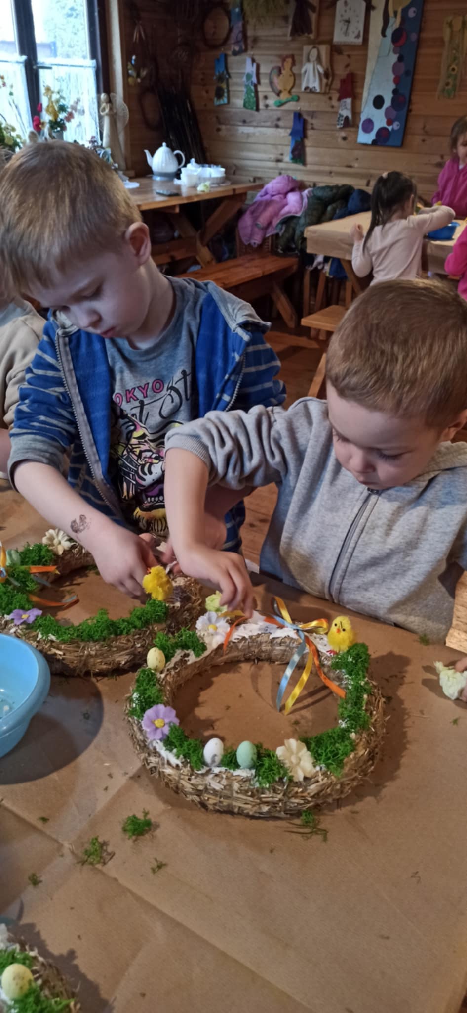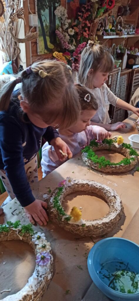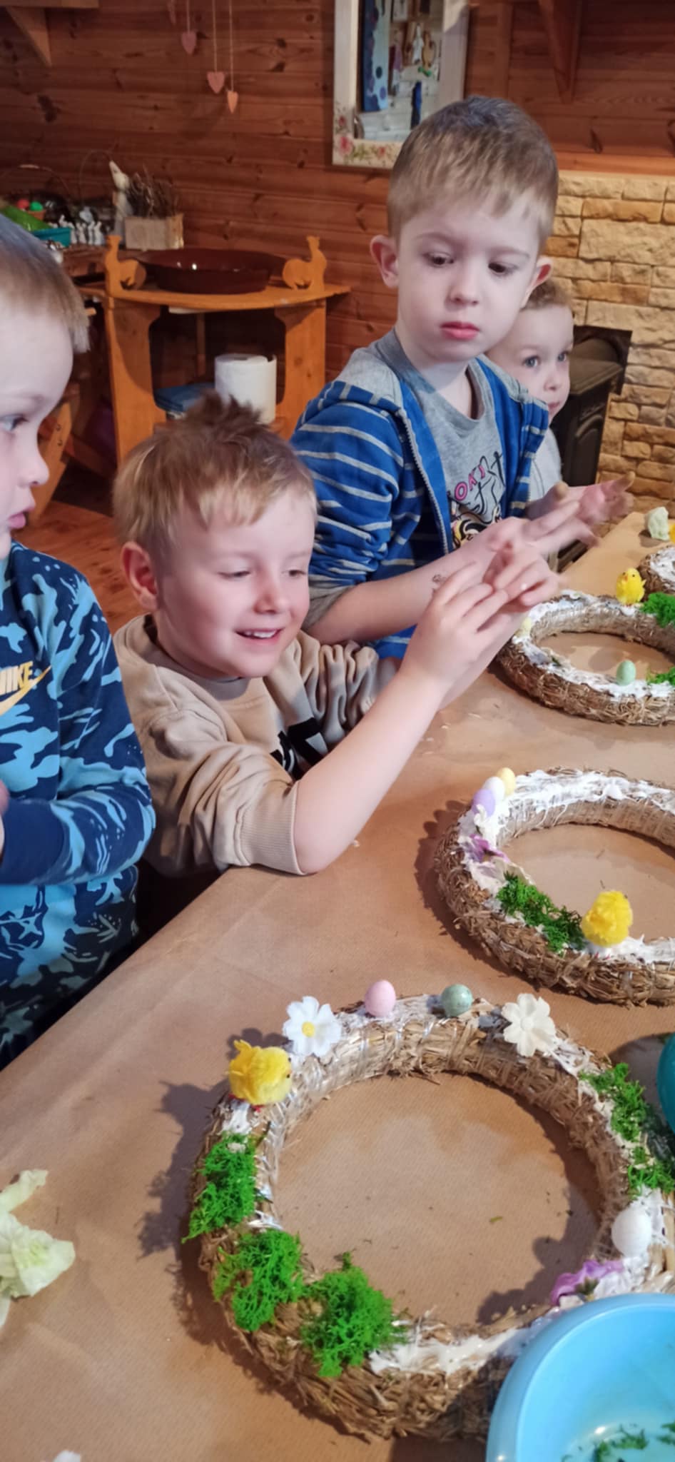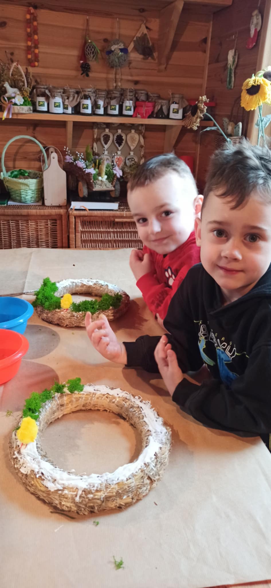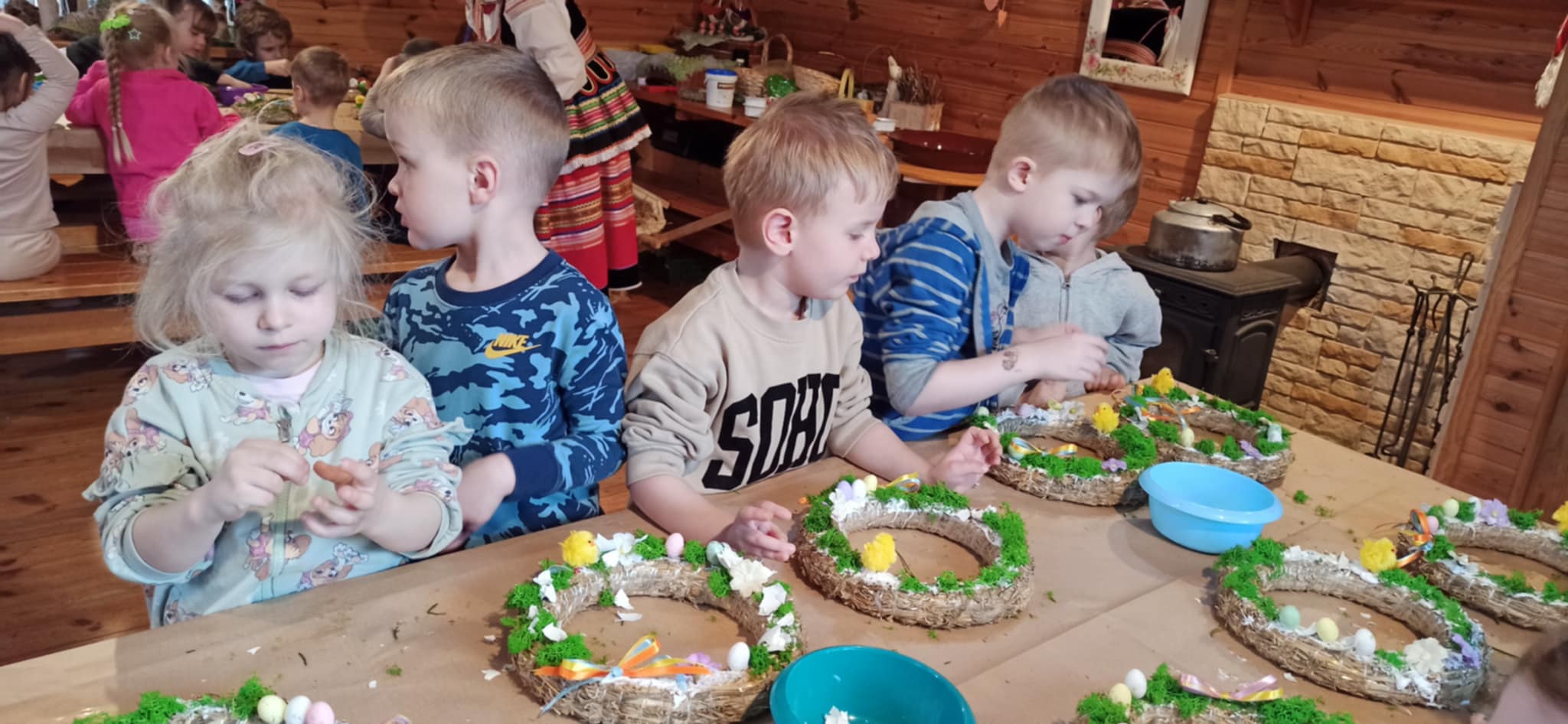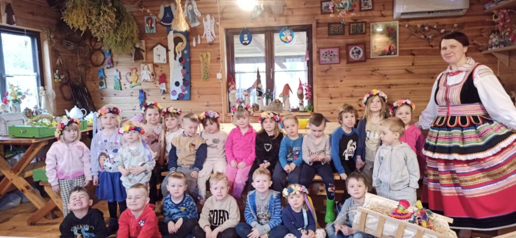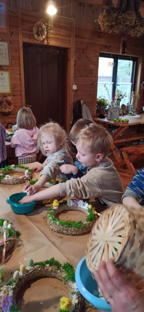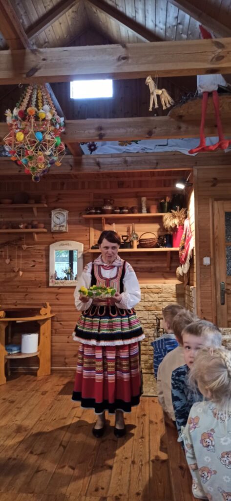 Grupa Kotki odwiedziła Panią Asię w Domu Tradycji Ludowej, aby razem stworzyć piękne stroiki wilekanocne. Pani Joanna pokazała dzieciom kilka tradycji ludowych związanych z naszym regionem i stworzyła z dziećmi prawdziwe dzieła sztuki.
